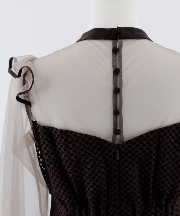 身頃からスカート部分にはメッシュのようなレースを使用し、