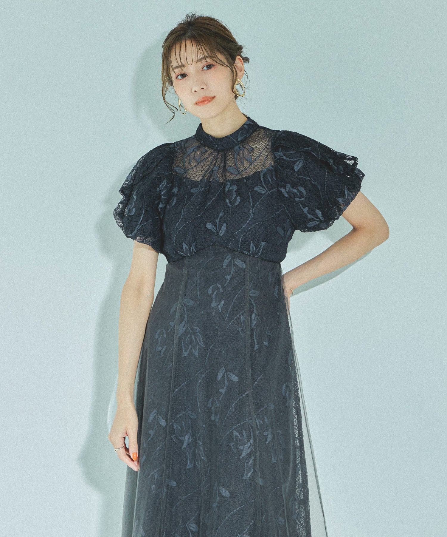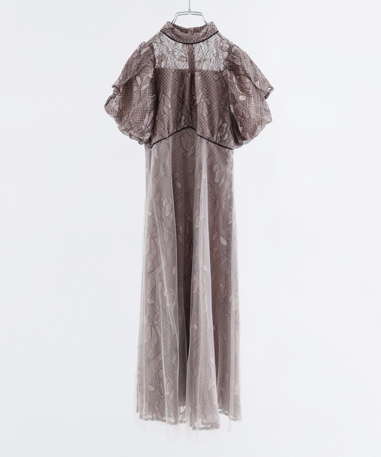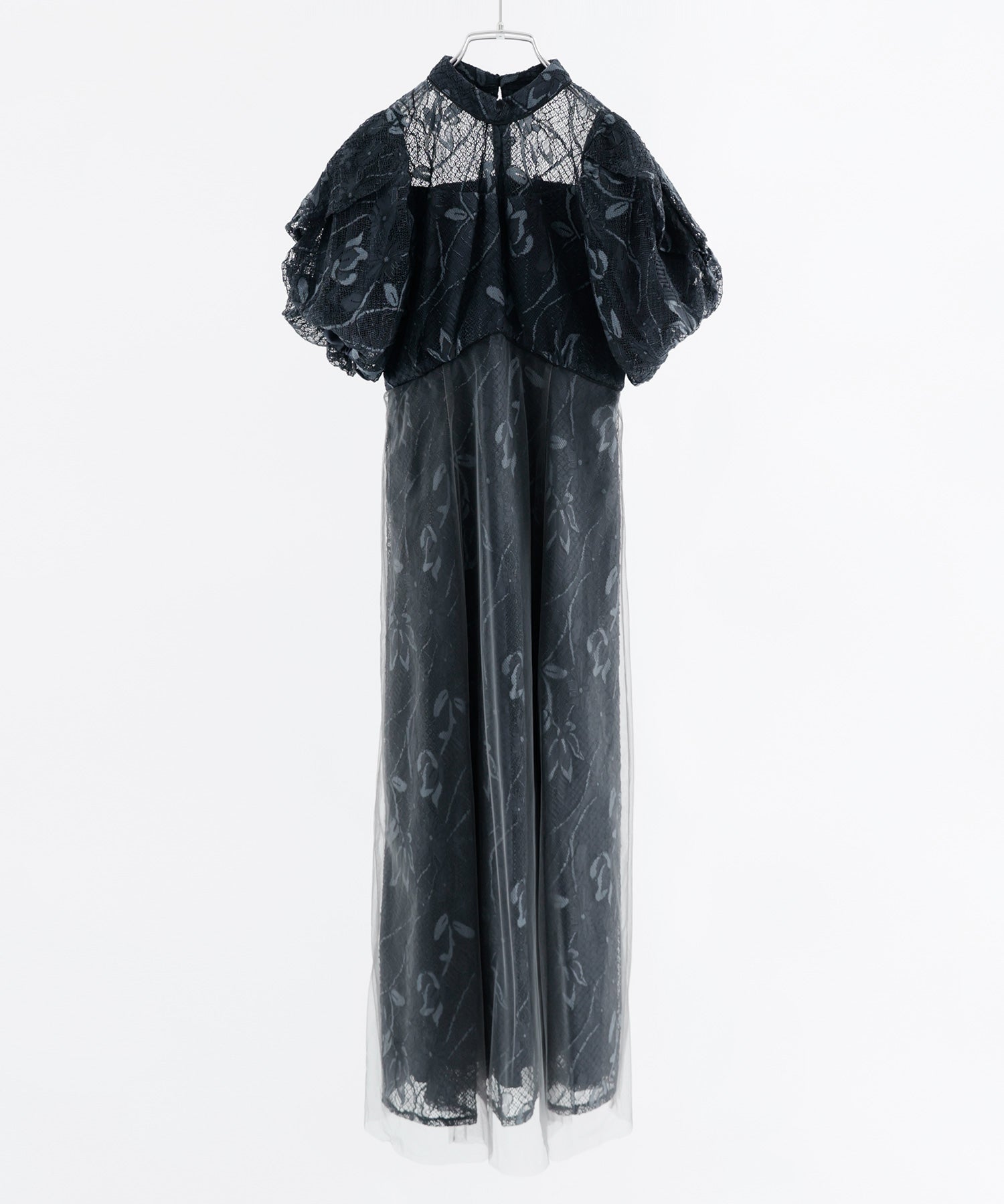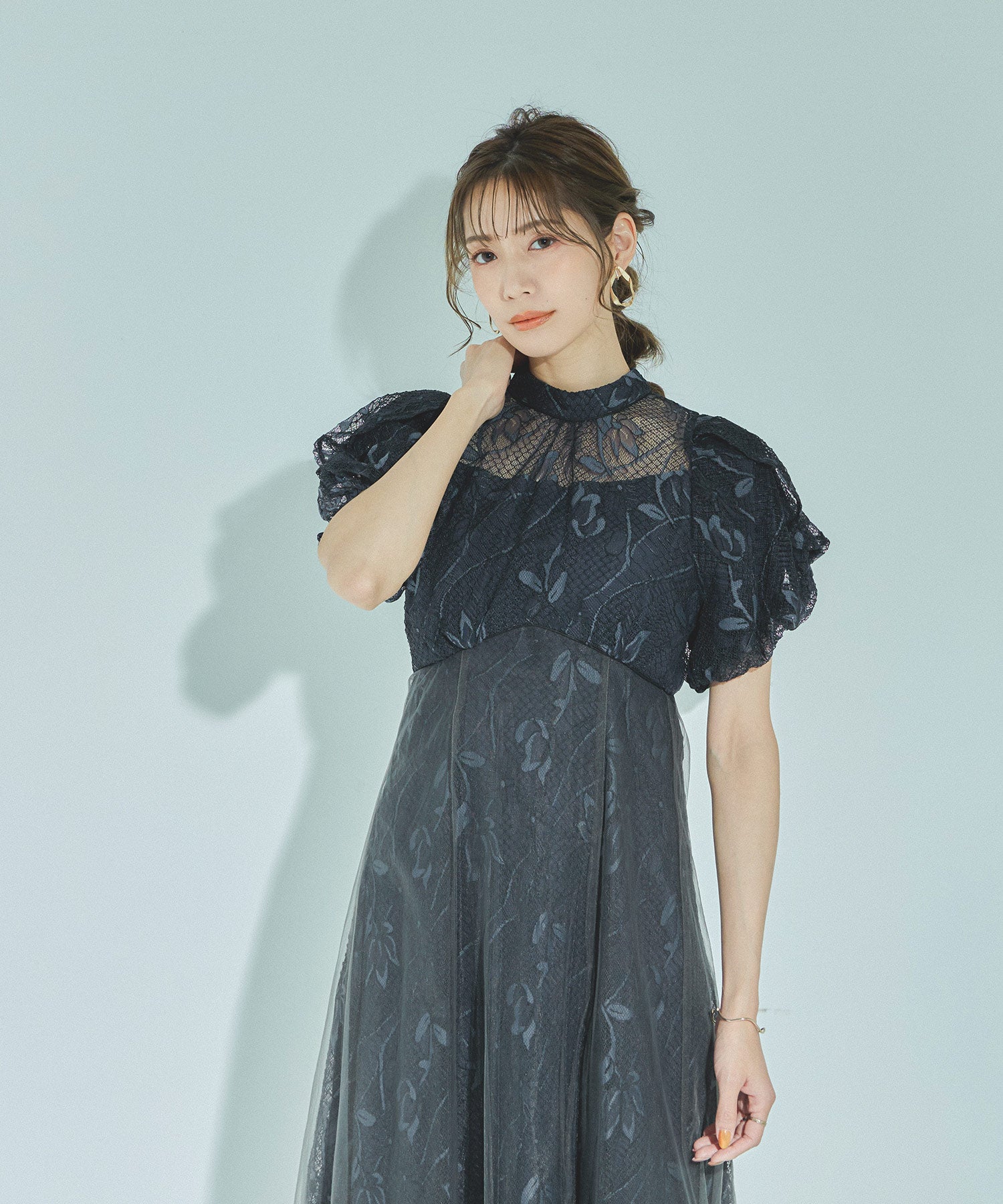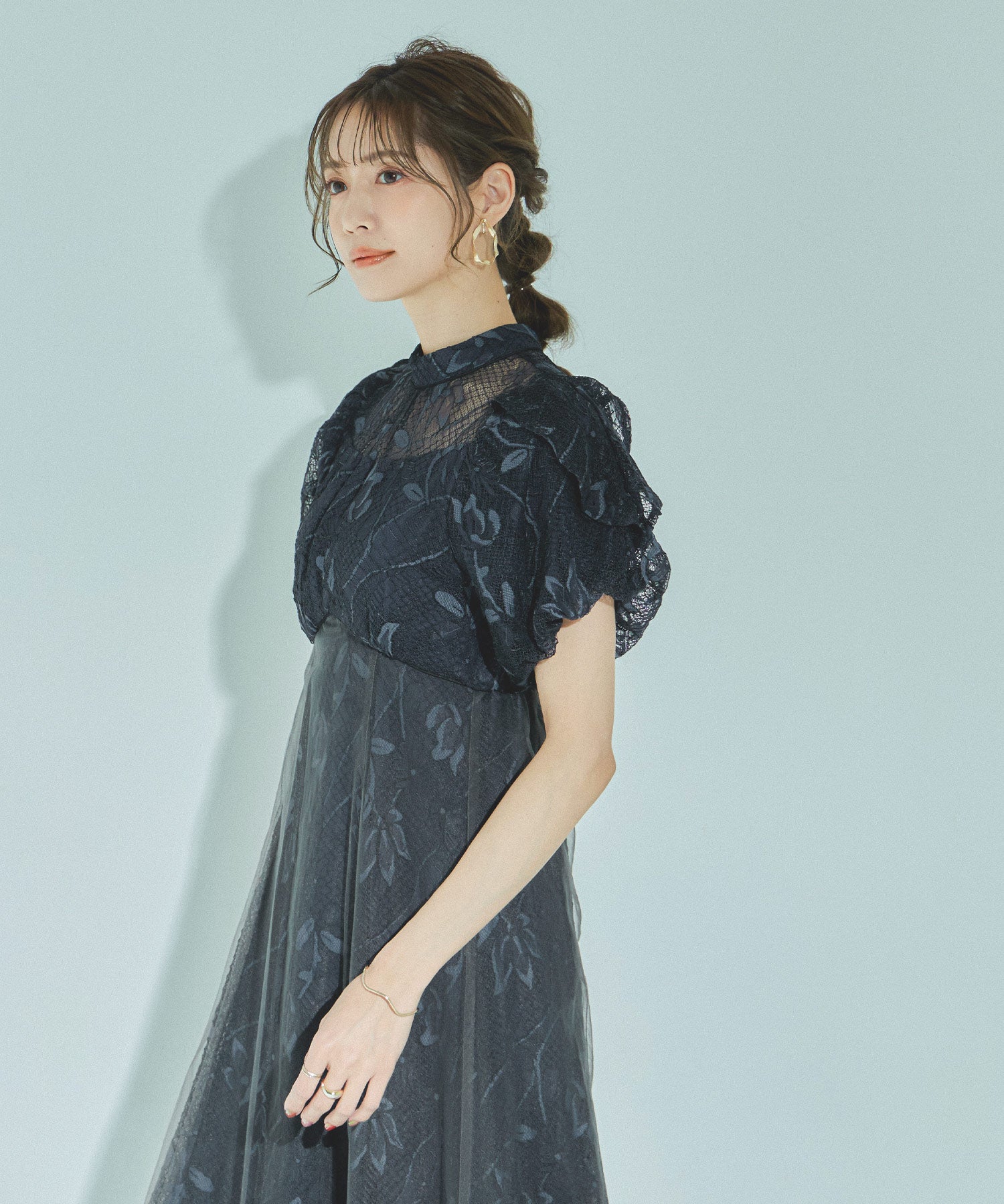 Zname ボリューム袖レースチュールレイヤードパーティードレス