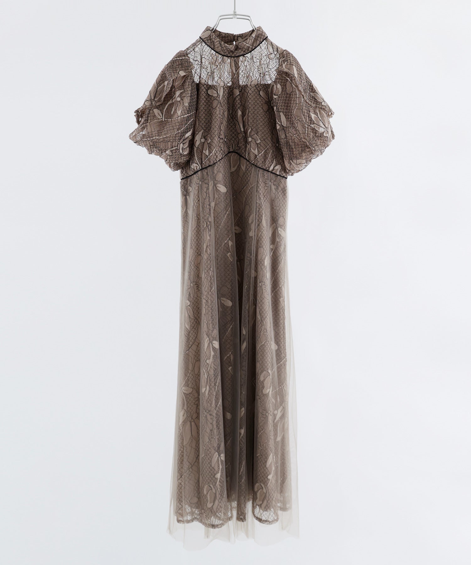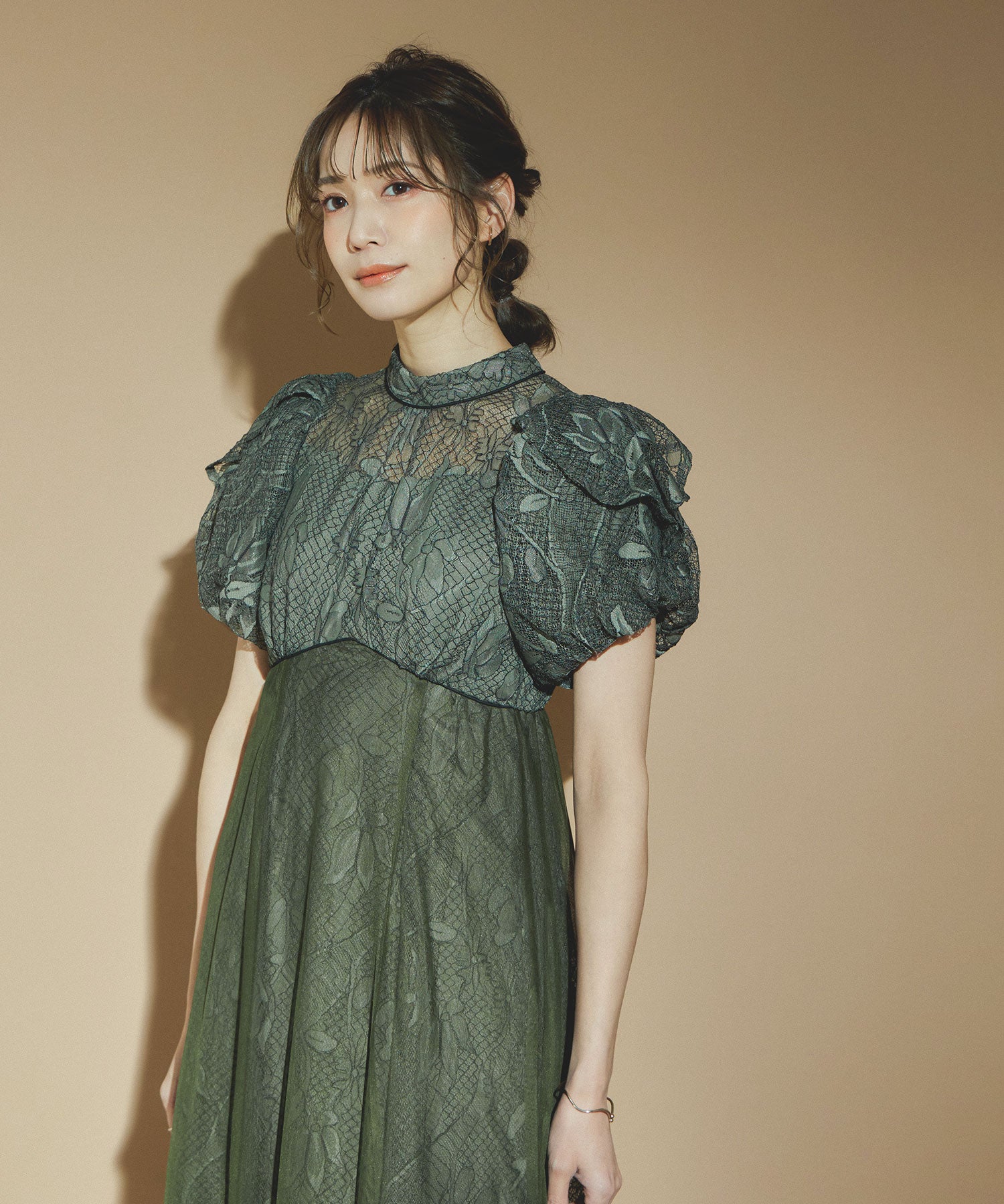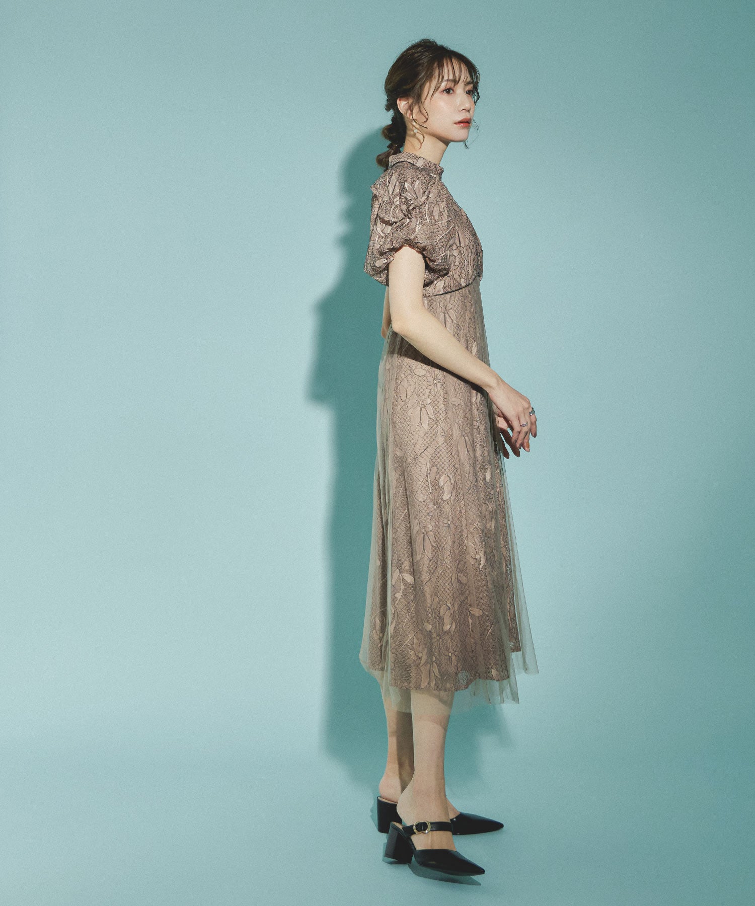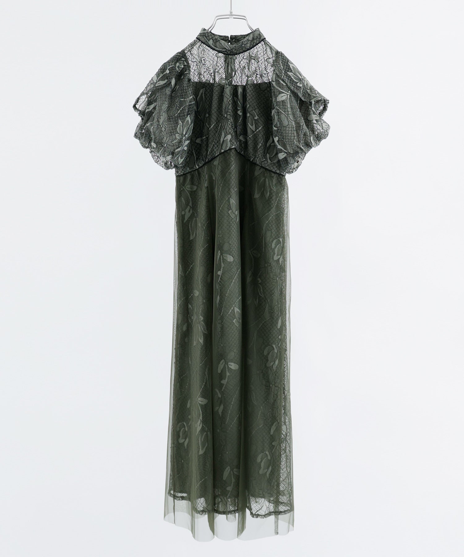 Zname ボリューム袖レースチュールレイヤードパーティードレス