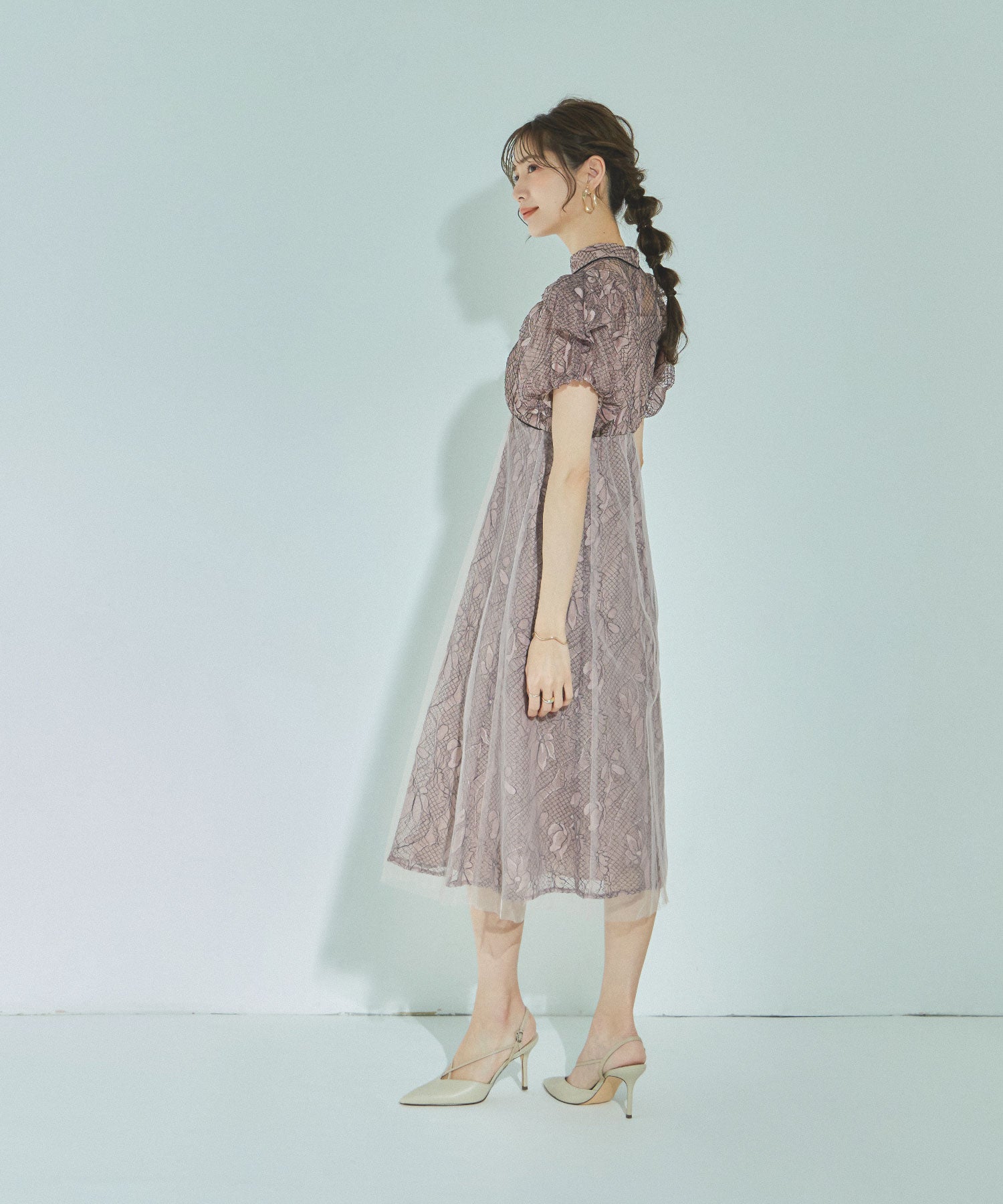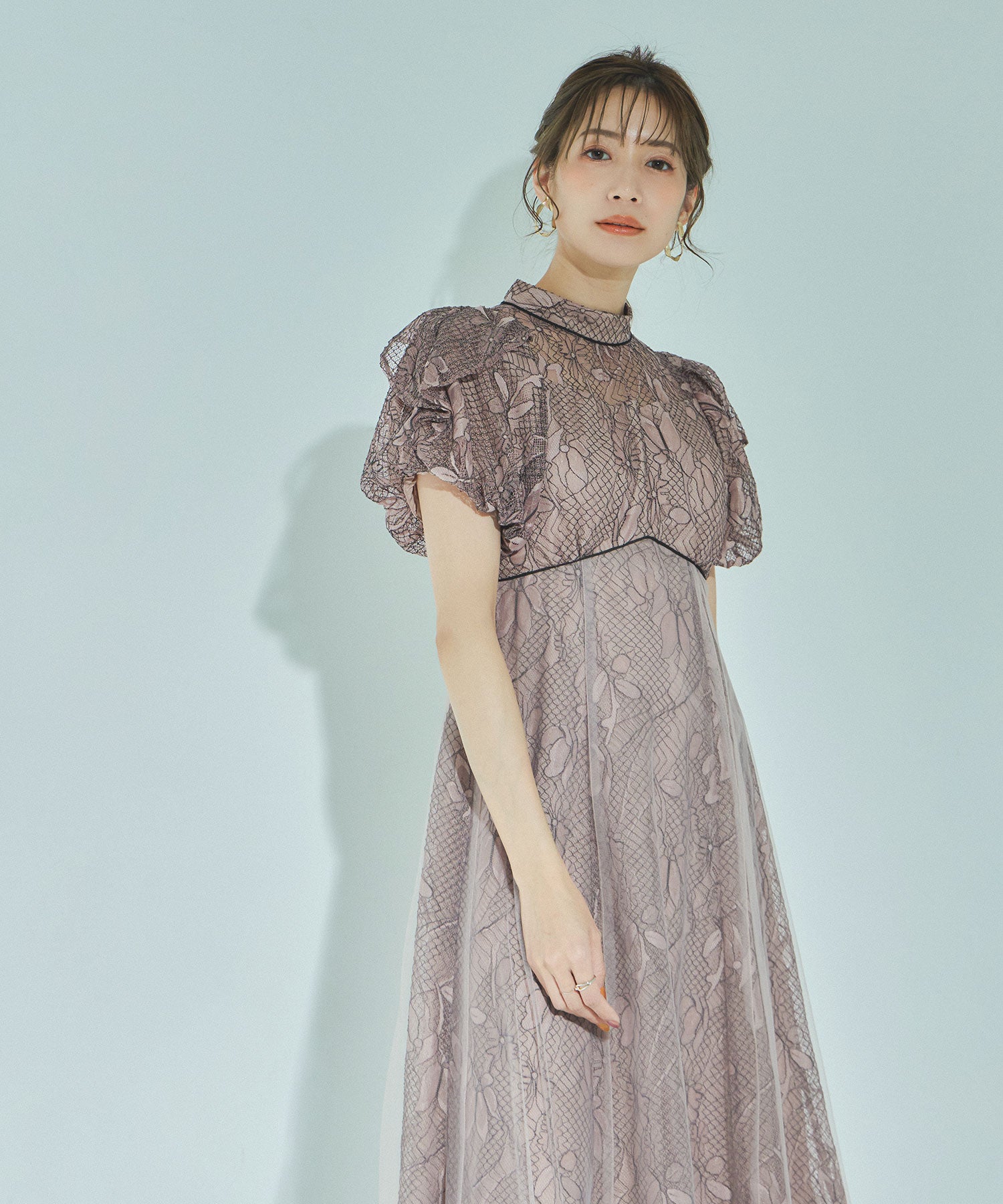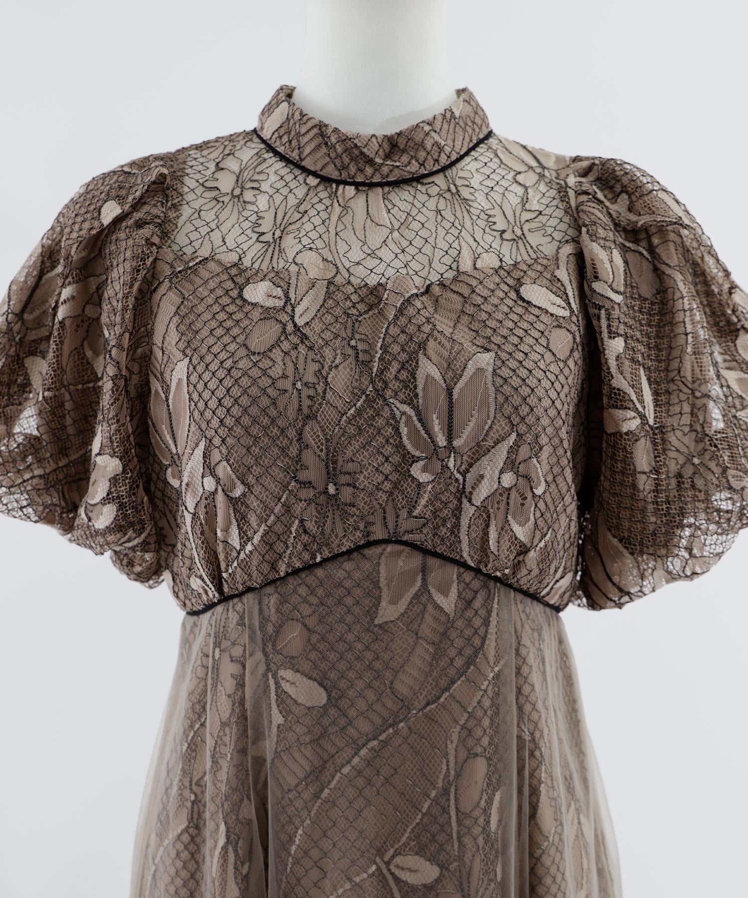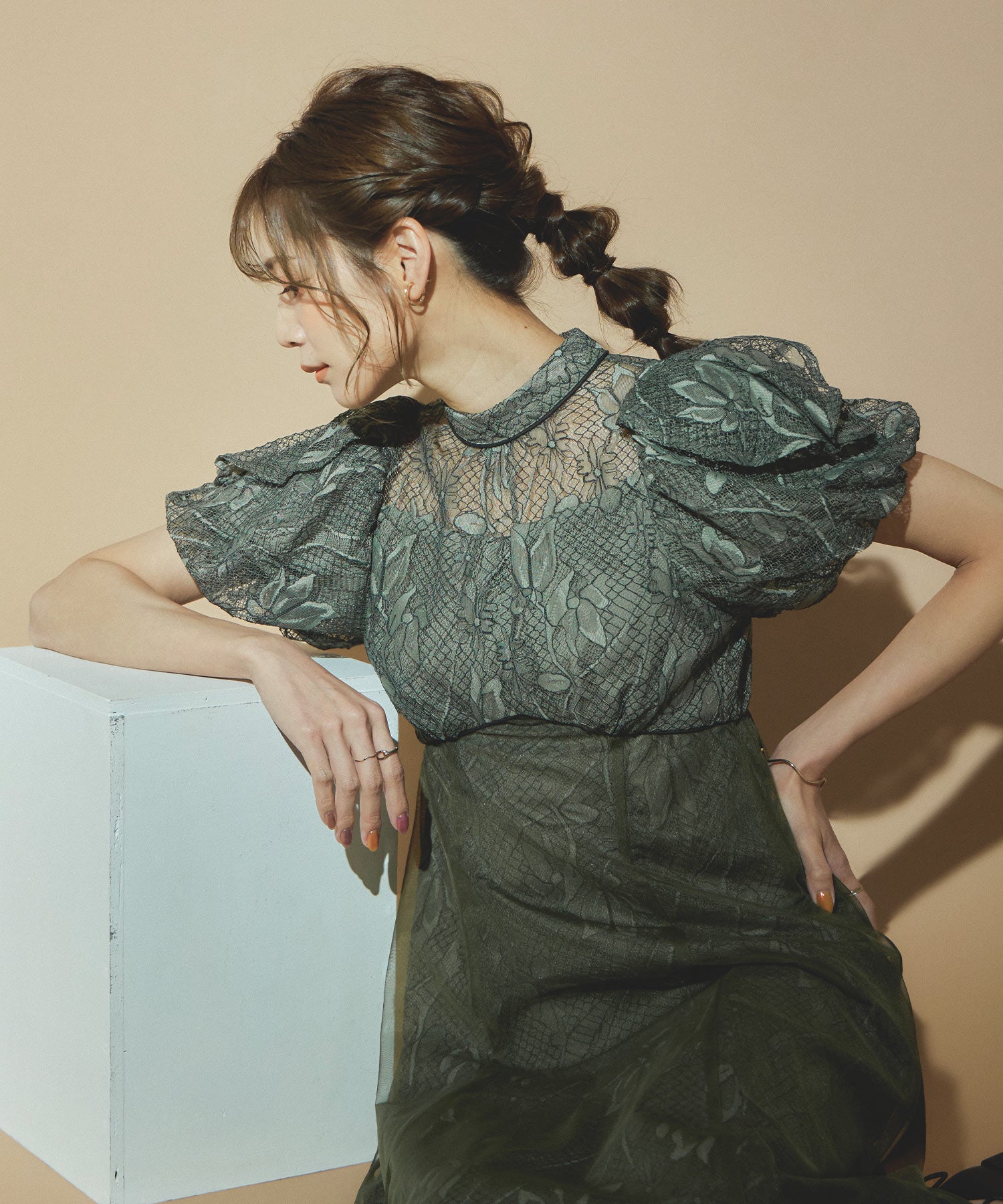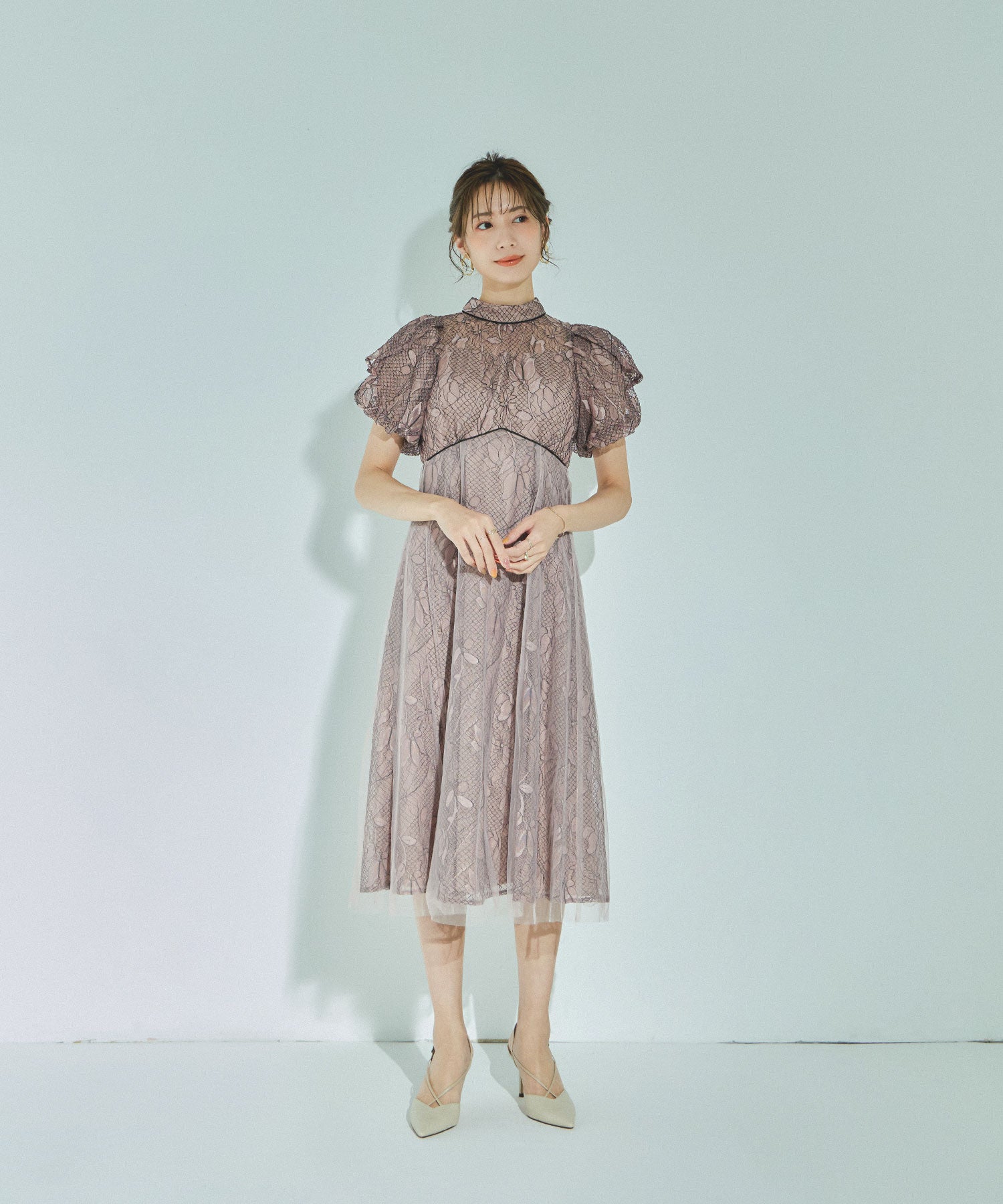 Zname ボリューム袖レースチュールレイヤードパーティードレス