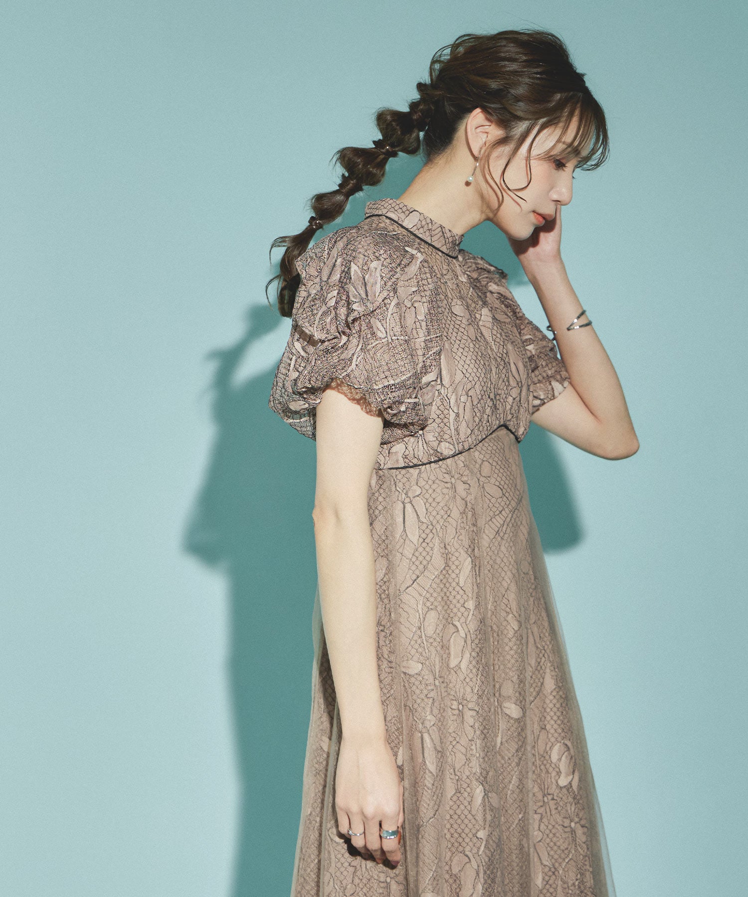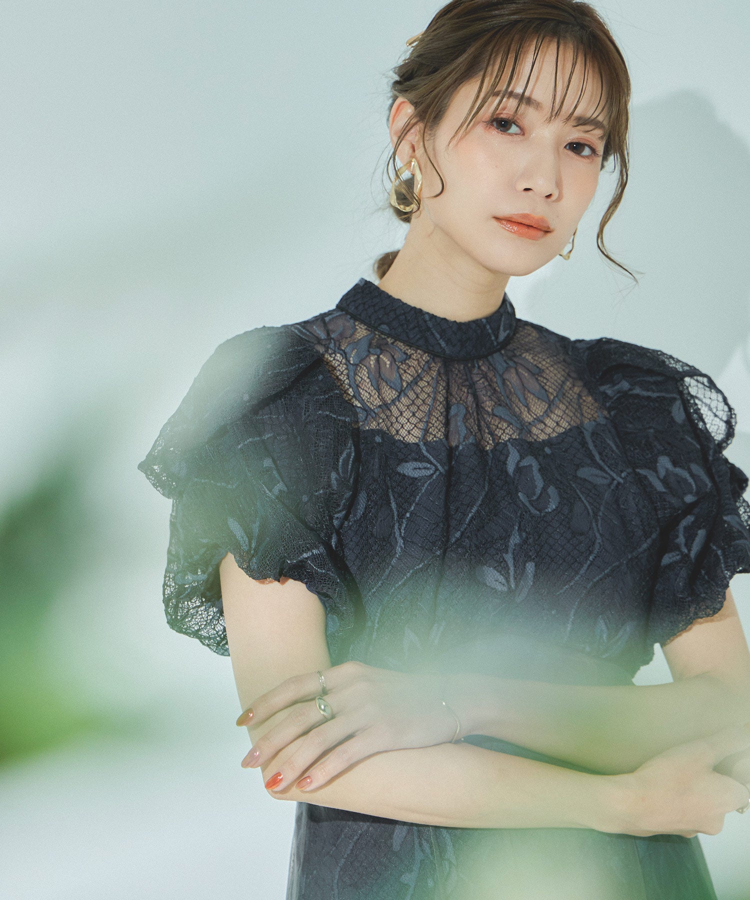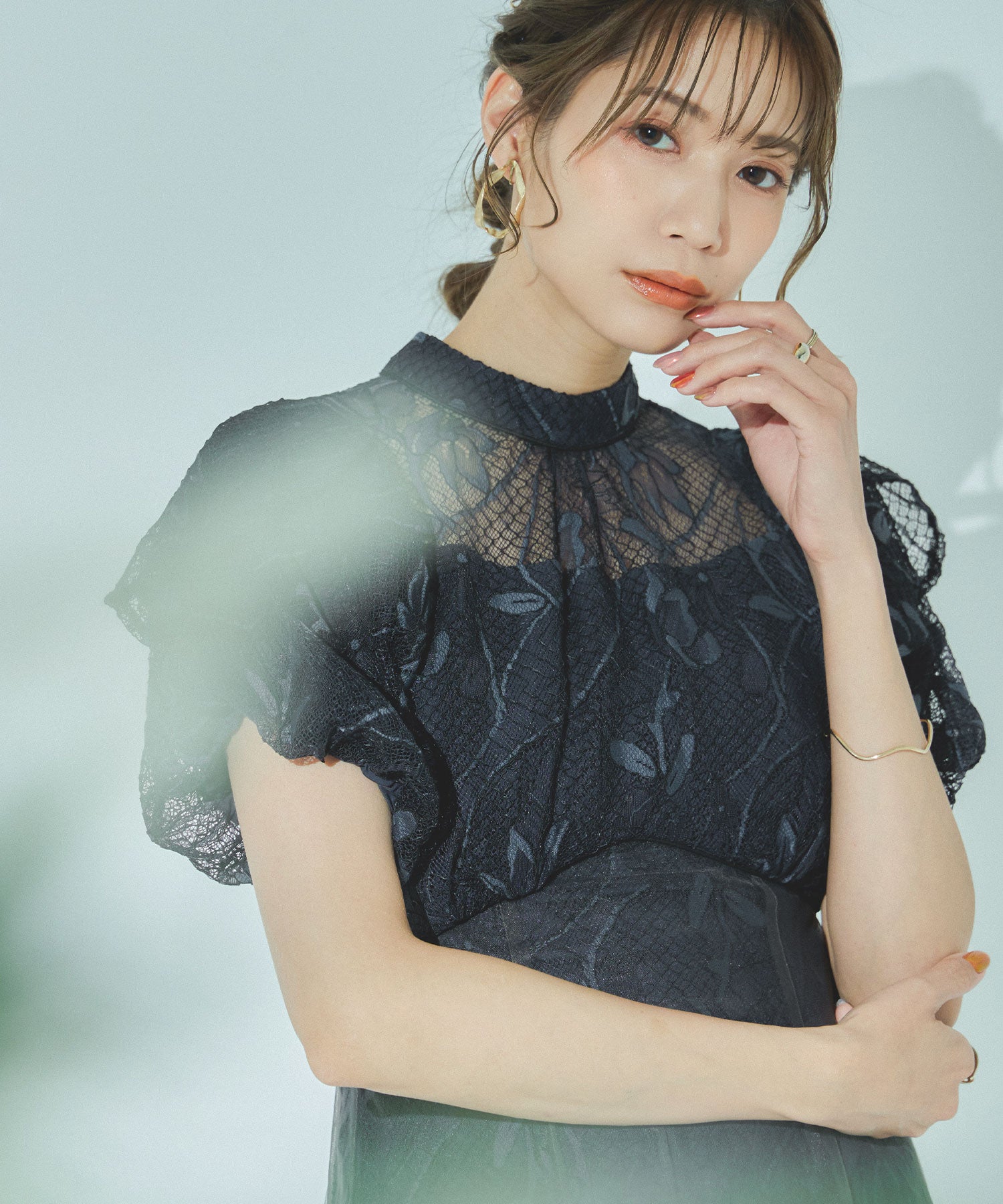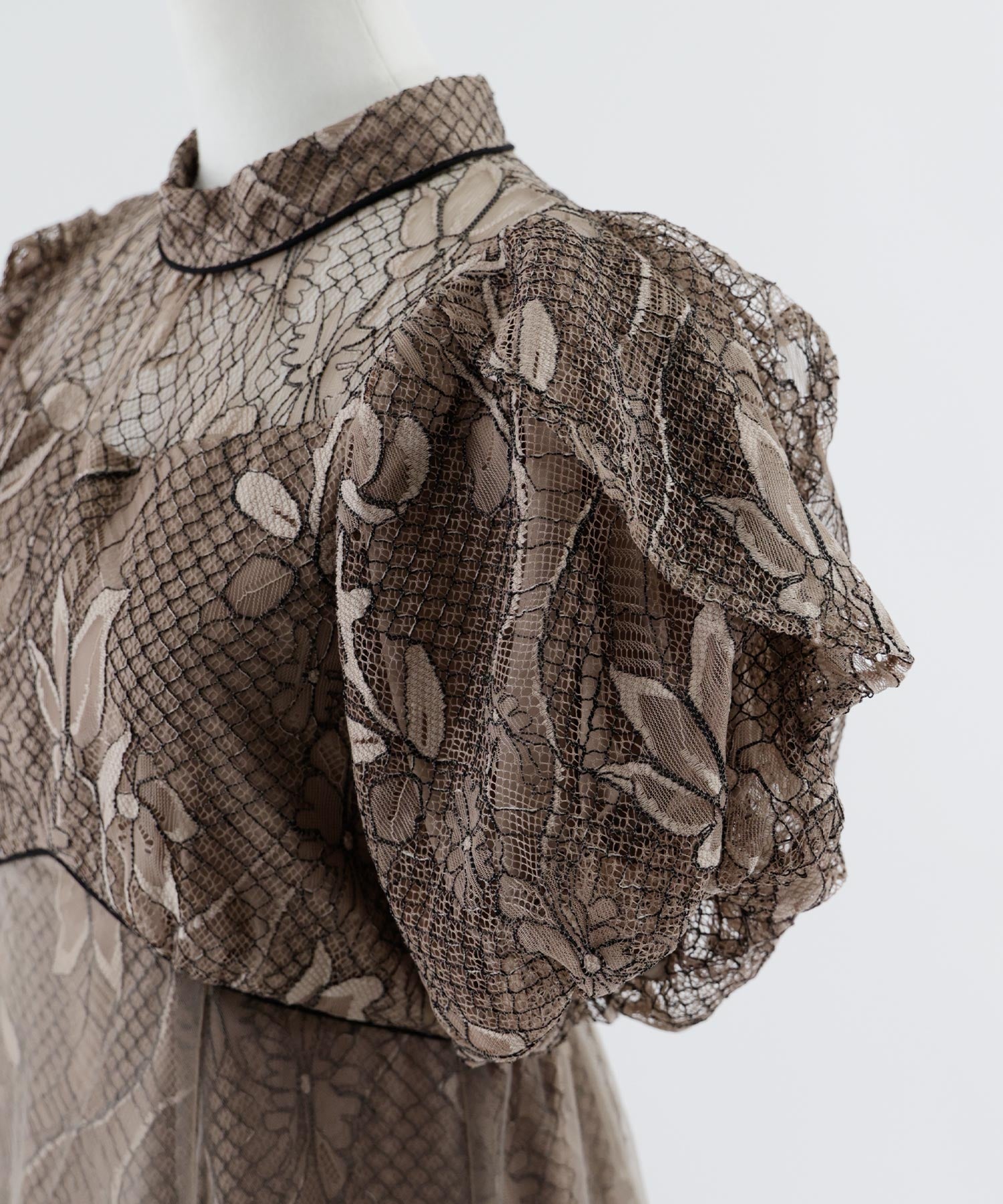 Zname ボリューム袖レースチュールレイヤードパーティードレス