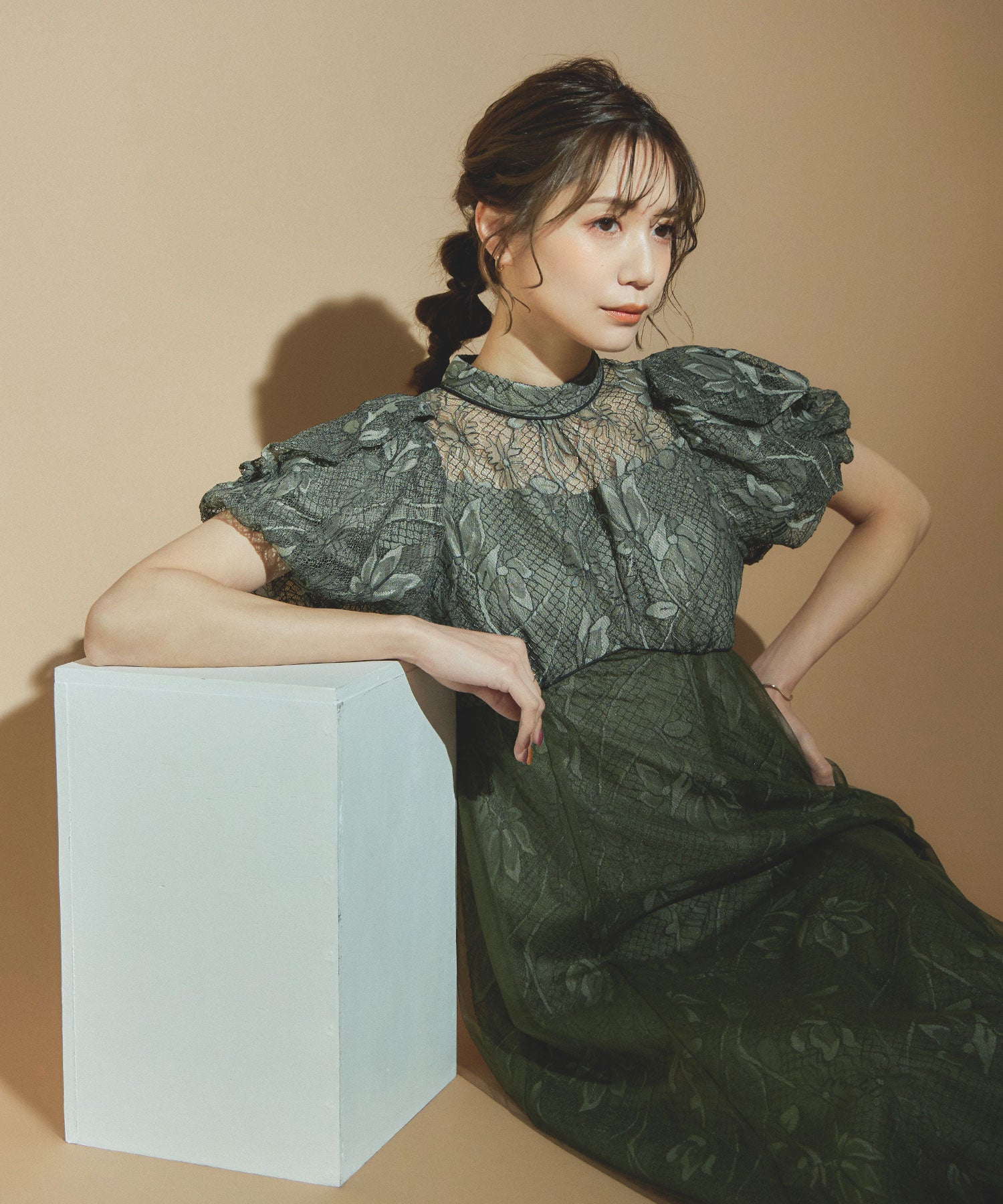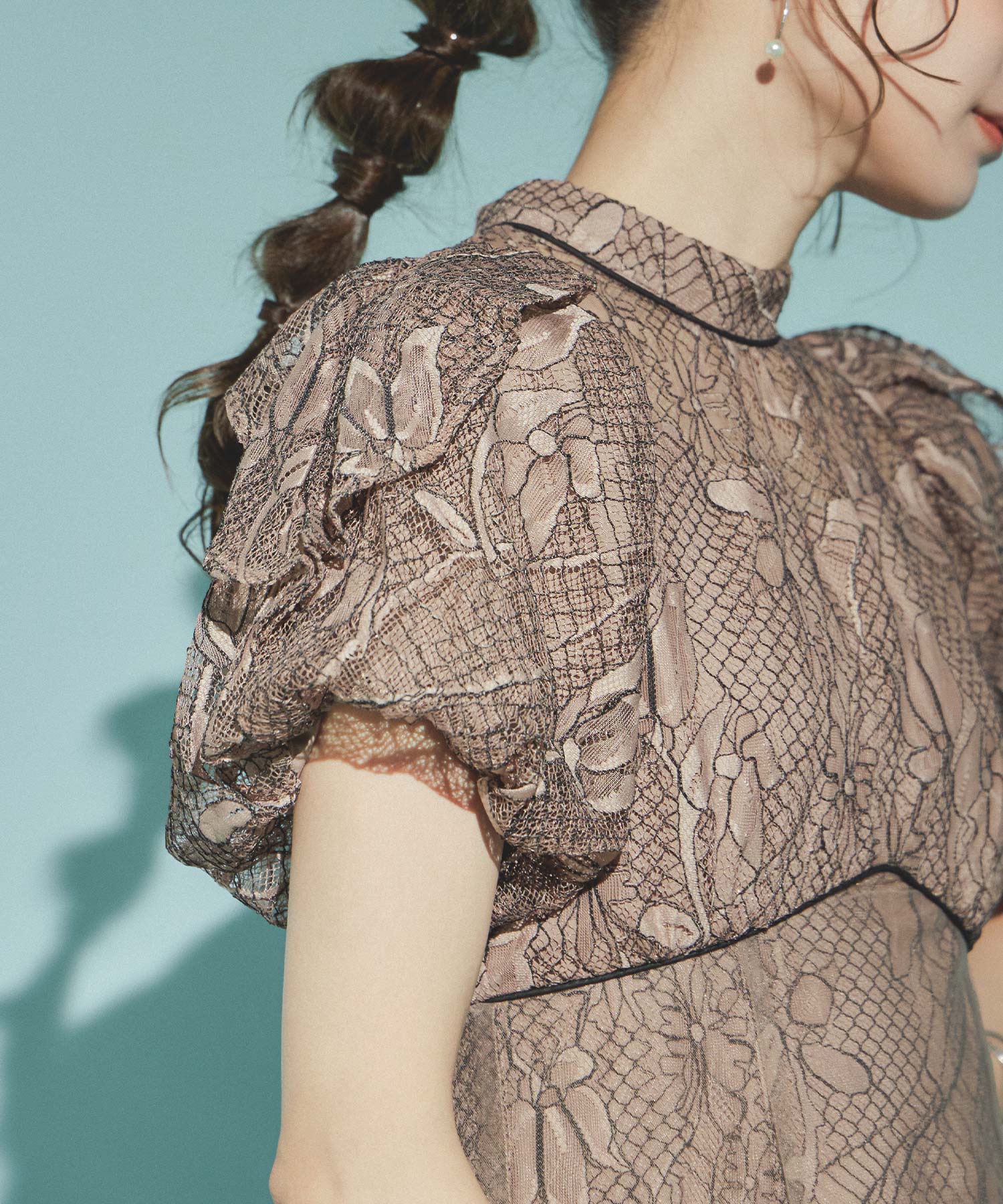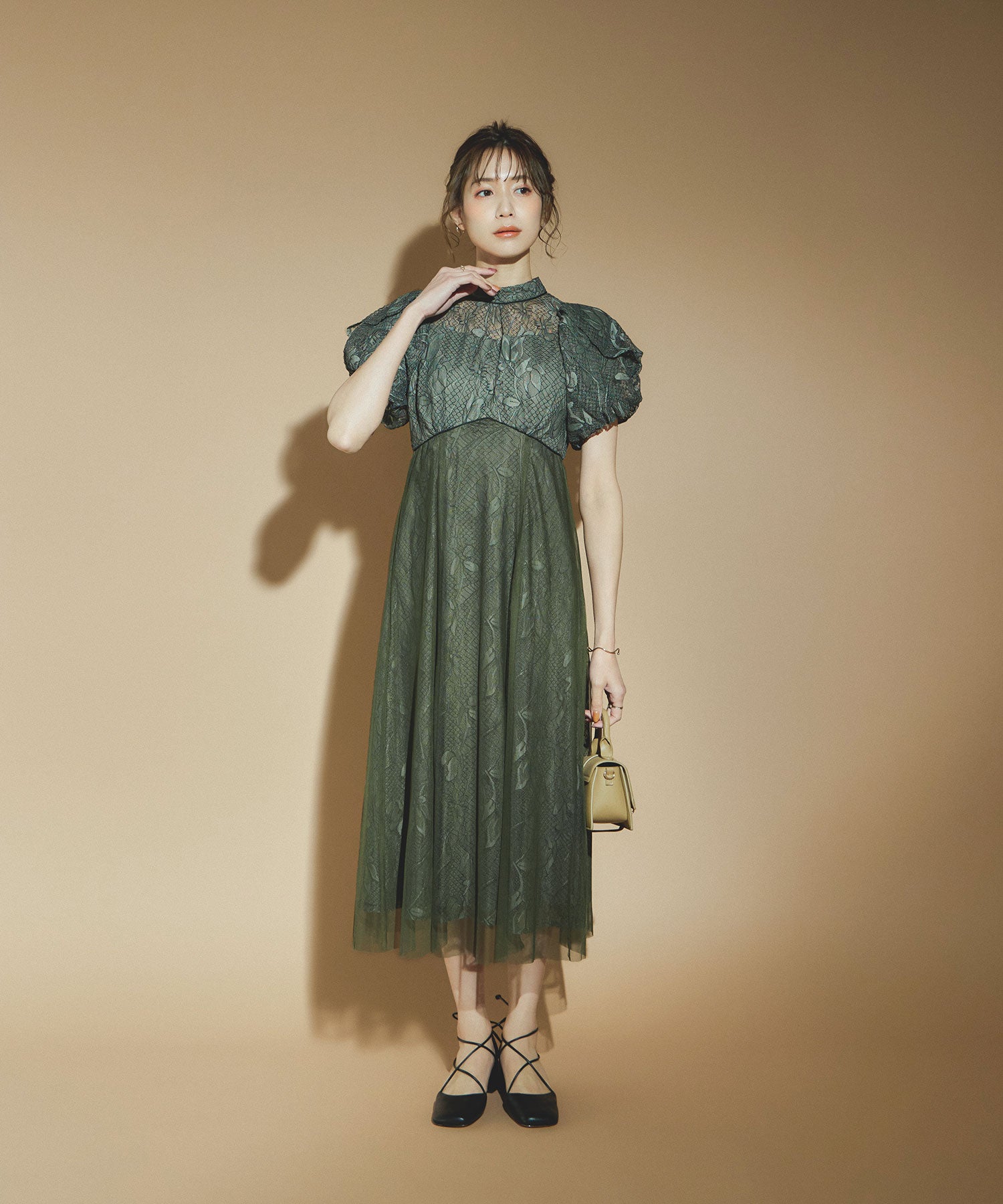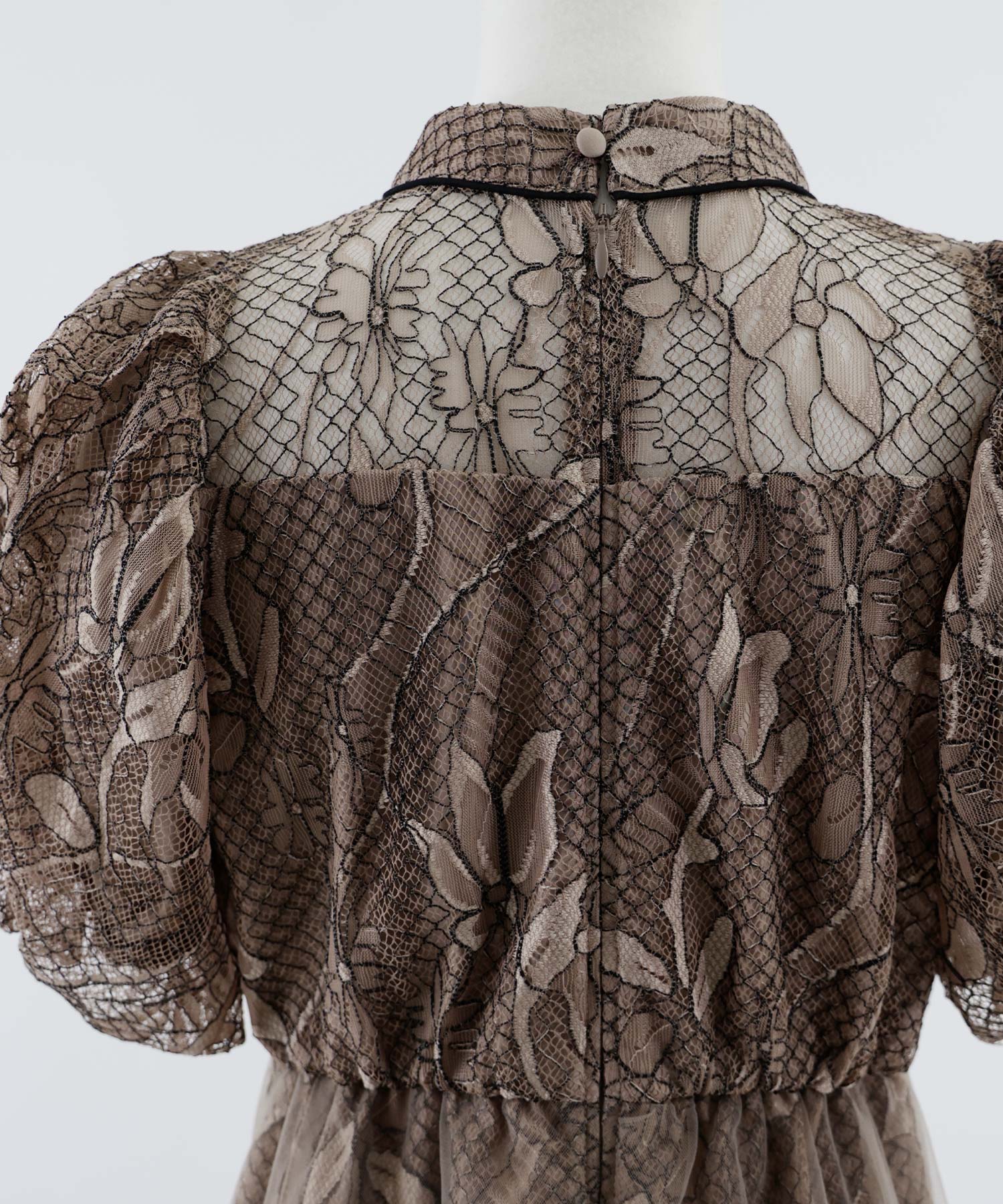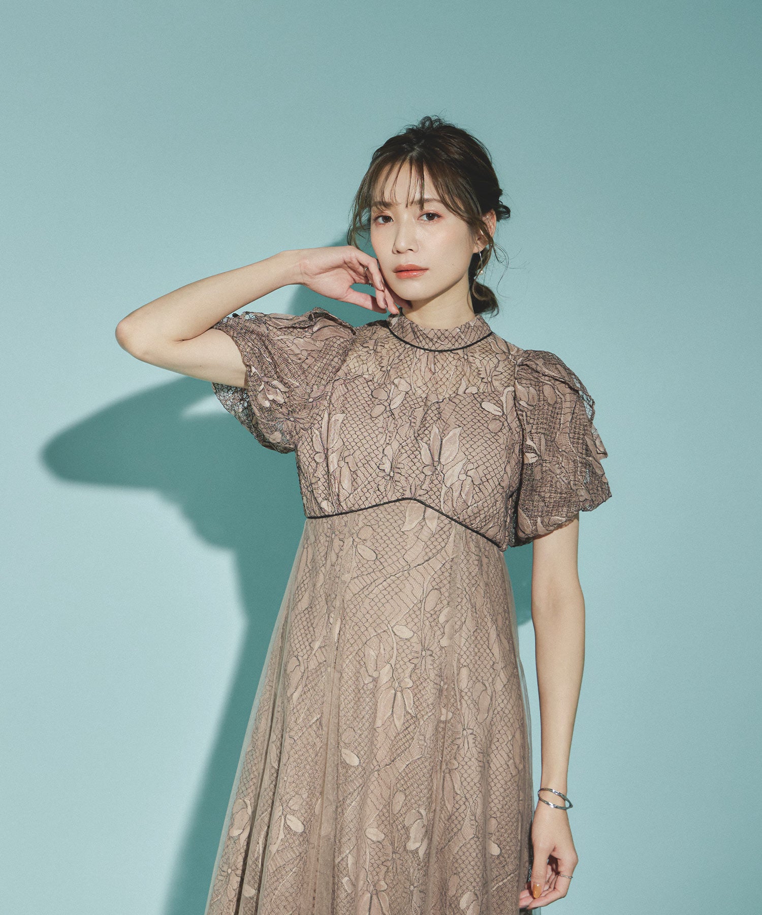 Zname ボリューム袖レースチュールレイヤードパーティードレス
