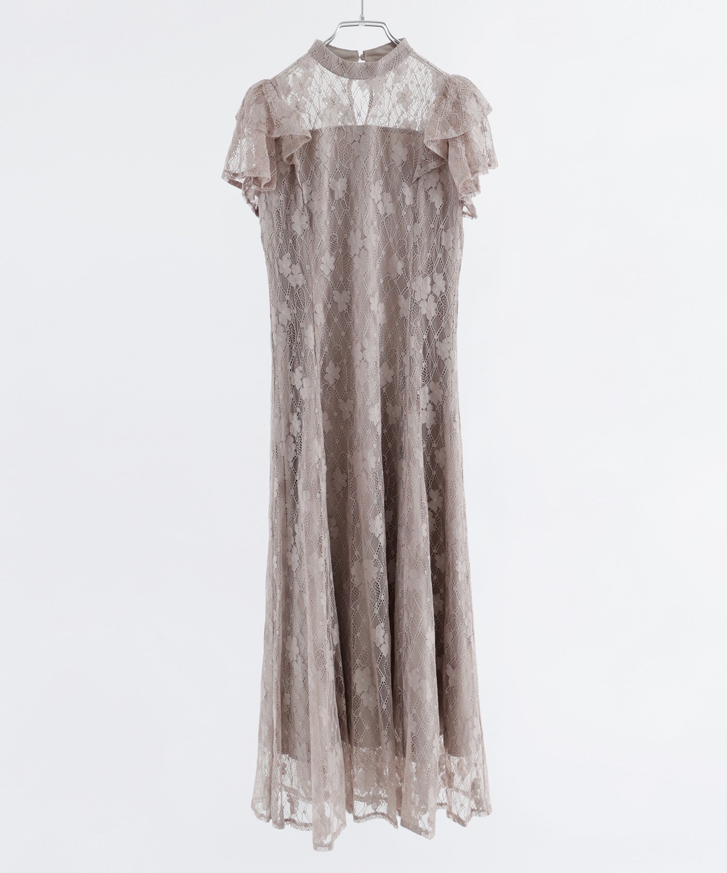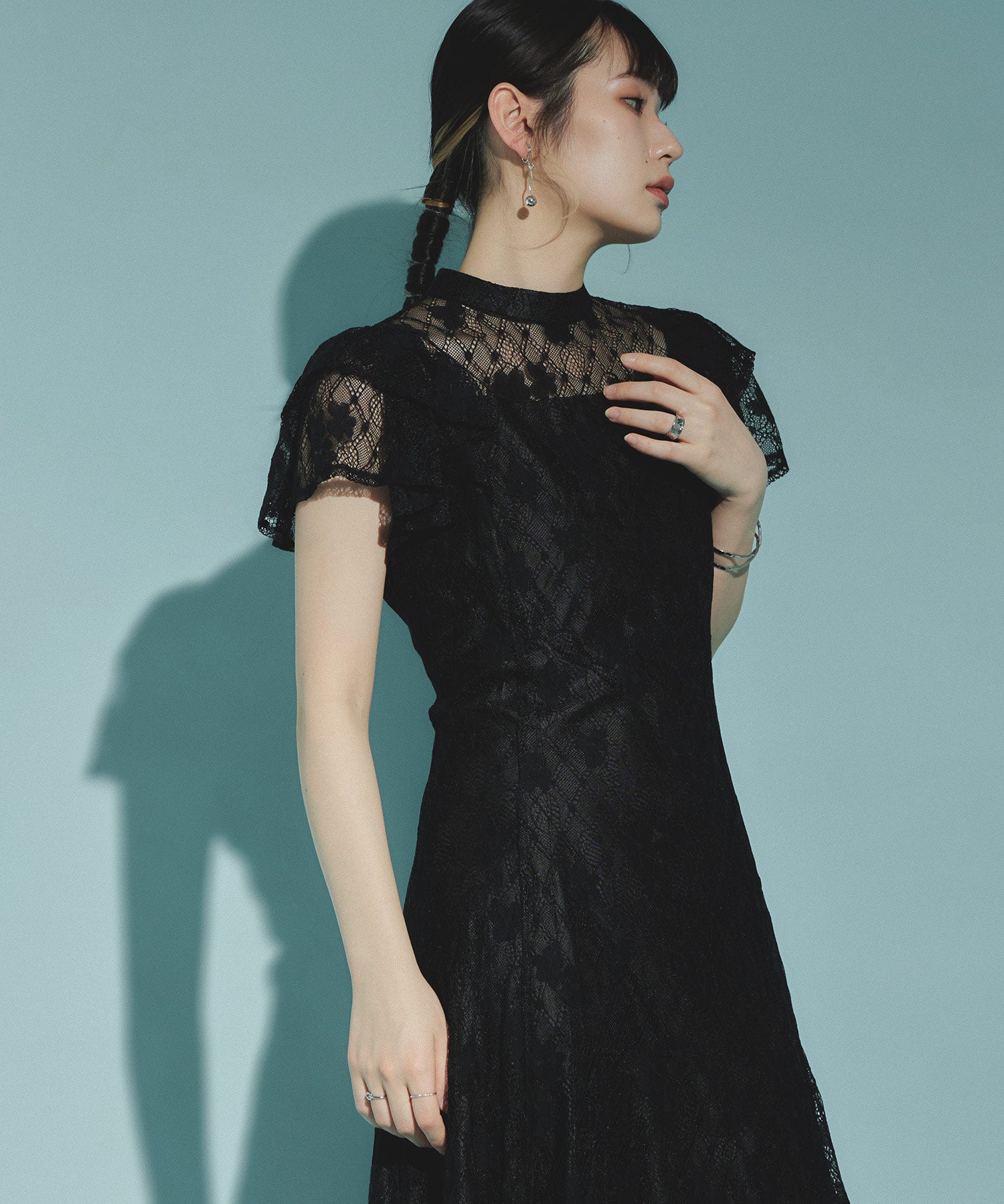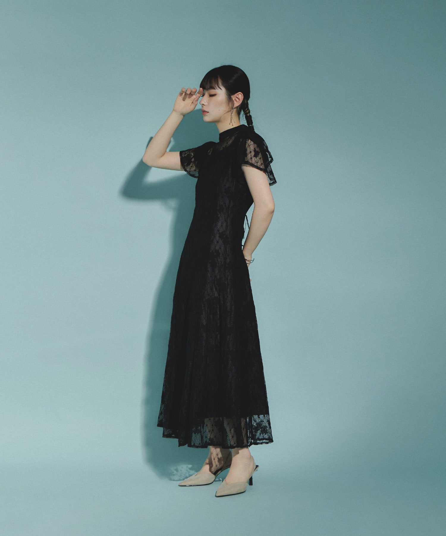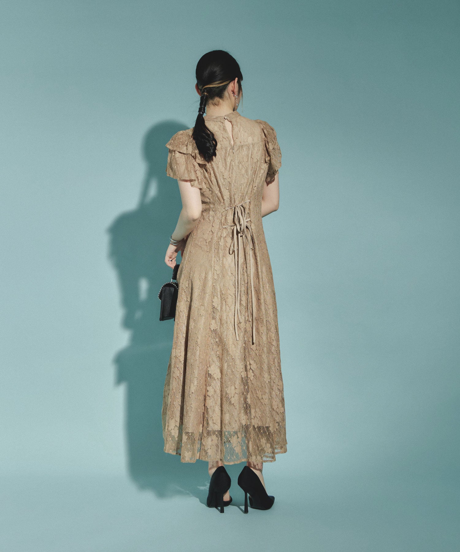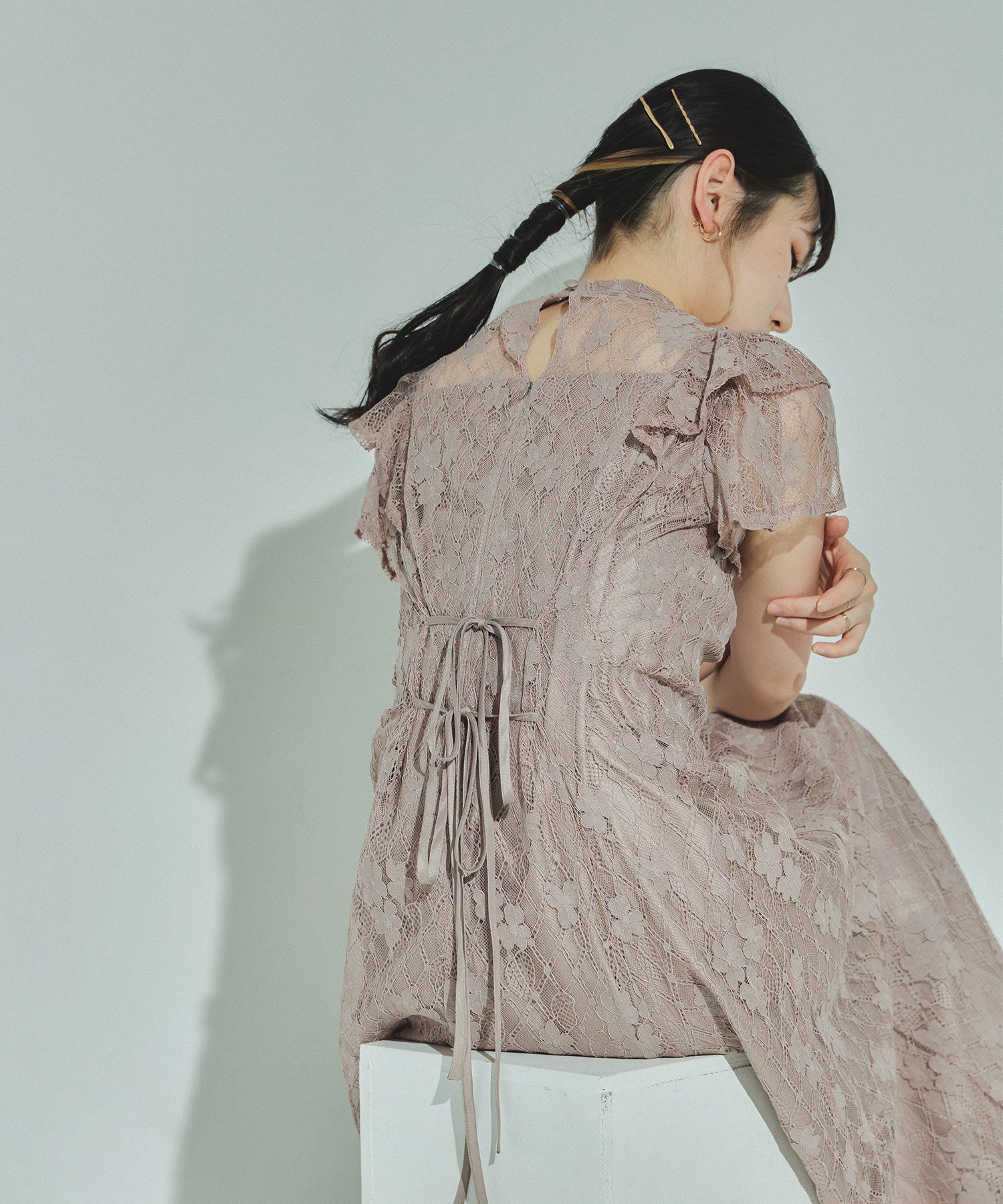 目を惹く花柄レースを全身に纏い、ダブルフリルスリーブで