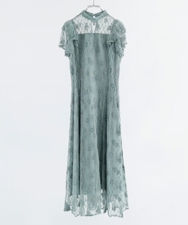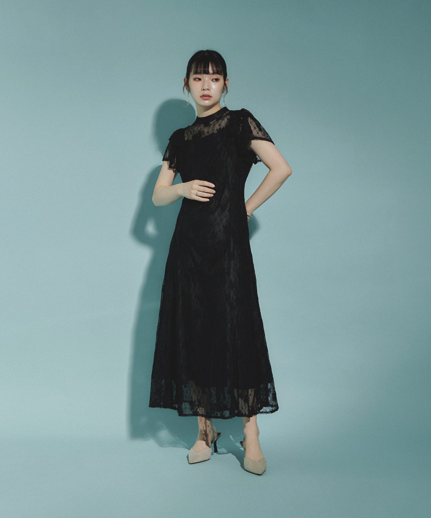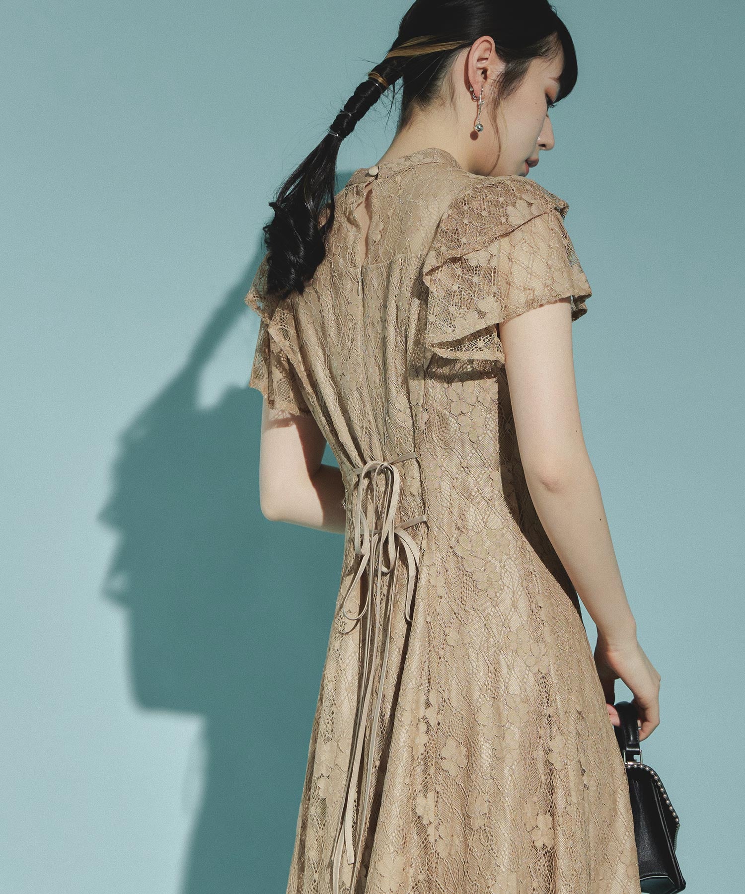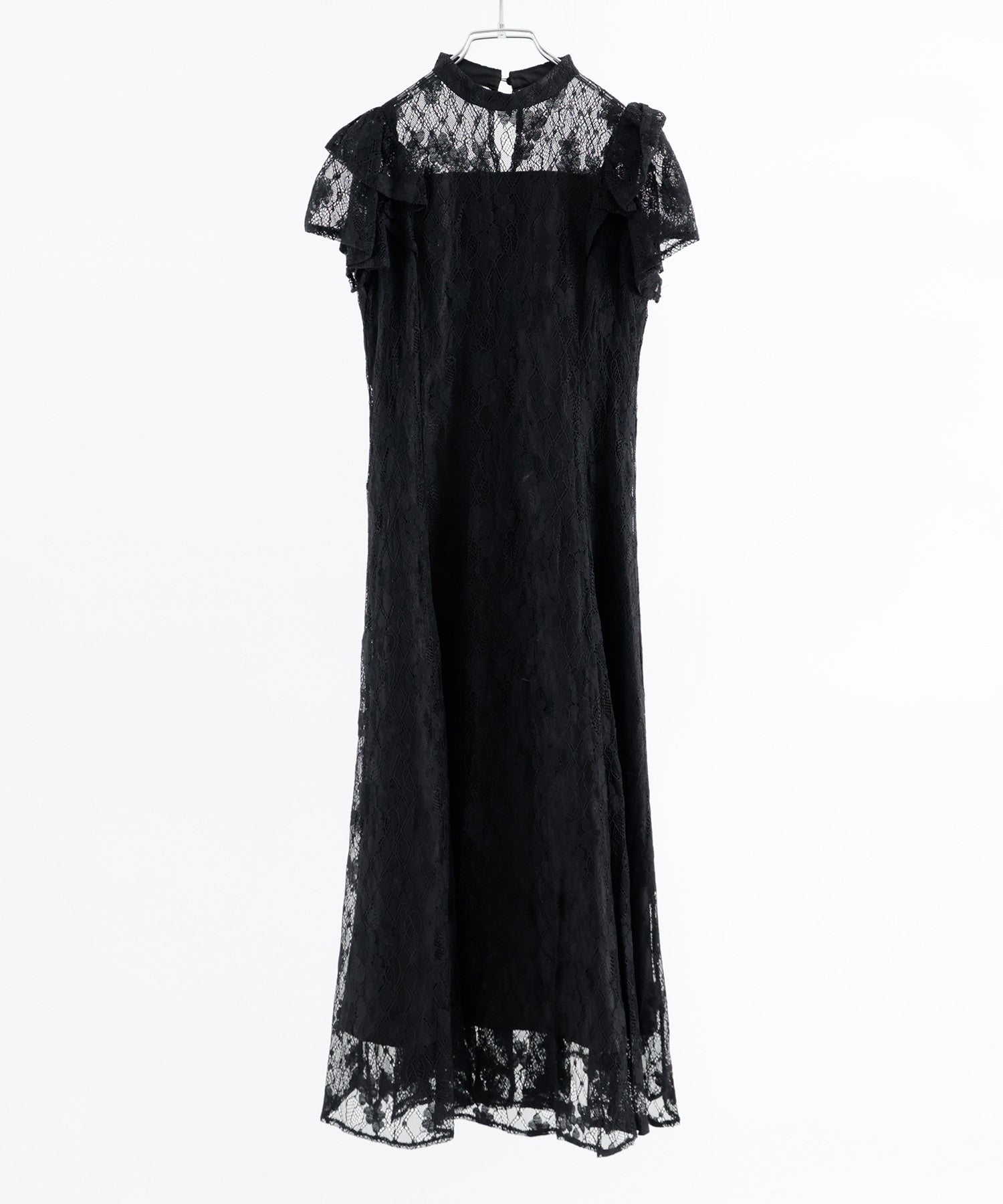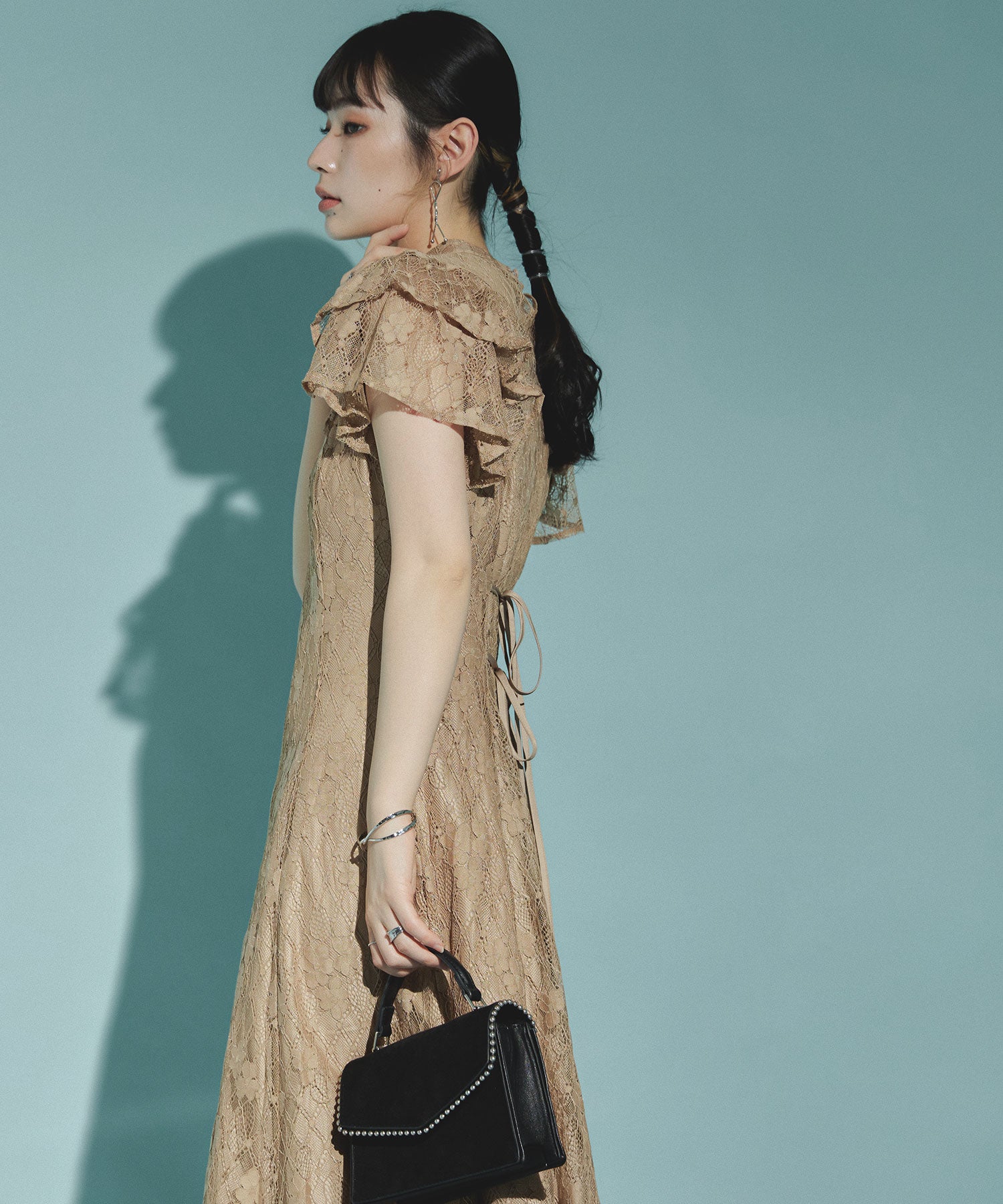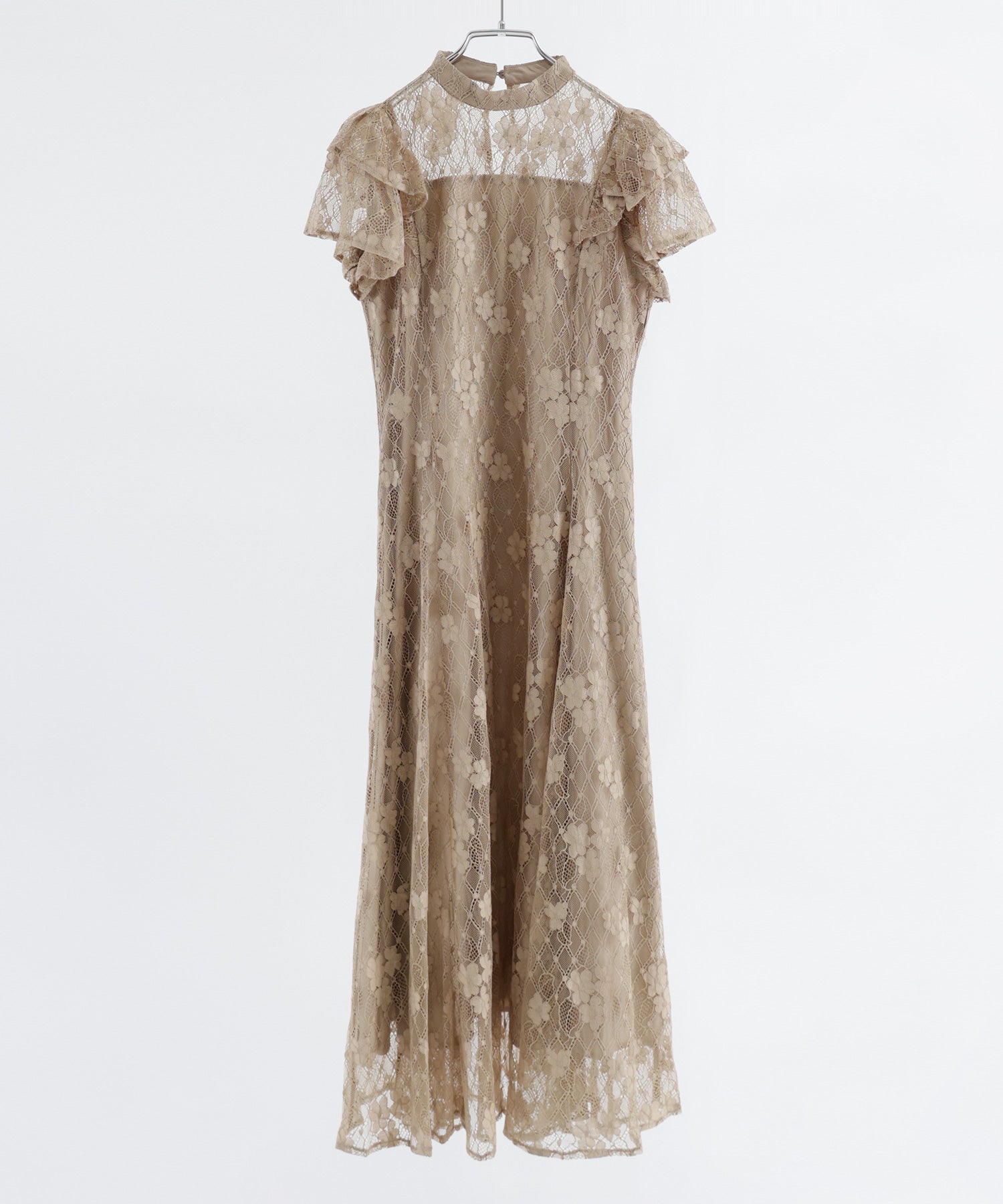 目を惹く花柄レースを全身に纏い、ダブルフリルスリーブで