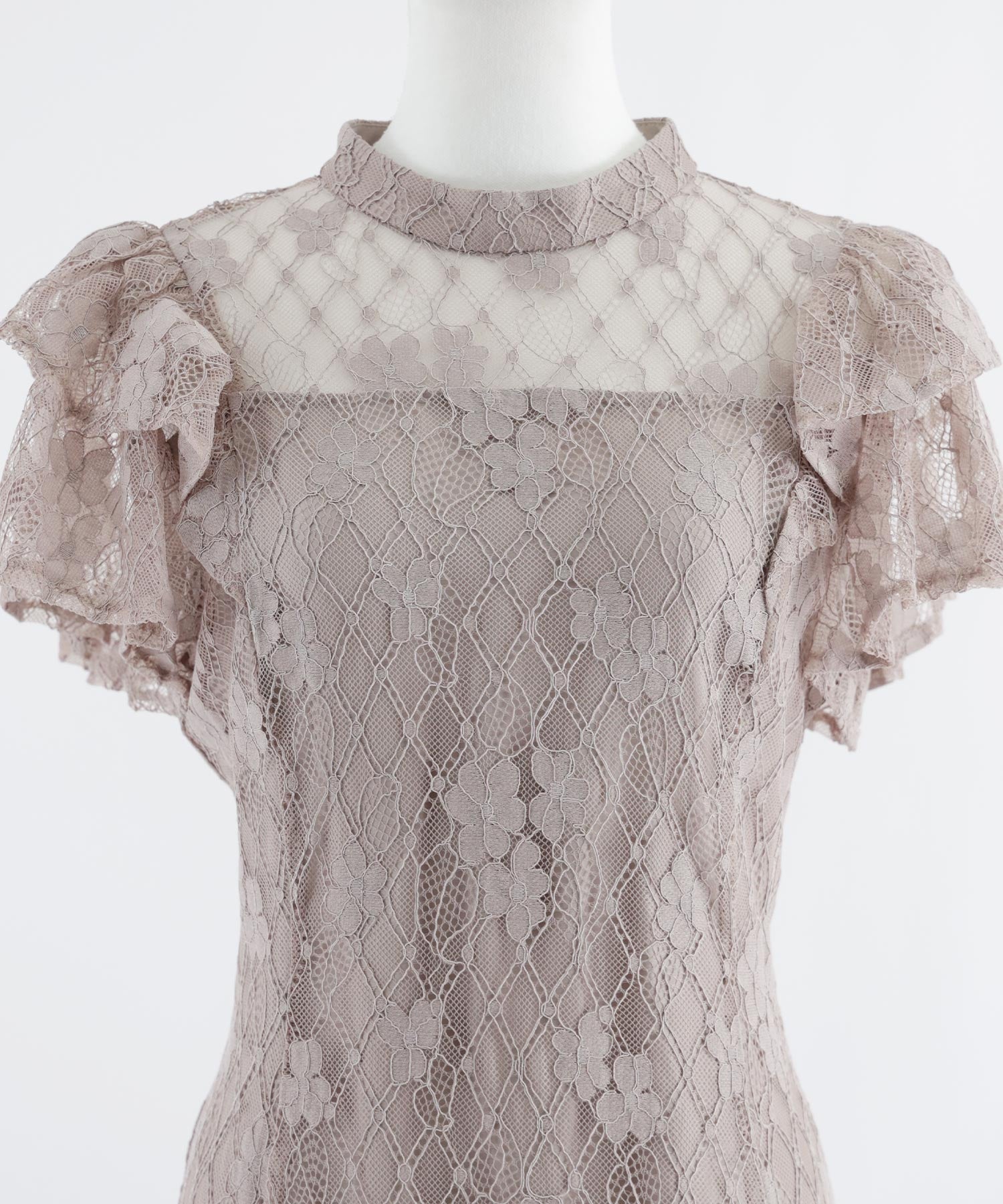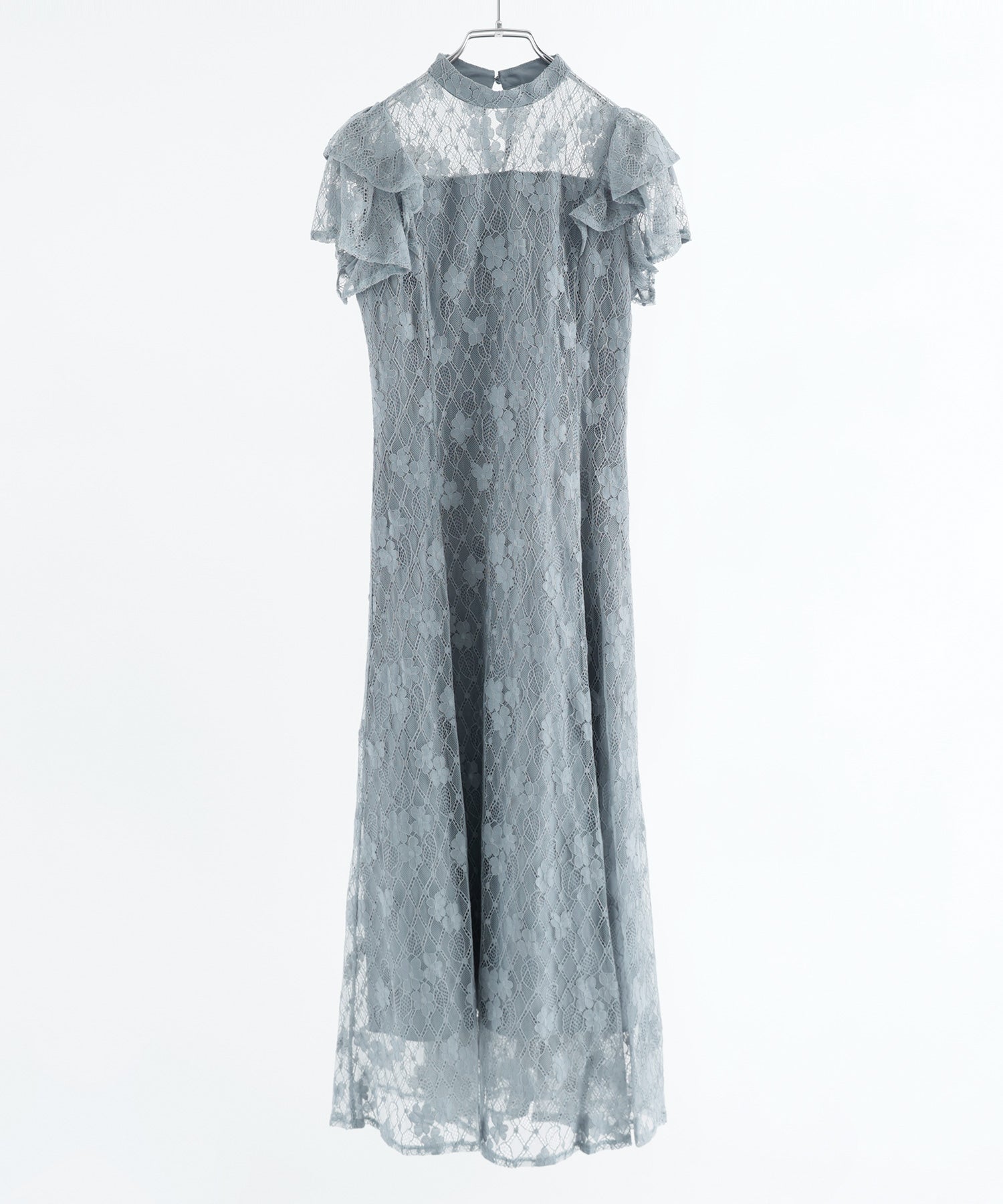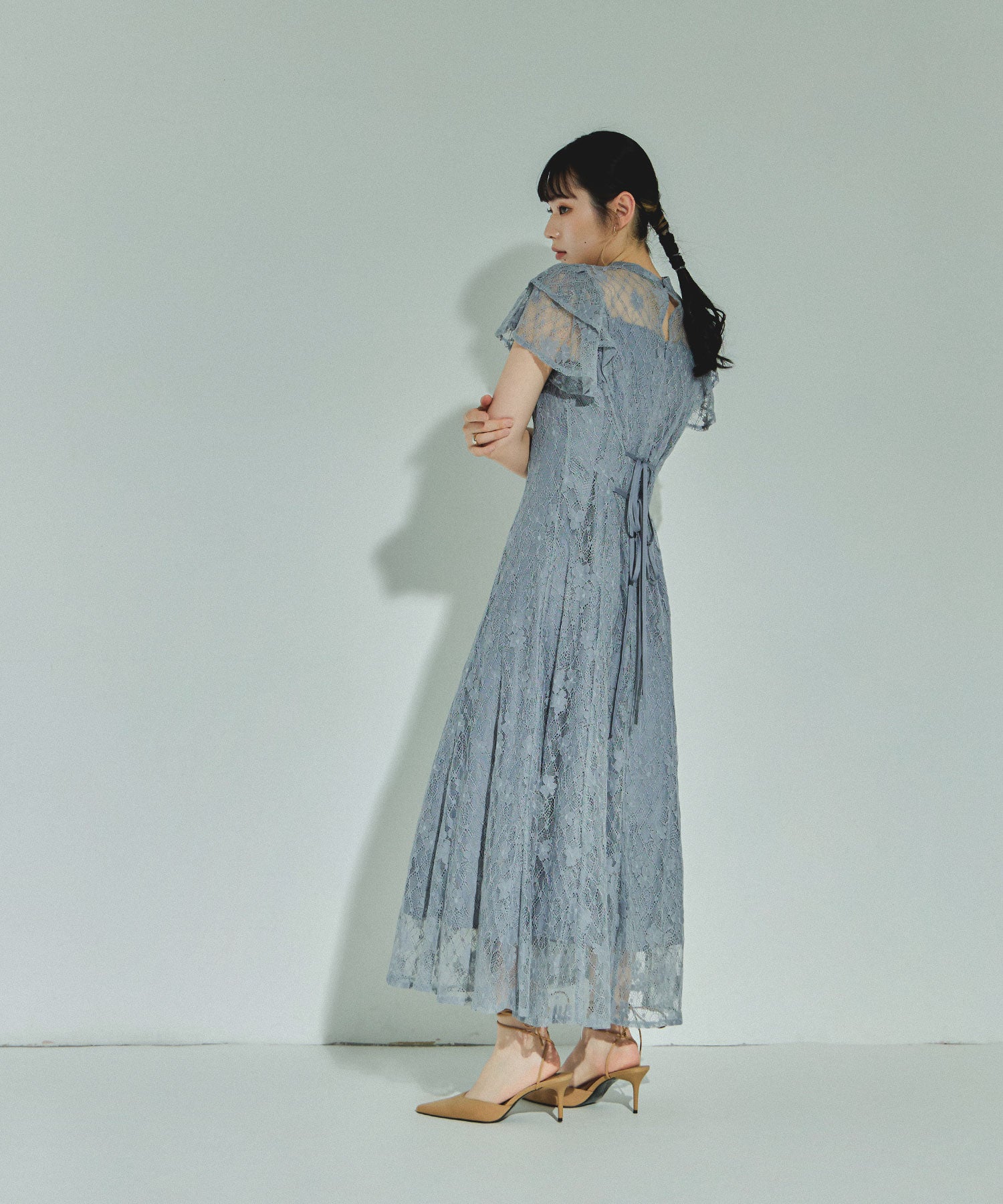 Zname ダブルフリルスリーブ花柄レースパーティードレス