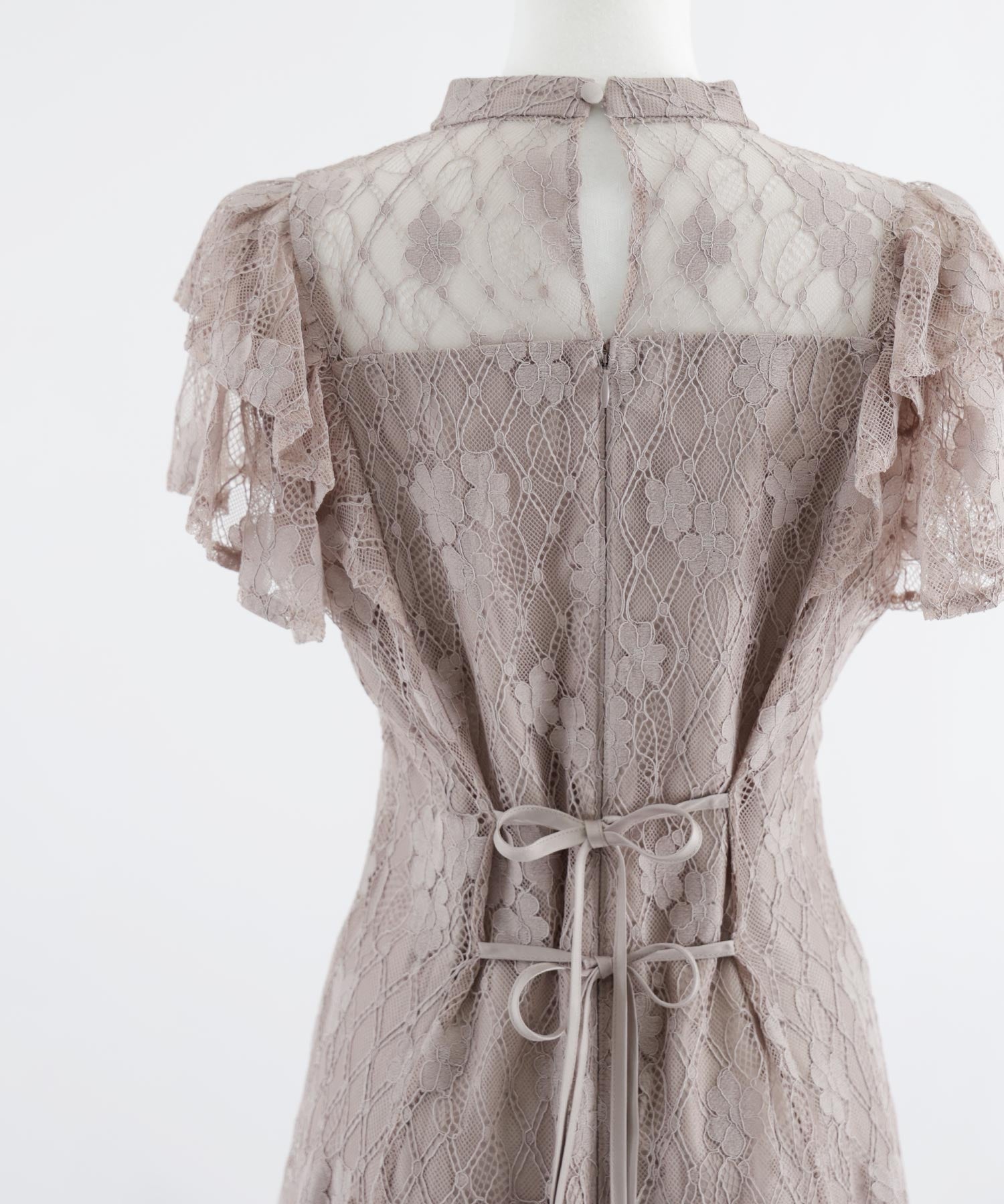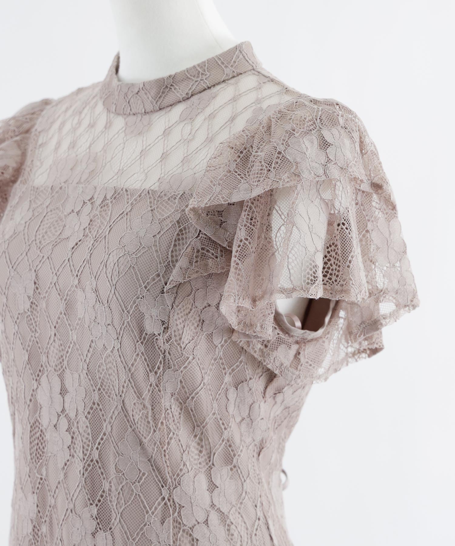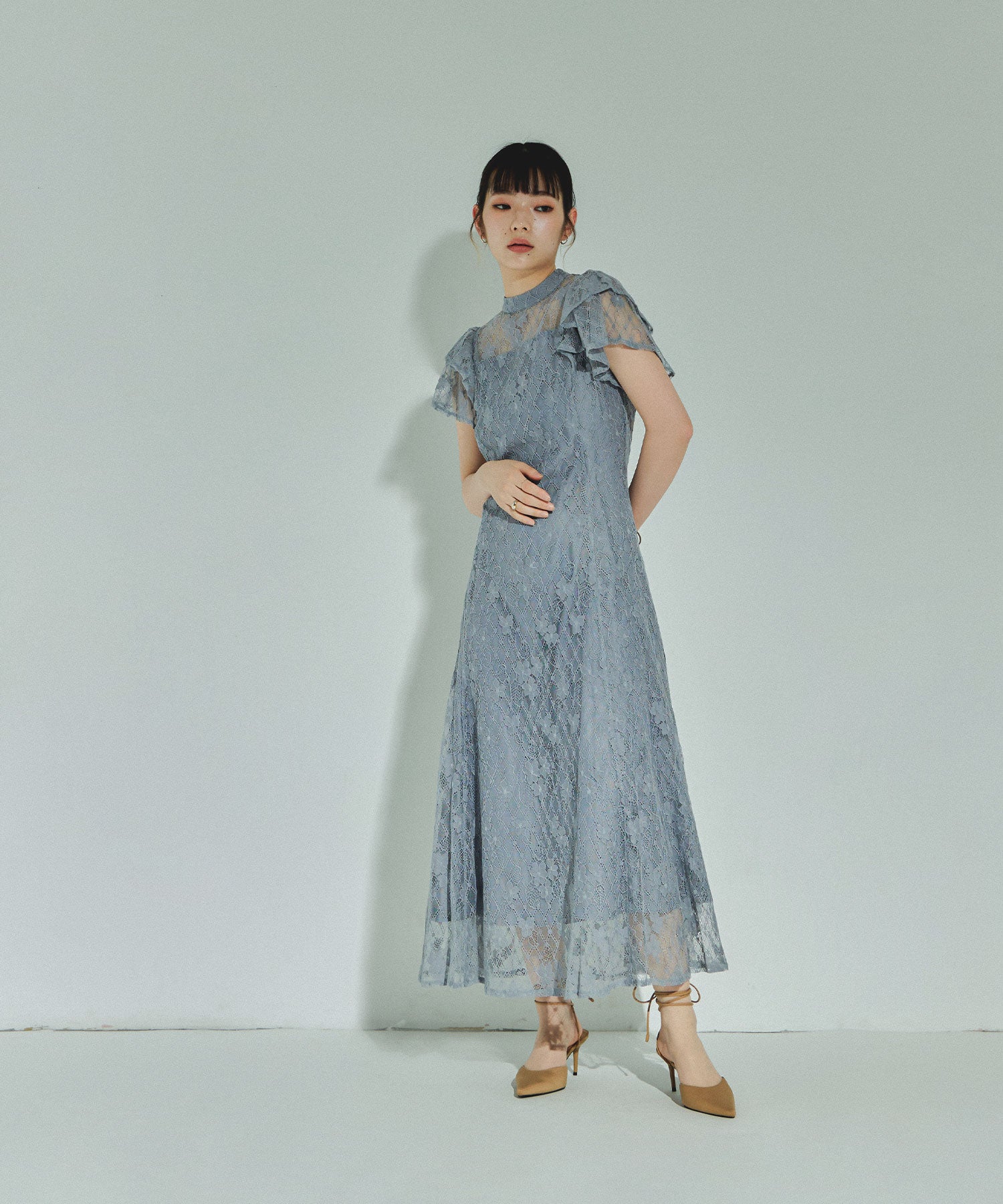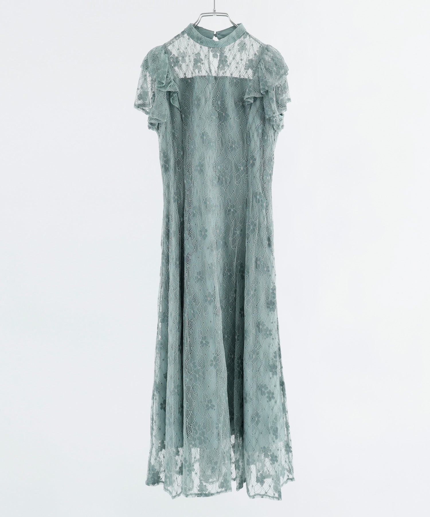 Zname ダブルフリルスリーブ花柄レースパーティードレス