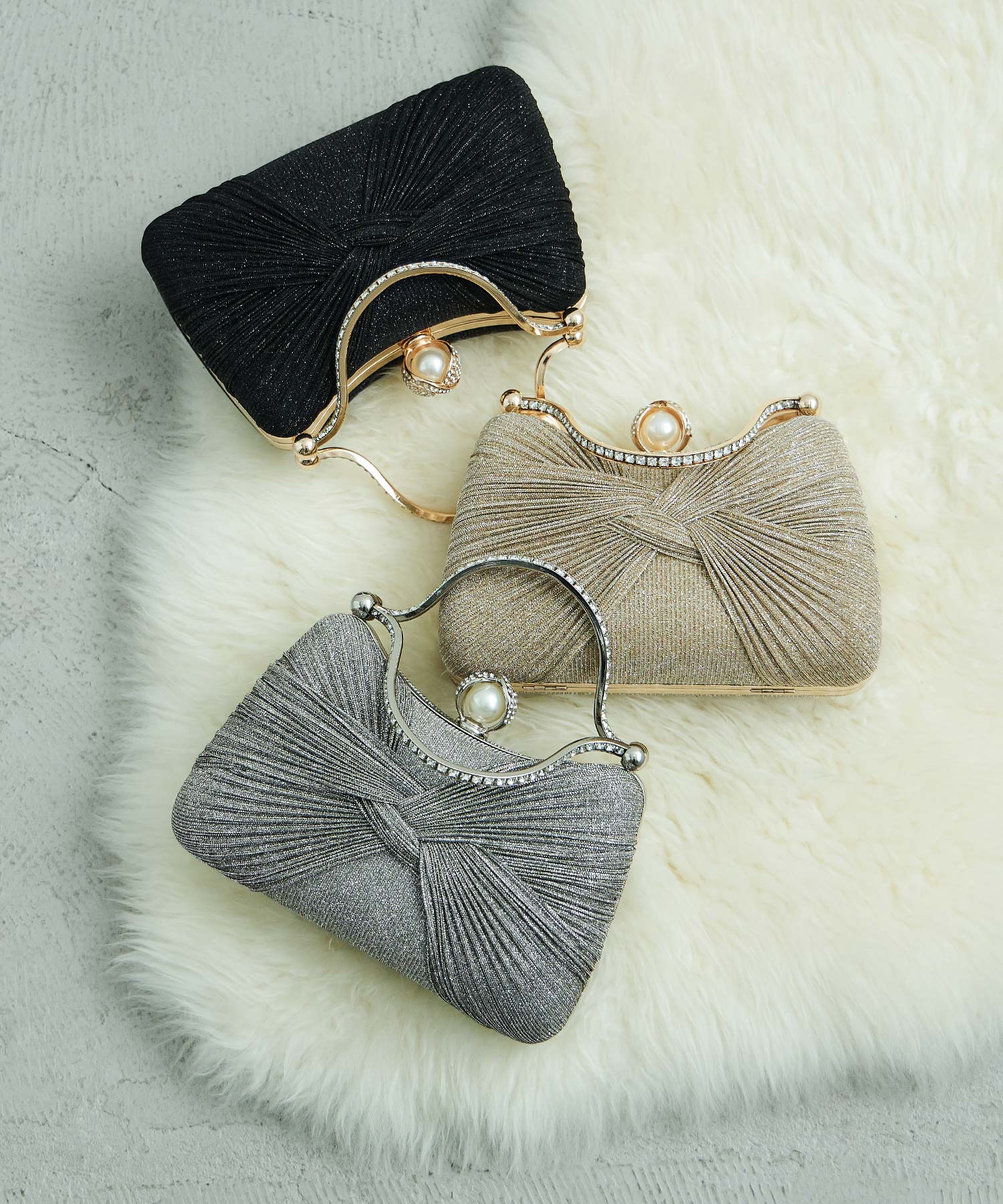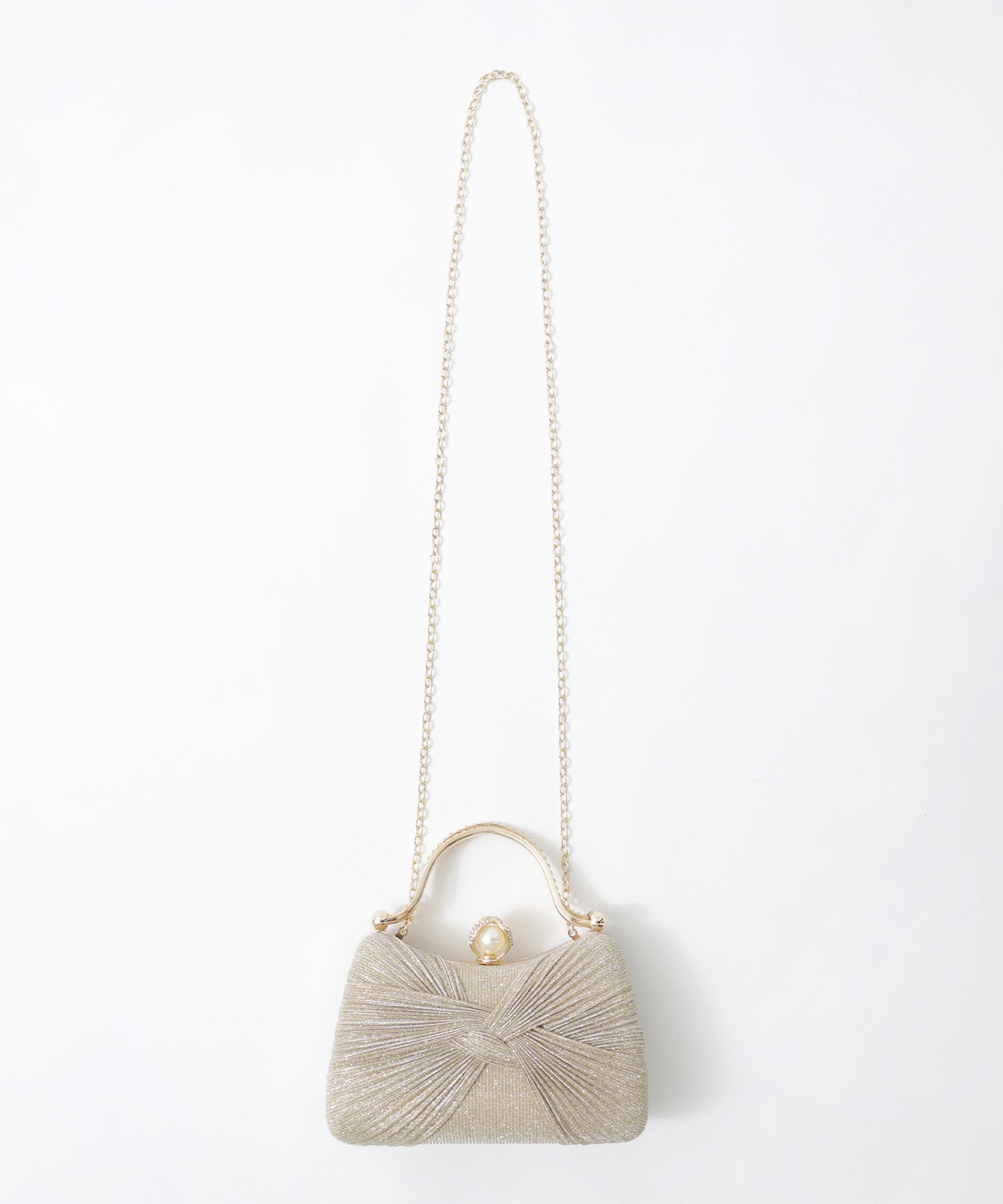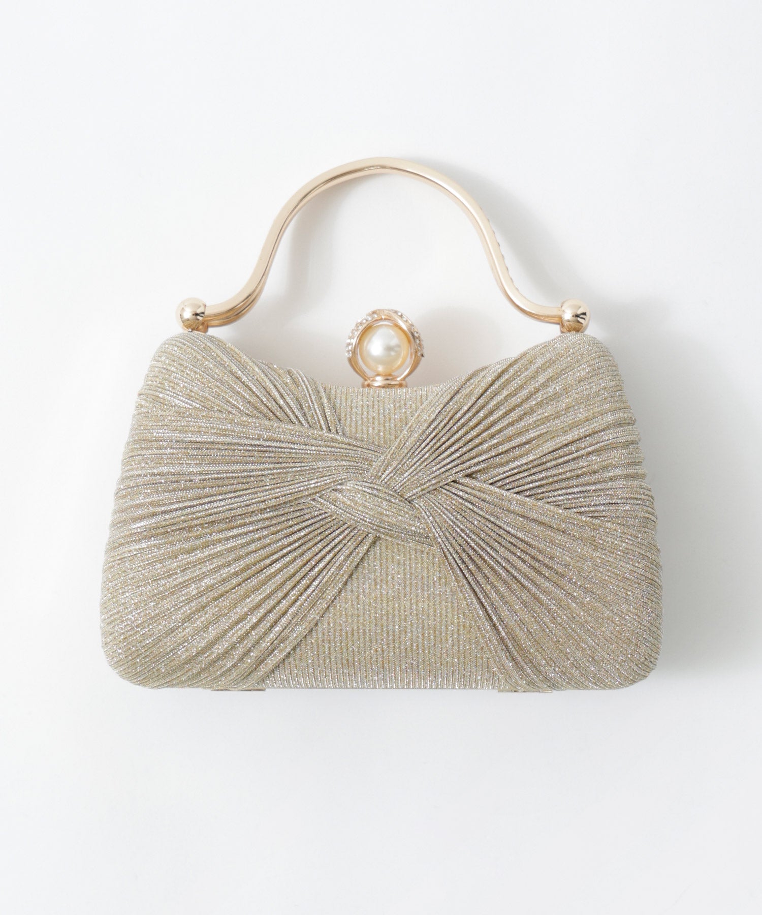 Zname ラメねじりプリーツパーティーハンドバッグ