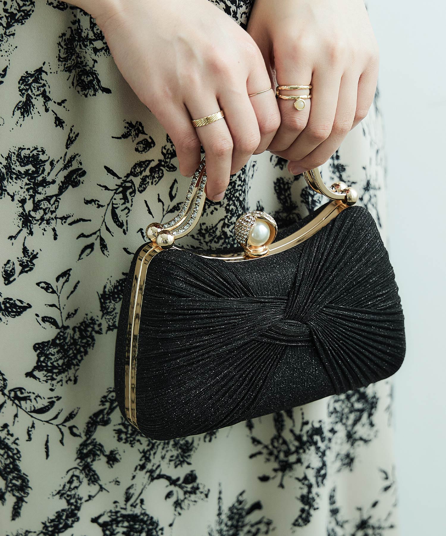 留め具のパールで上品さをプラスしたパーティーバッグ。