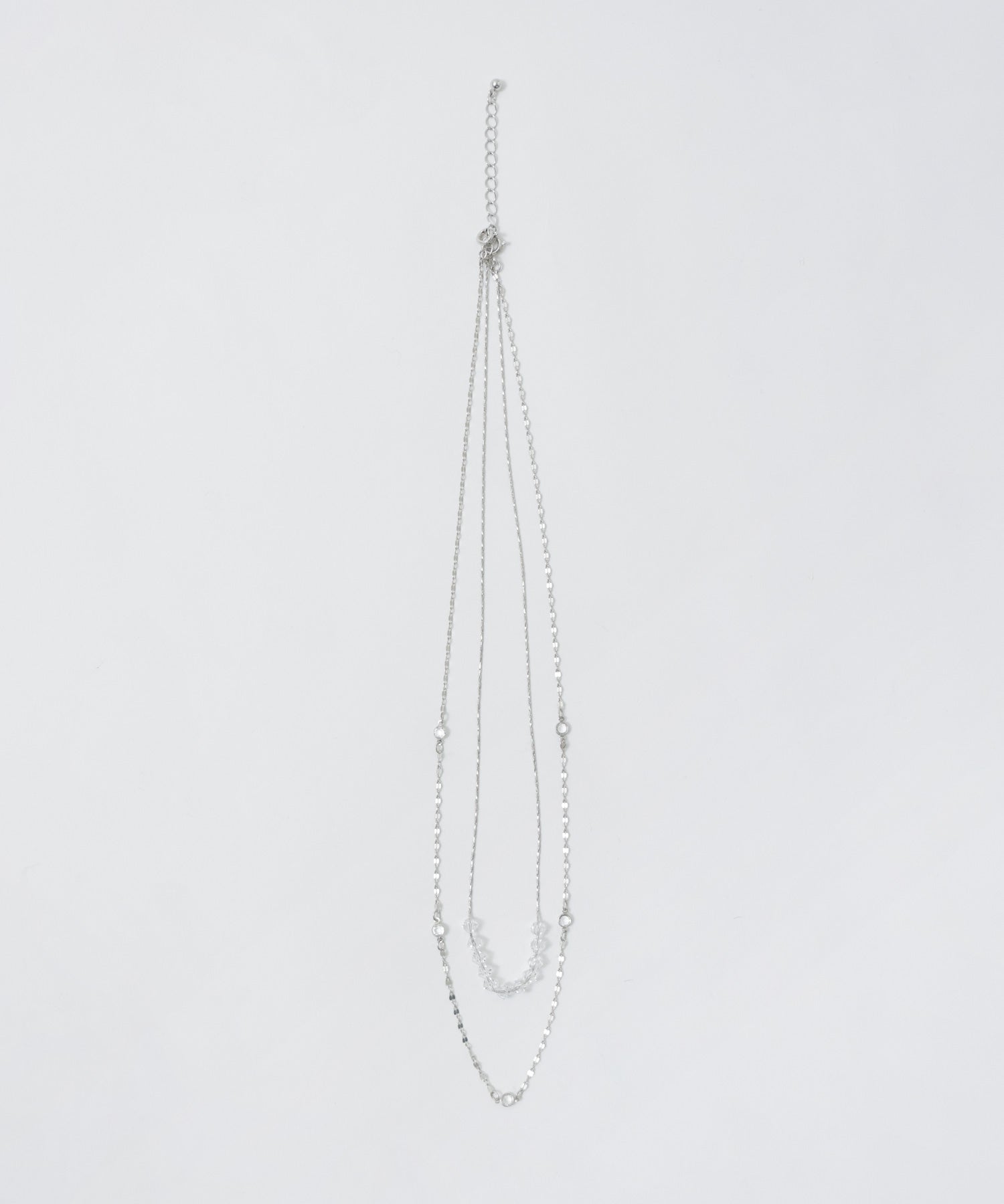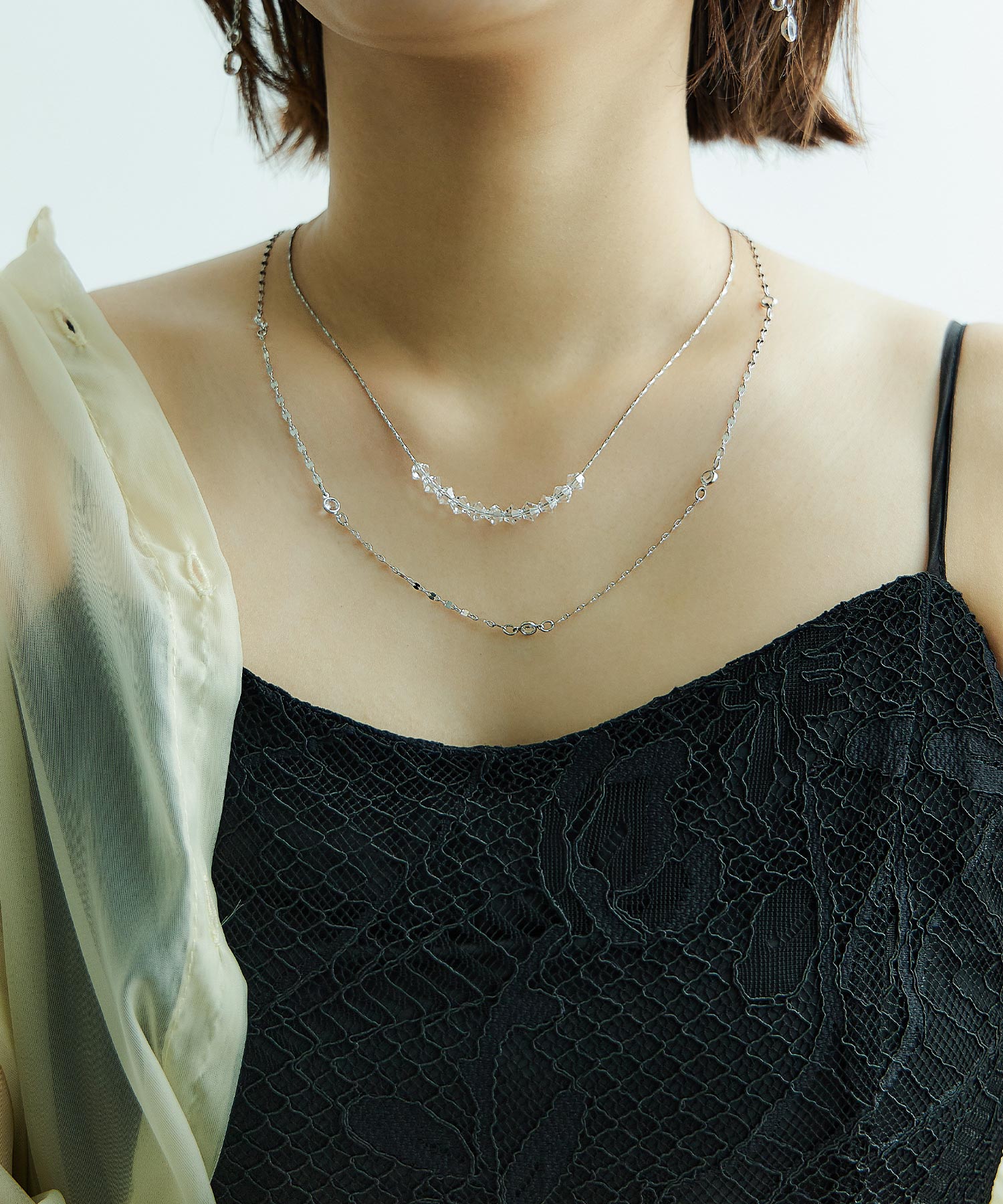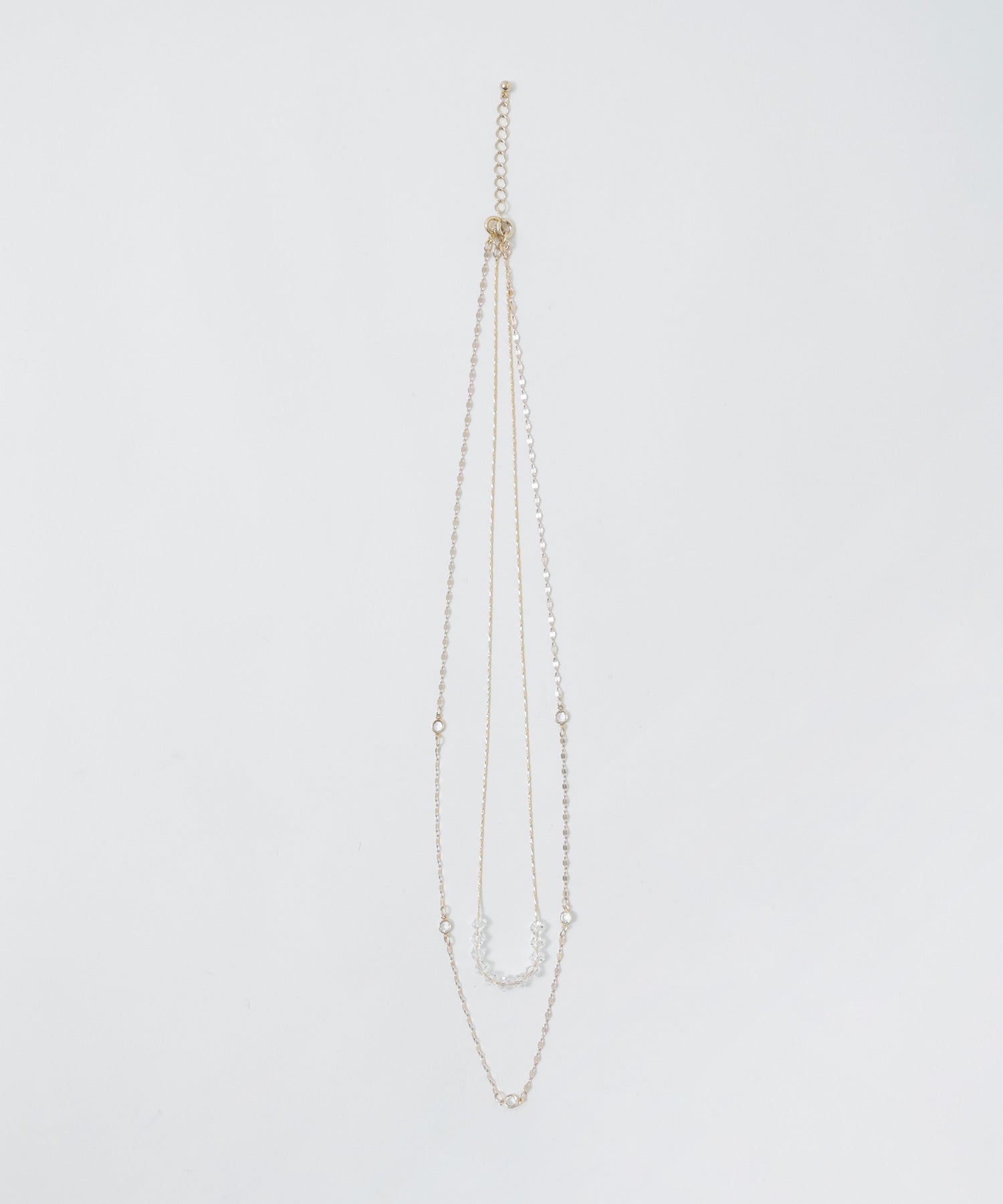 Rname ネックレス レディース ビジュー 2連 結婚式 アクセサリー ビーズ ロング チェーン 華奢 シンプル ジュエリー ゴールド シルバー パーティー 大人 フォーマル 二次会 成人式 謝恩会 お呼ばれ パーティ 卒業式 オケージョン ドレス プレゼント ギフト 日本製