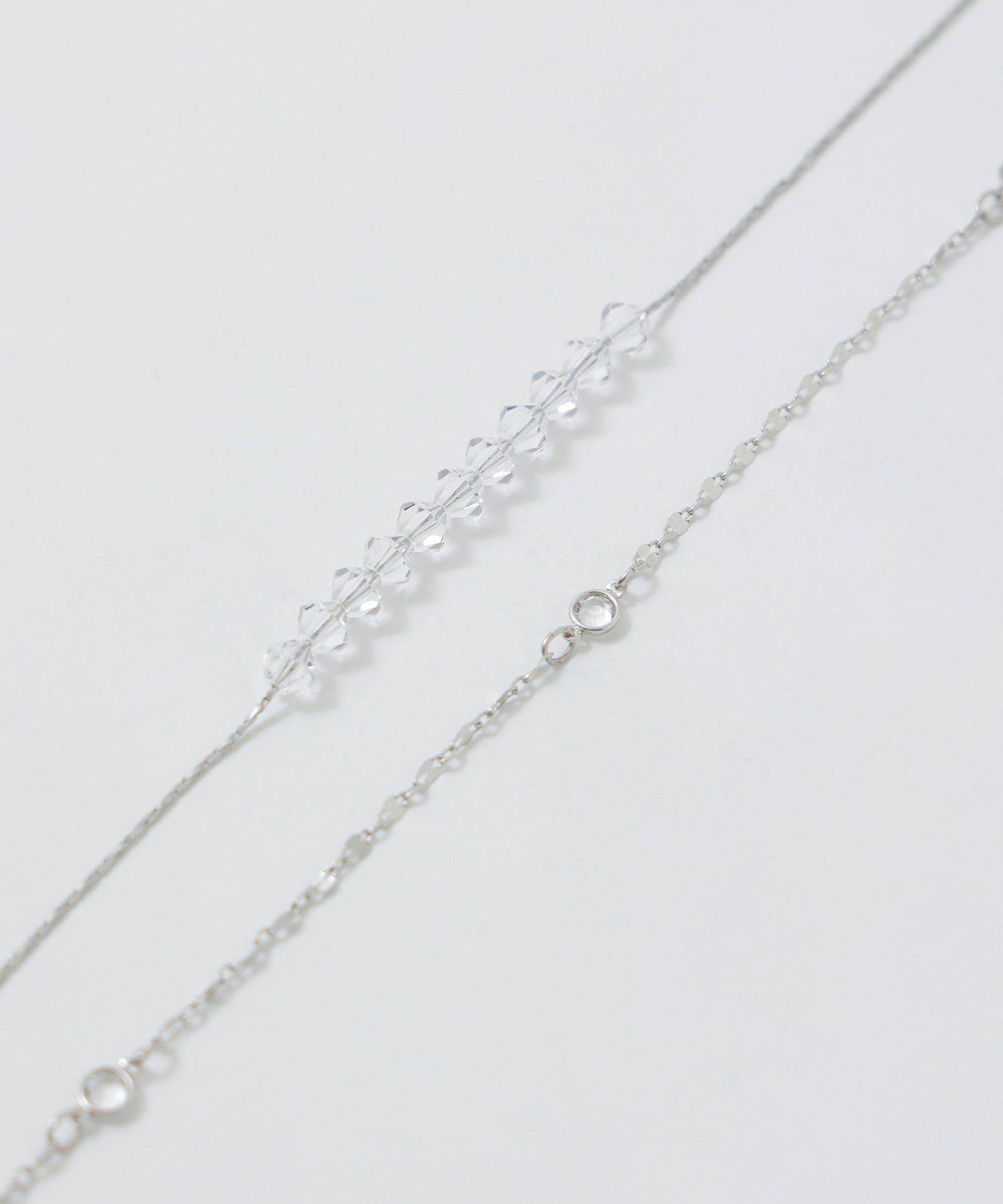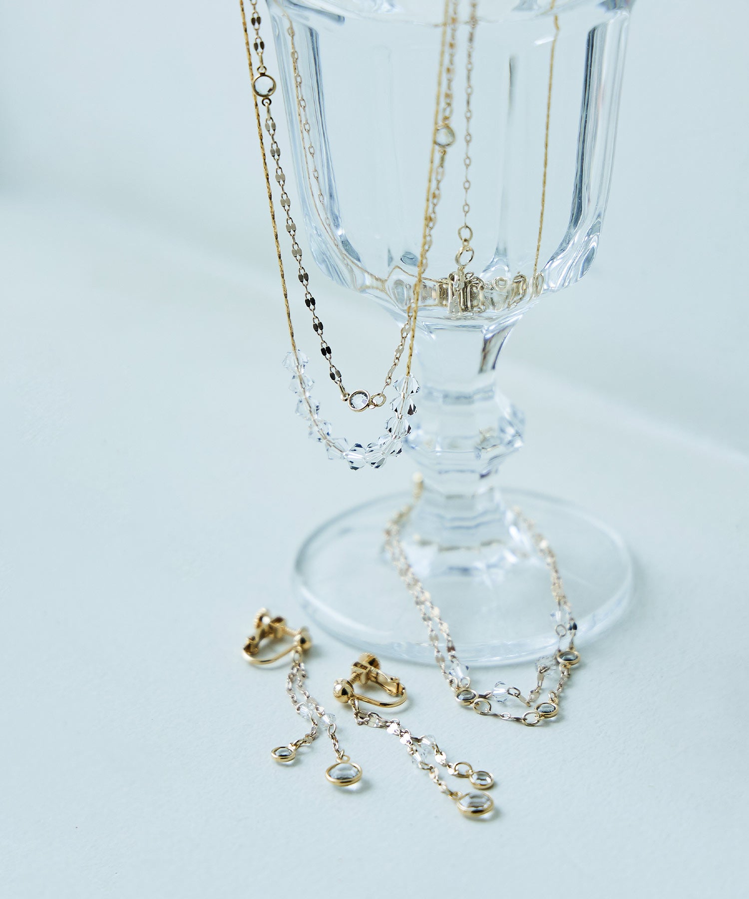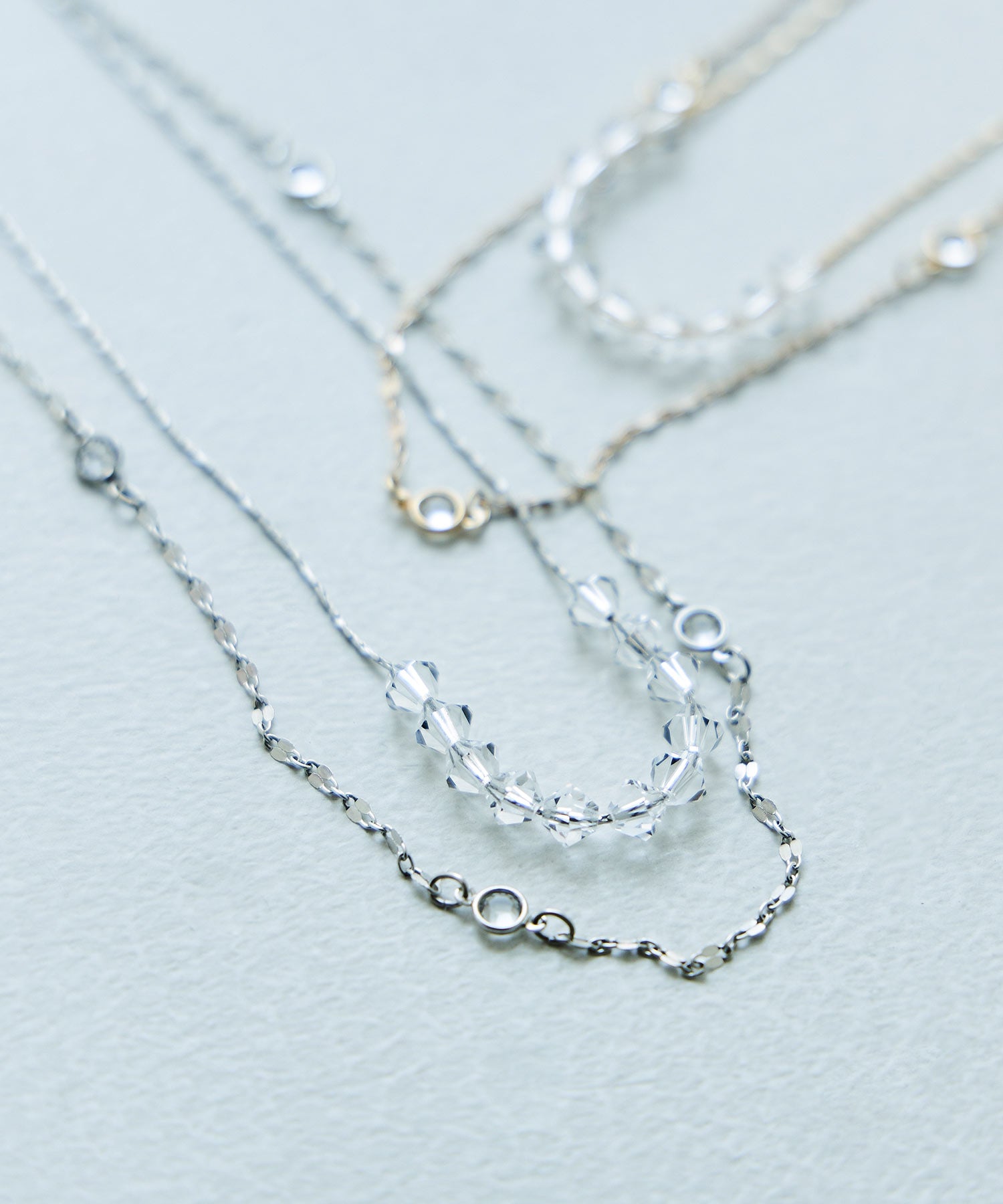 Rname ネックレス レディース ビジュー 2連 結婚式 アクセサリー ビーズ ロング チェーン 華奢 シンプル ジュエリー ゴールド シルバー パーティー 大人 フォーマル 二次会 成人式 謝恩会 お呼ばれ パーティ 卒業式 オケージョン ドレス プレゼント ギフト 日本製