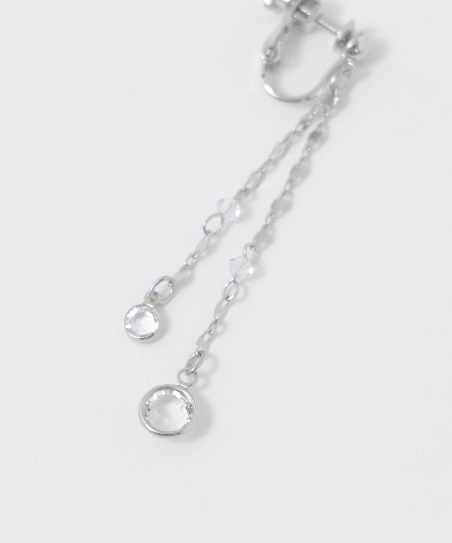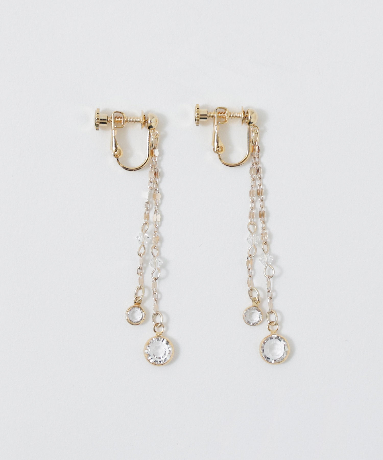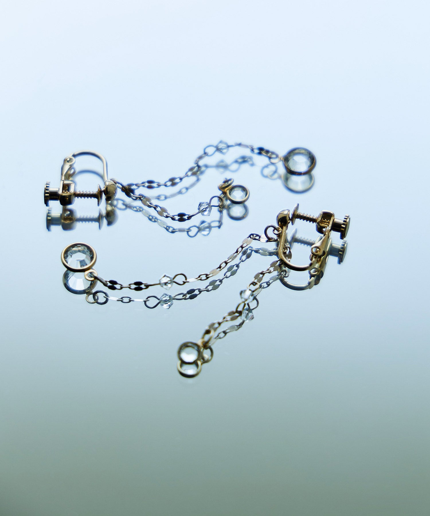 2連チェーンに異なるビジューを飾ったイヤリング。