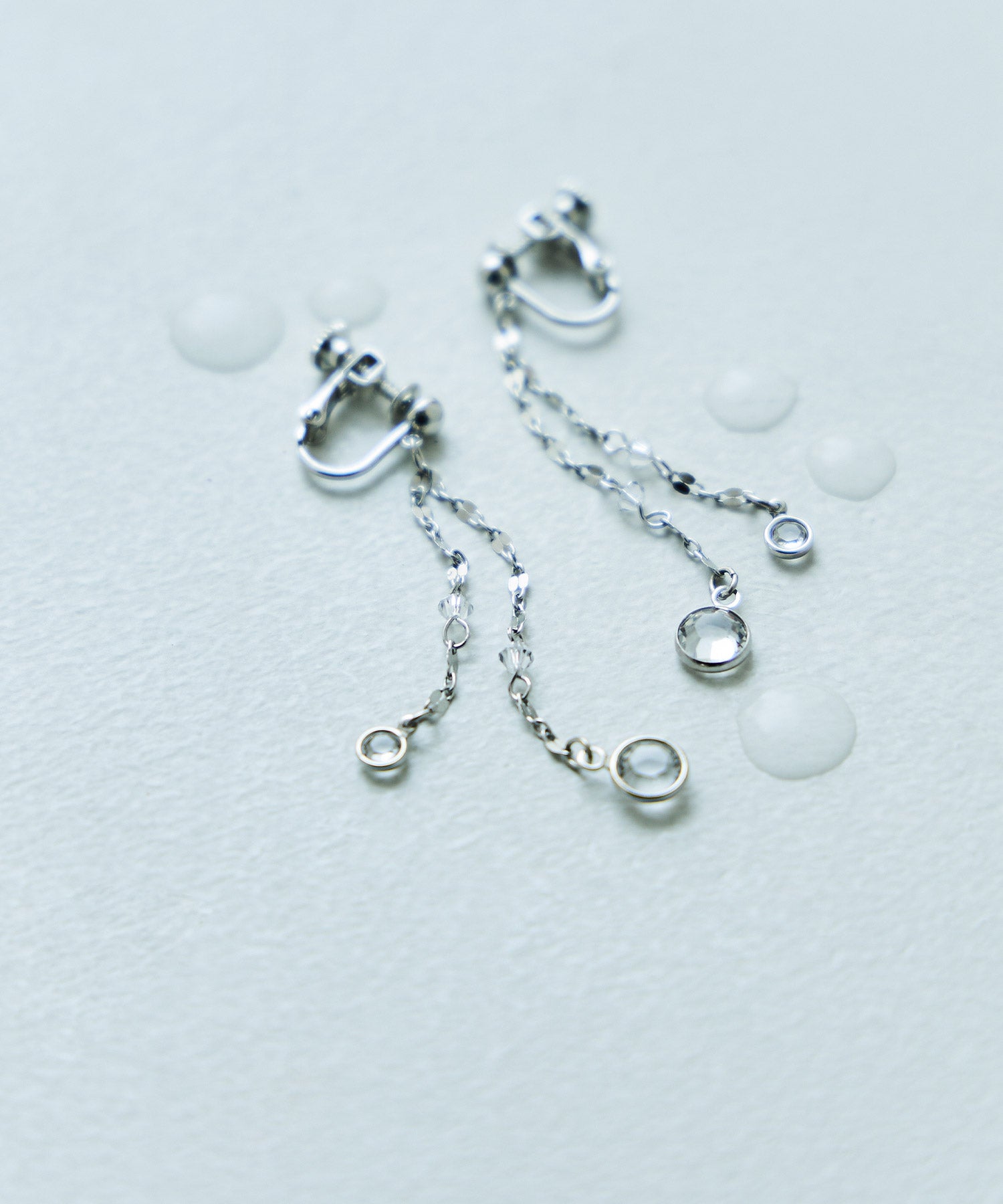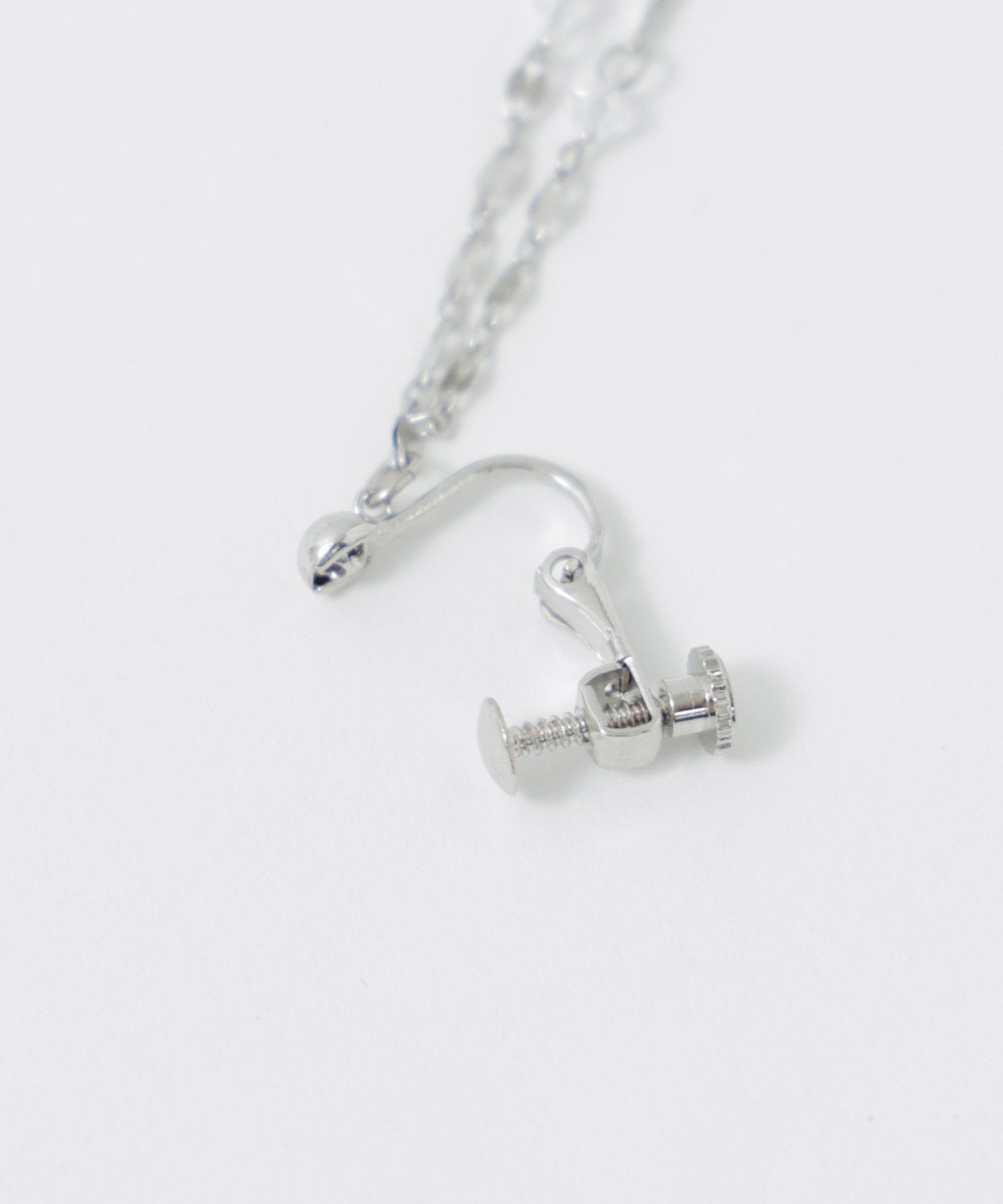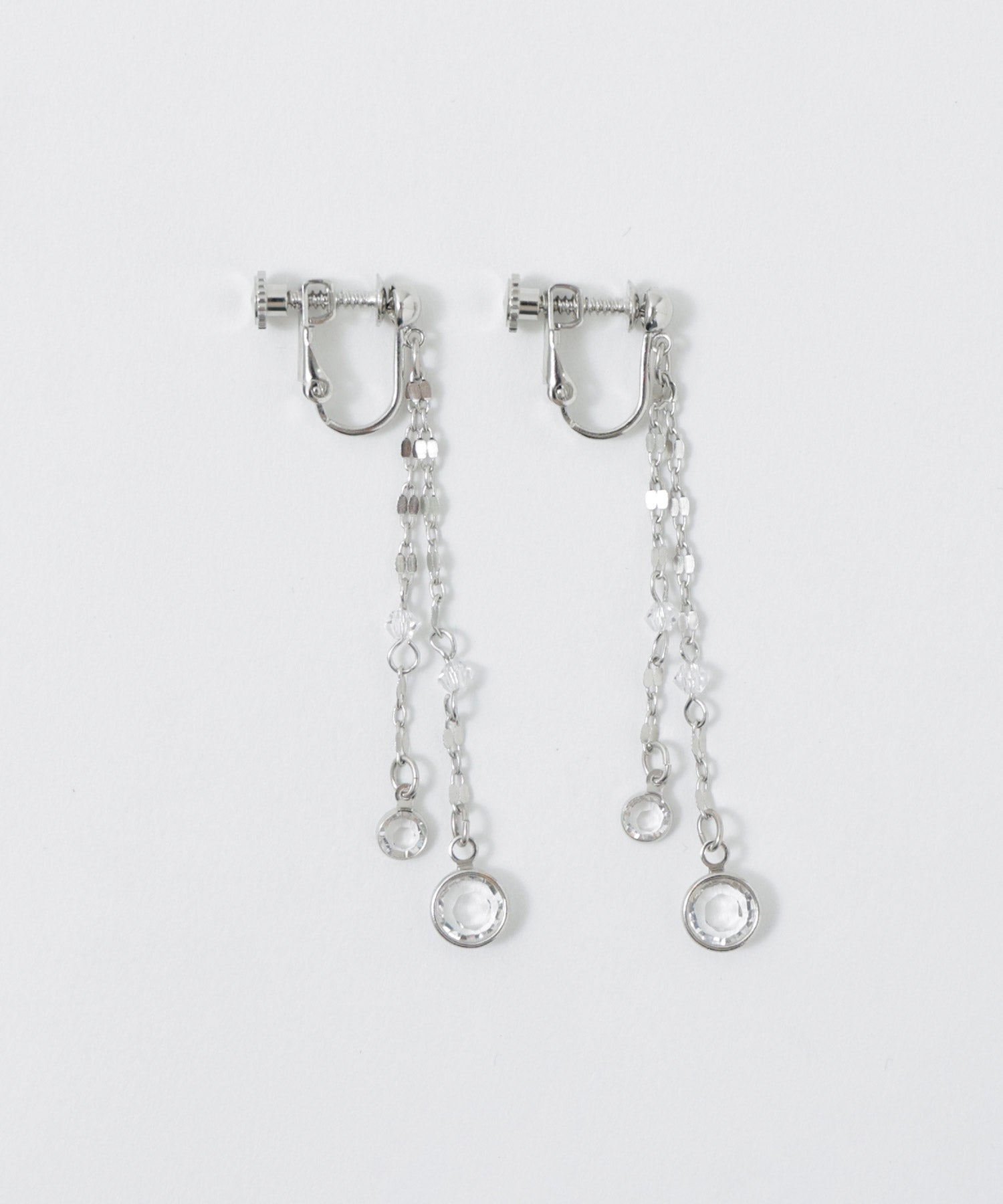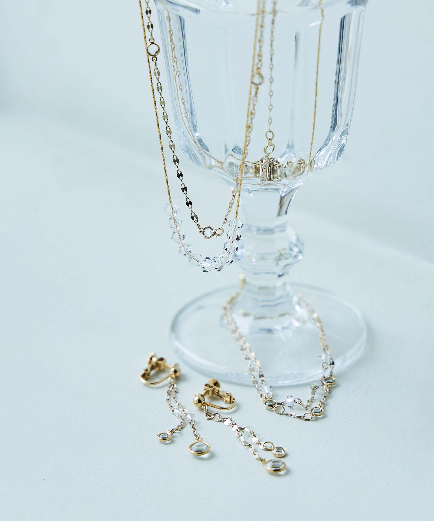 2連チェーンに異なるビジューを飾ったイヤリング。
