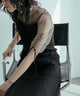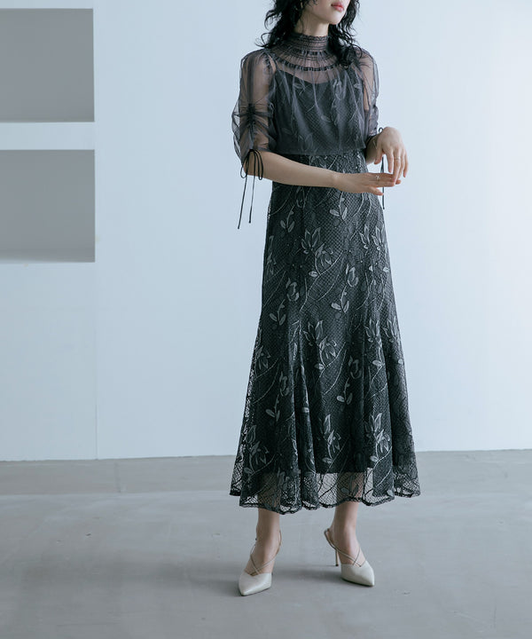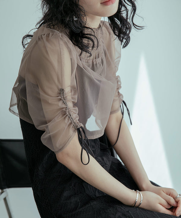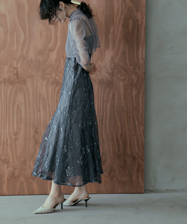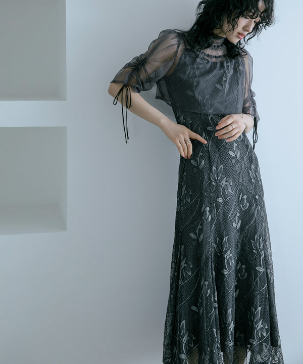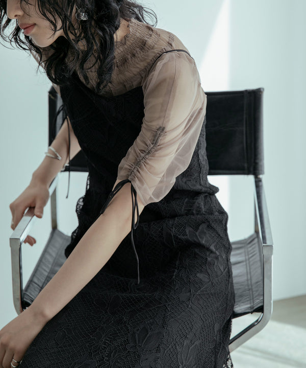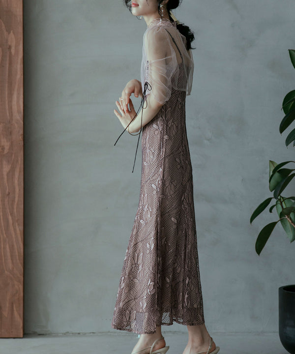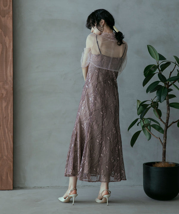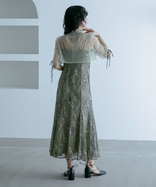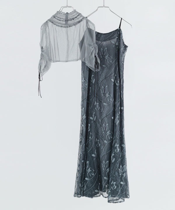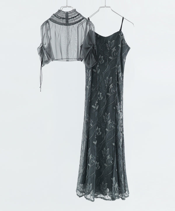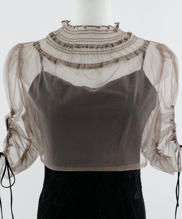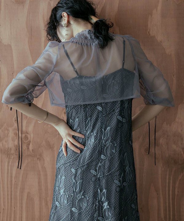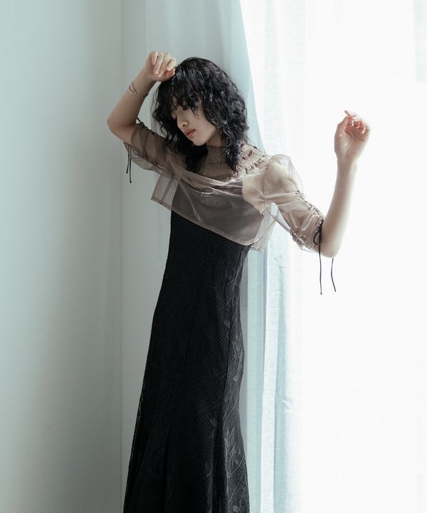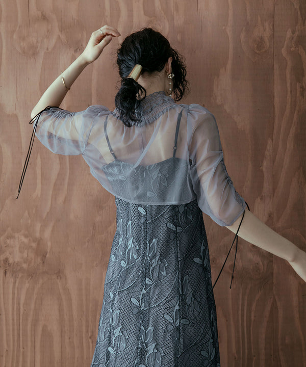 シアーなチュール素材のデザインボレロを組み合わせた