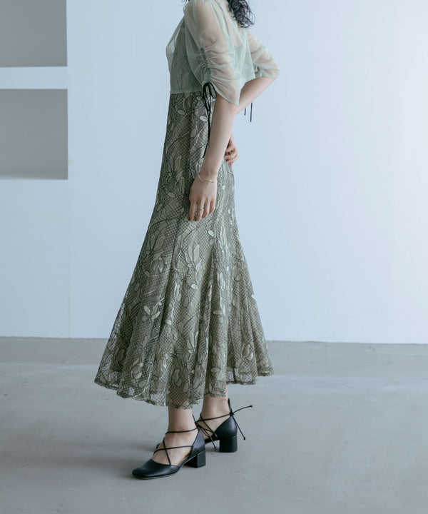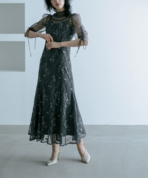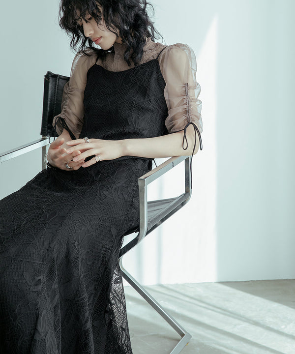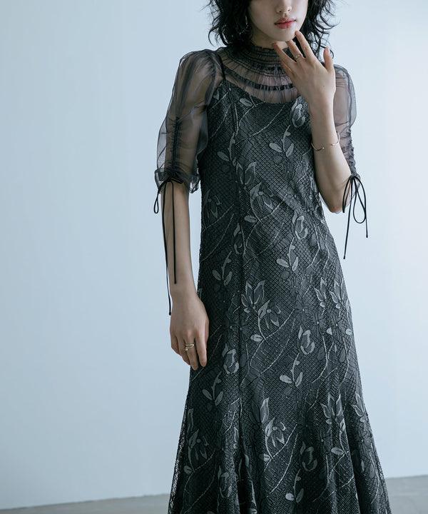 立体感あるレースのキャミソールドレスに
