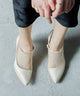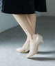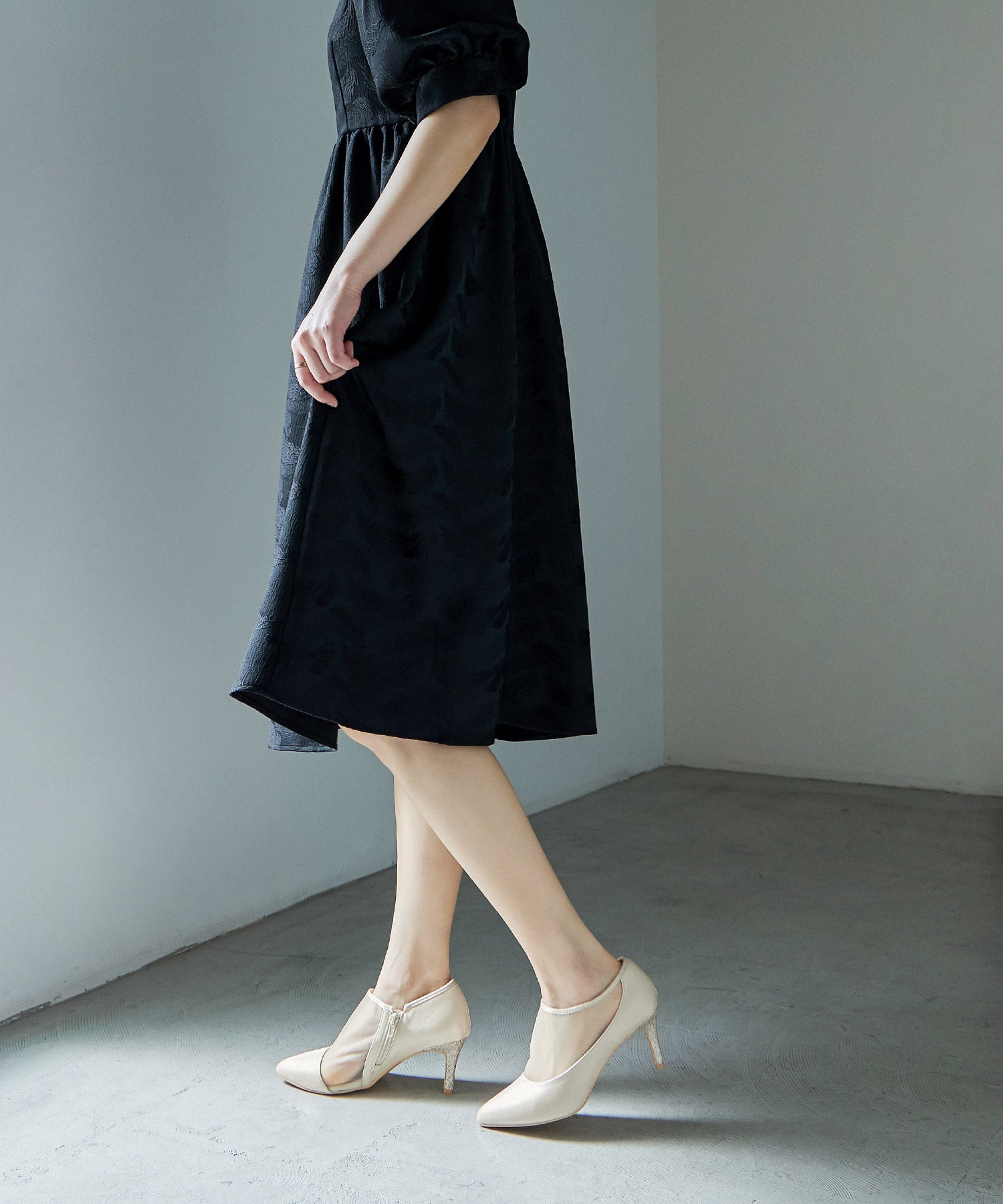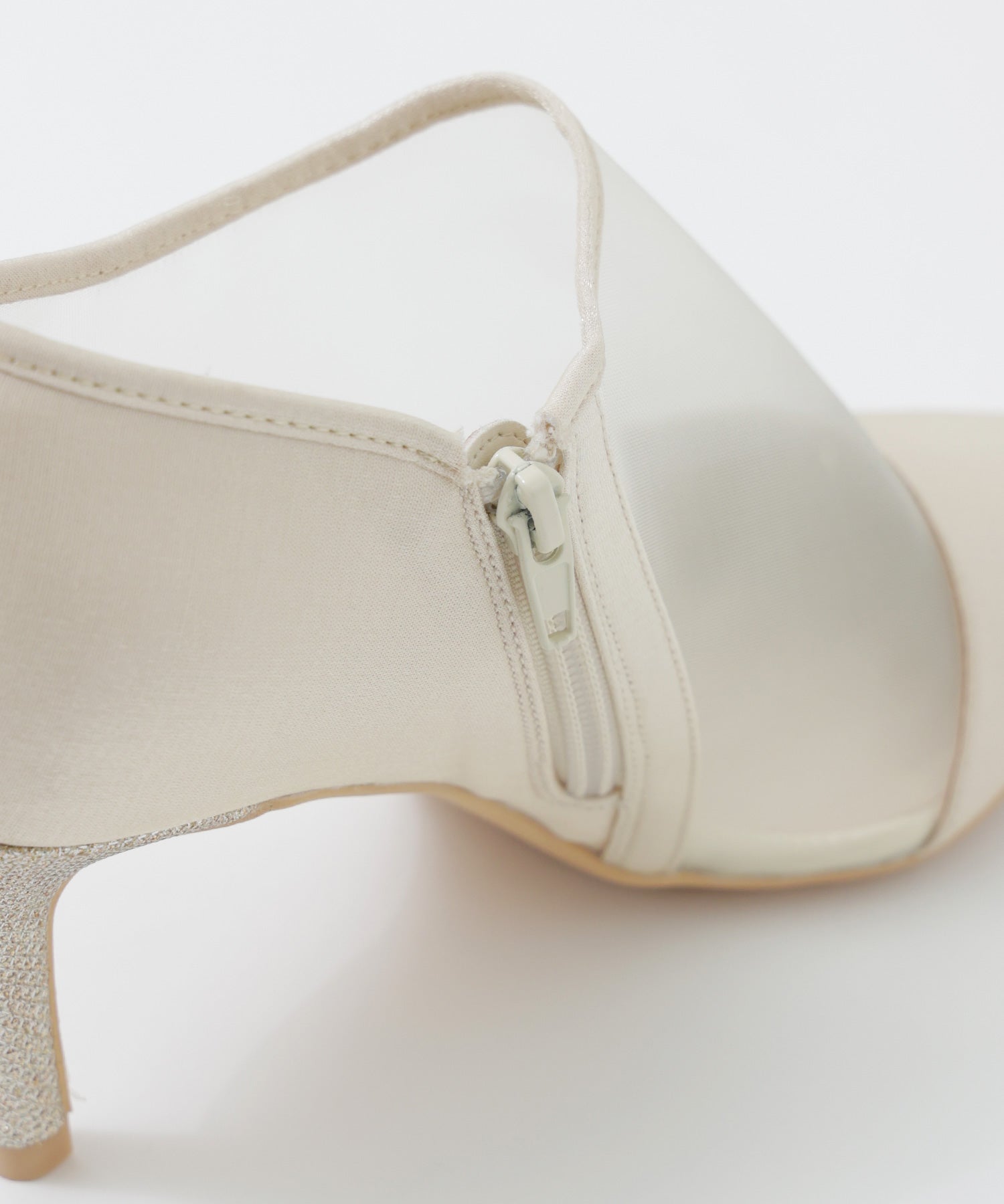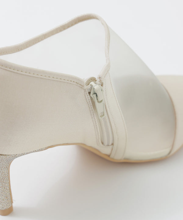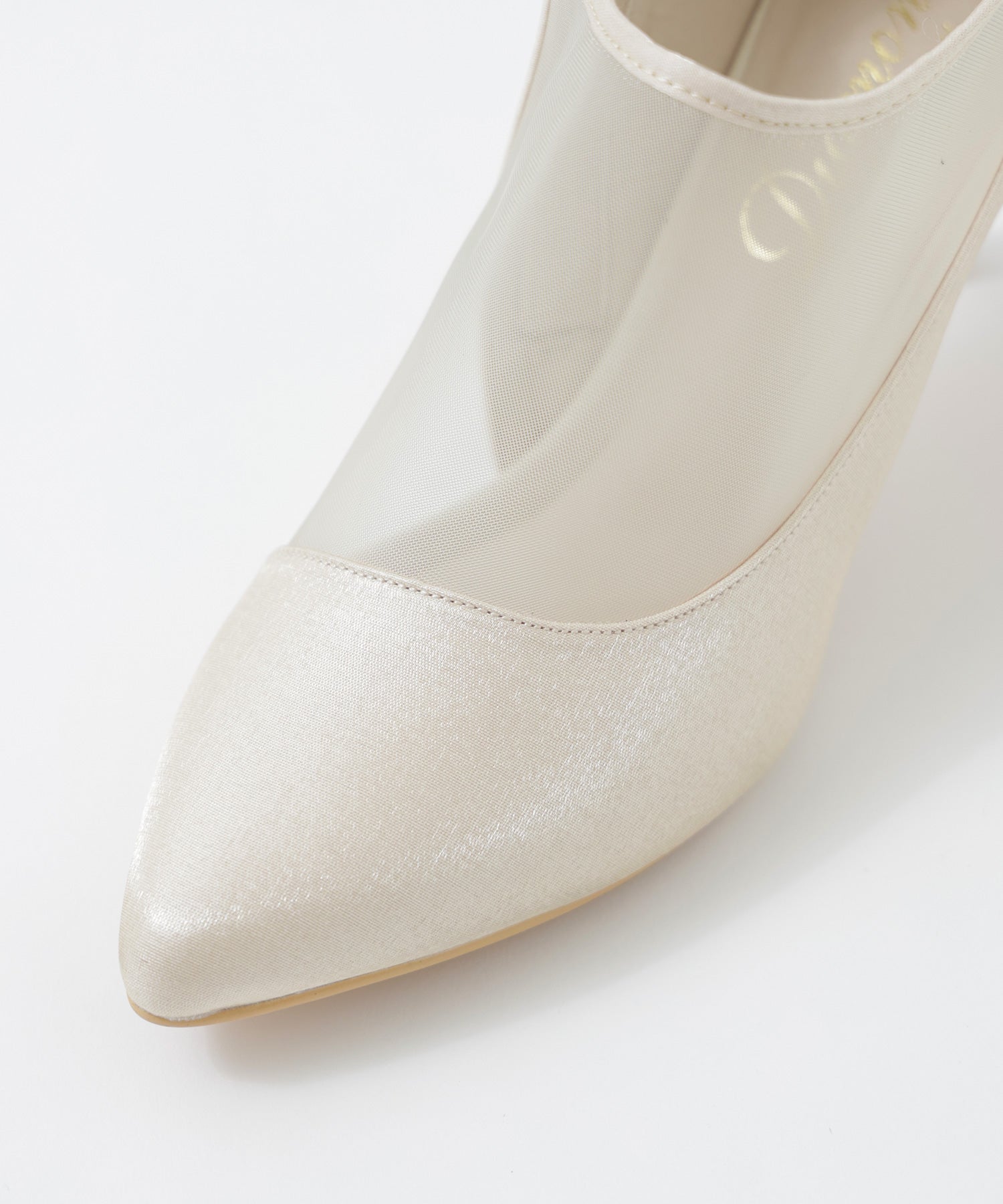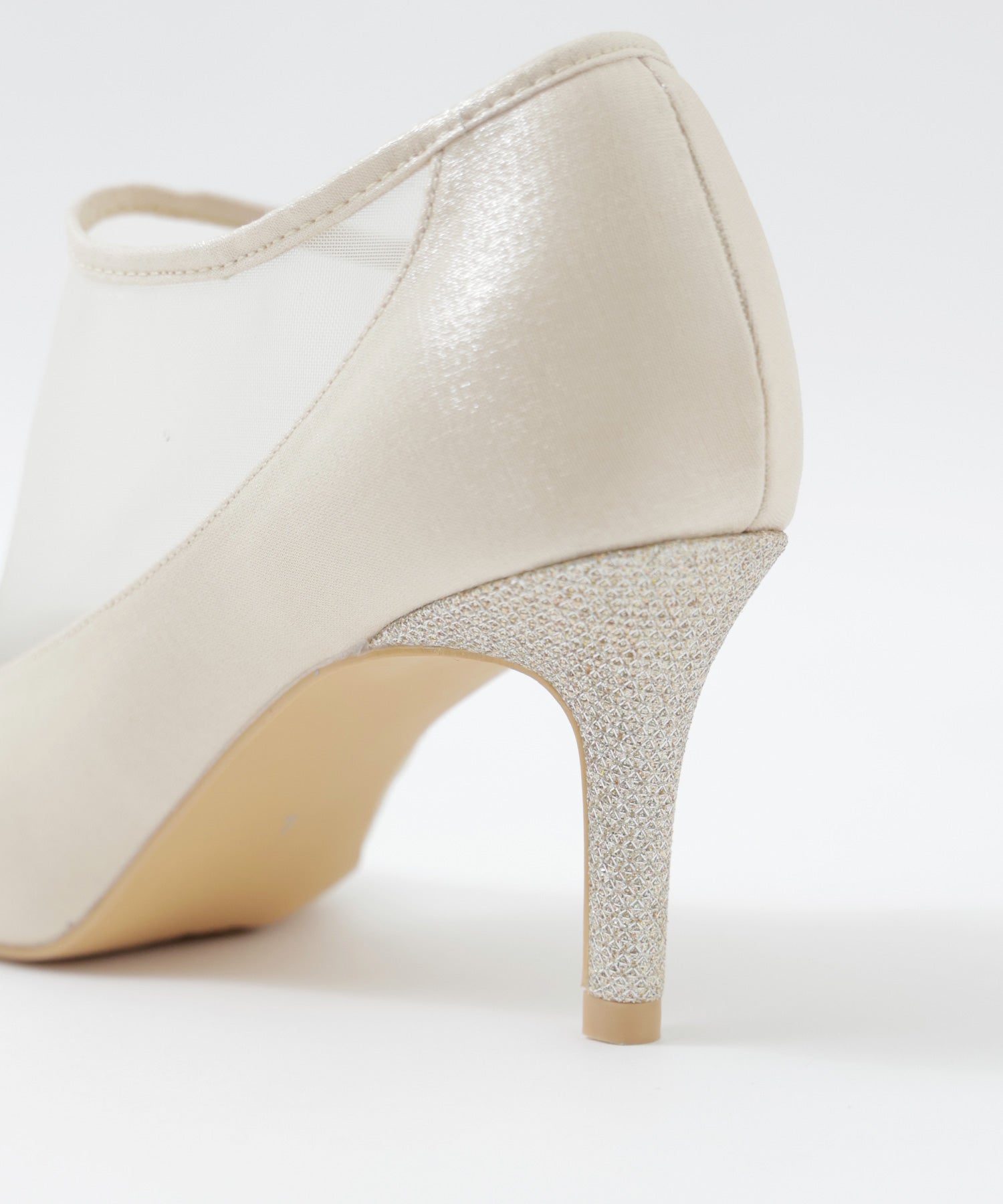 艶やかなサテンと透け感が美しいメッシュを組み合わせたブーティーパンプス。