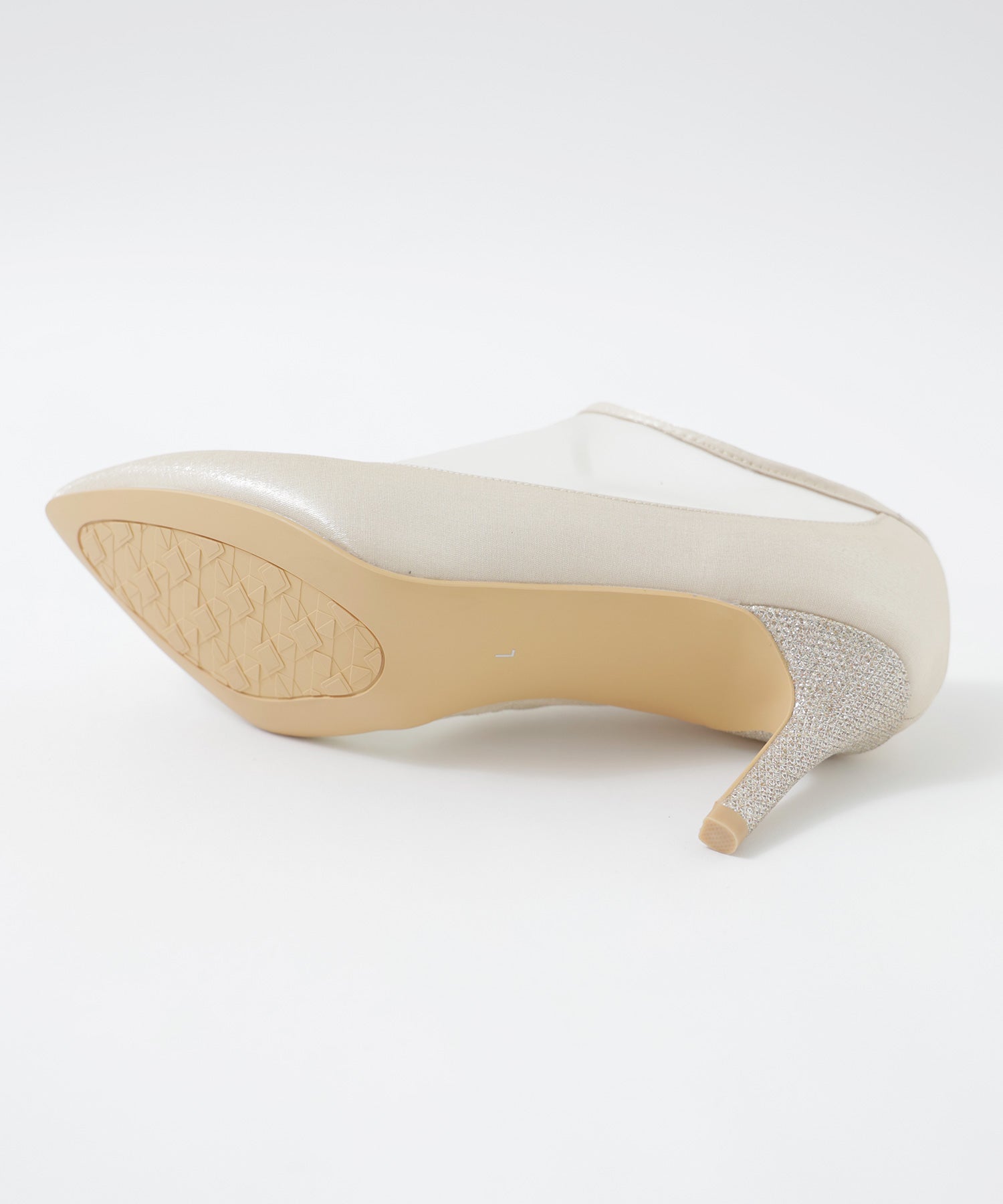 ヒール部分はキラキラと煌めく素材で、周りと差のつく一足に仕上げました。