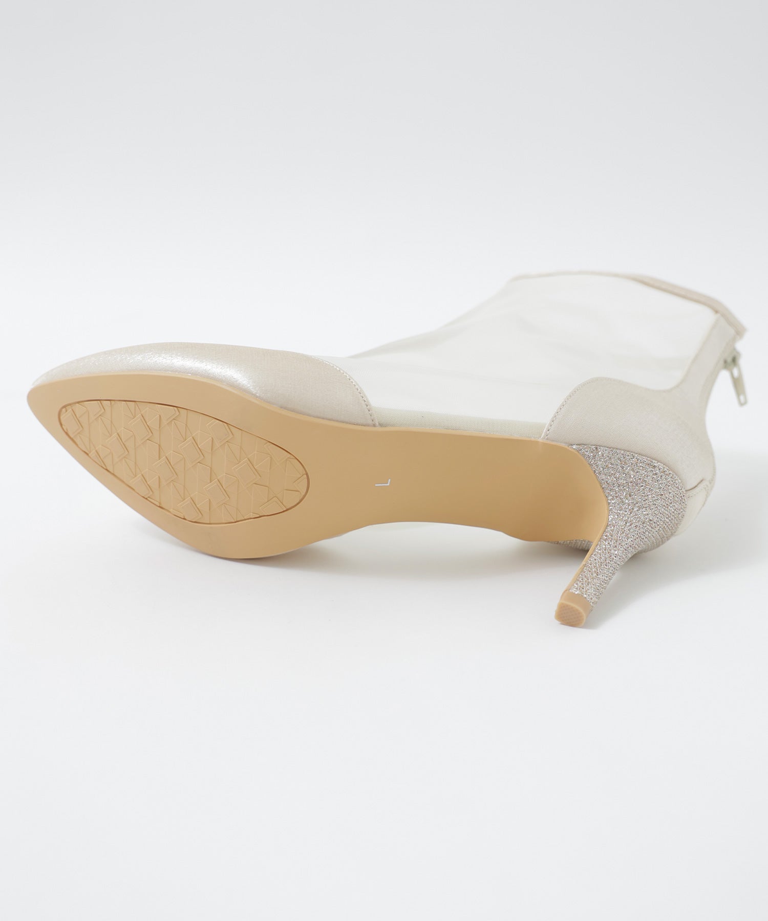 ヒール部分はキラキラと煌めく素材で、周りと差のつく一足に仕上げました。