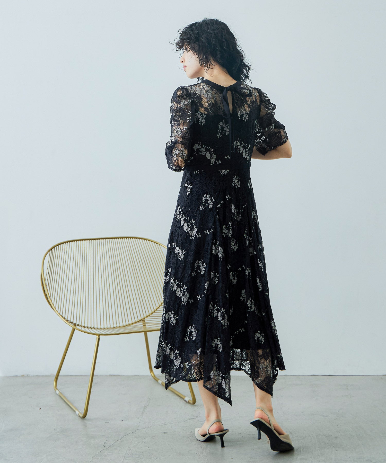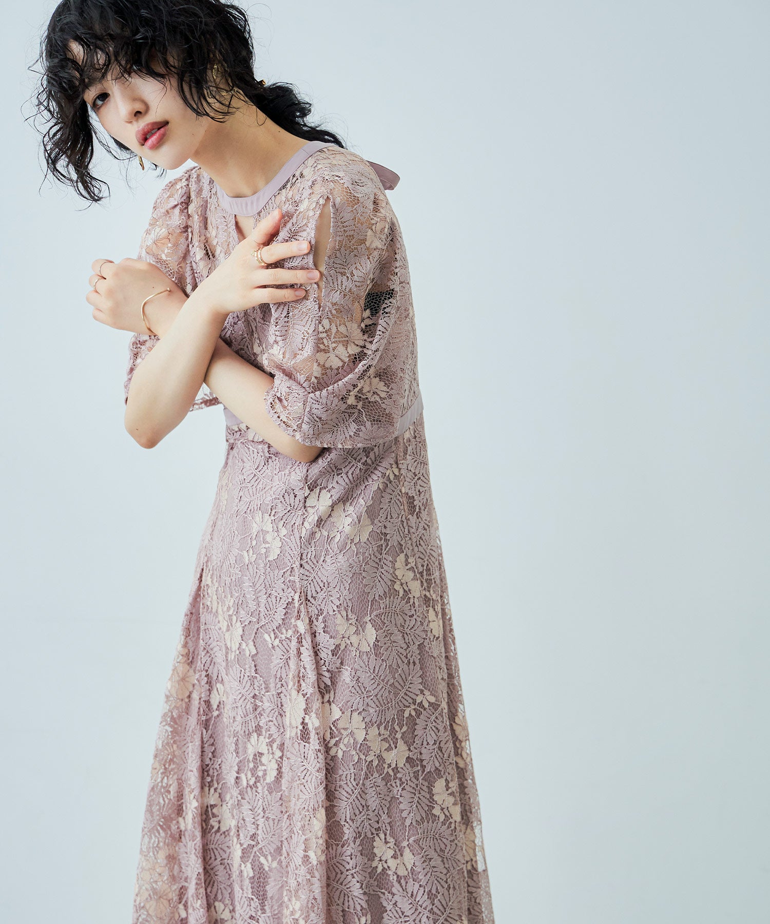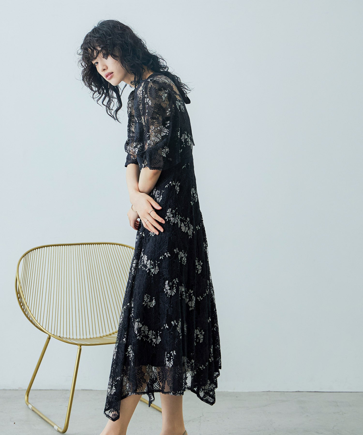 レトロな幾何学柄レースでヴィンテージライクなドレス。
