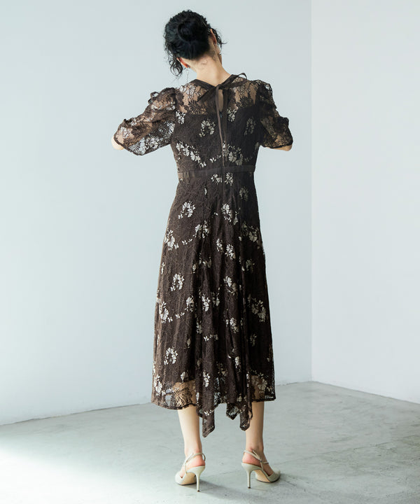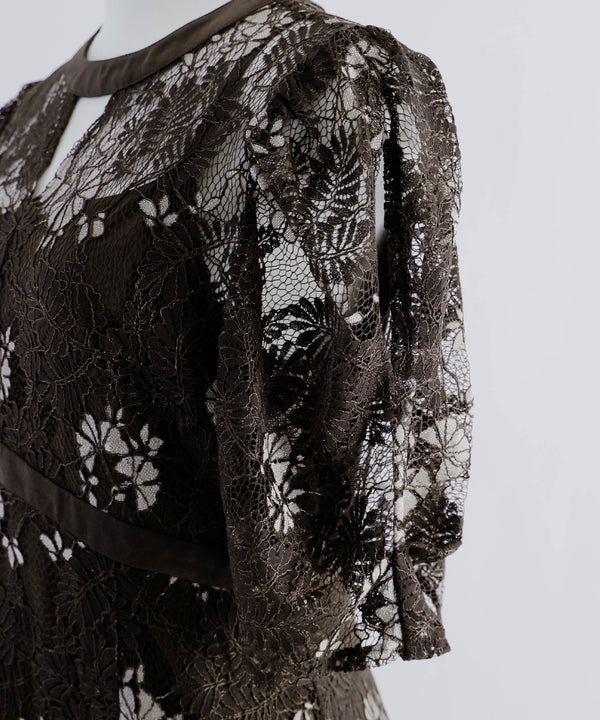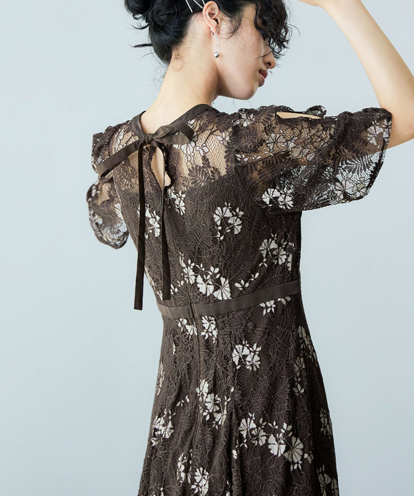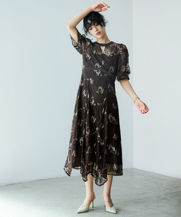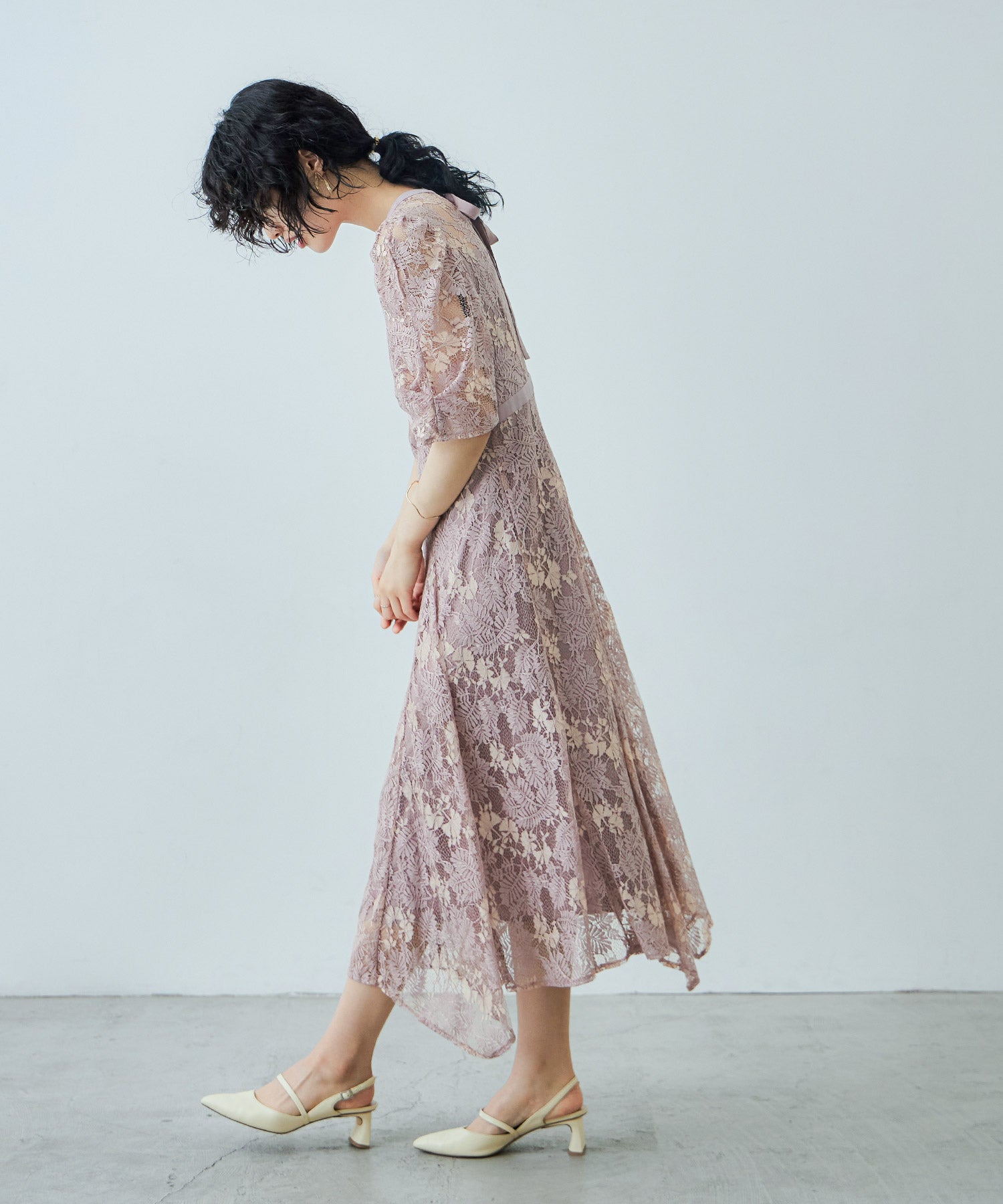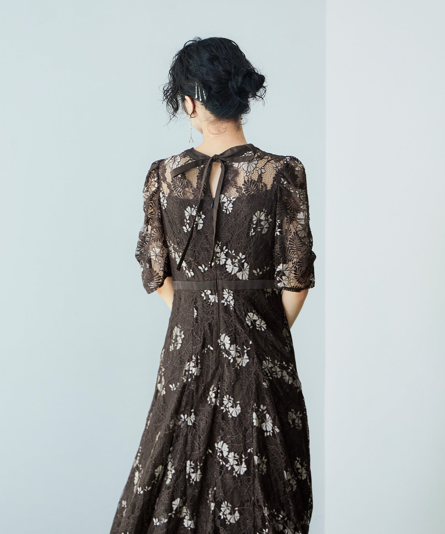 レトロな幾何学柄レースでヴィンテージライクなドレス。