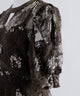 袖の切り込みで程よい肌見せとパワーショルダーで女性らしいシルエットに。