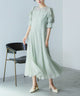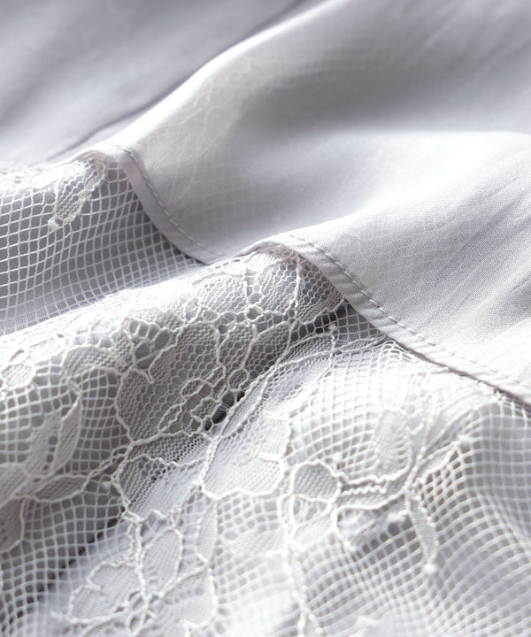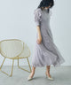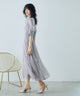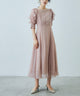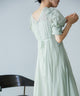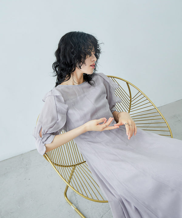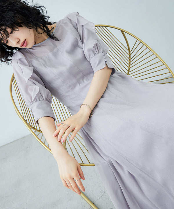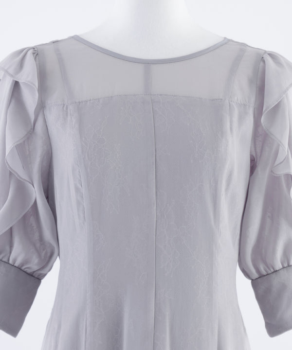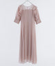 レース生地にさりげない煌めきを放つシフォン生地を重ねたロングドレス。
