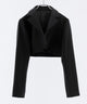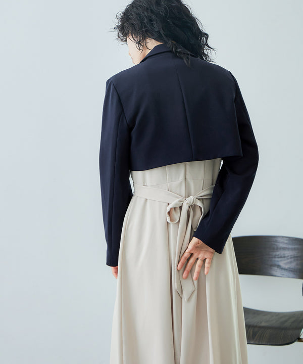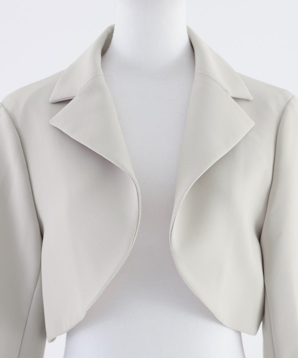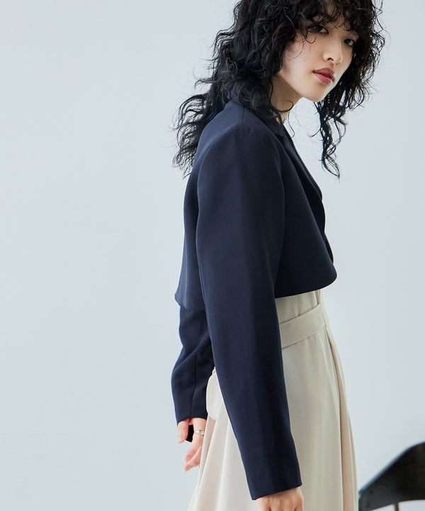 シャープなラインを作るシンプルなショート丈ジャケット。