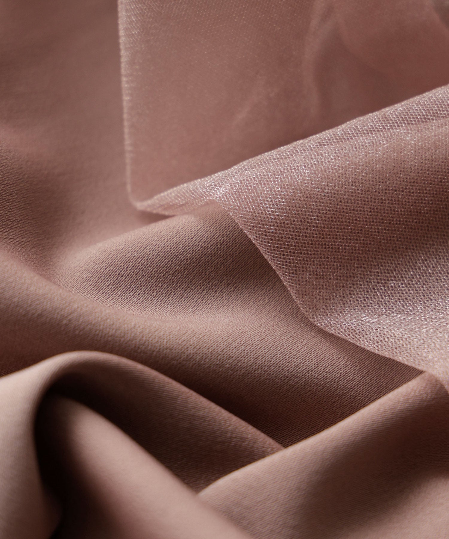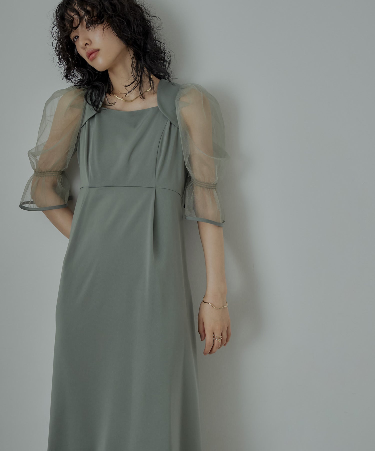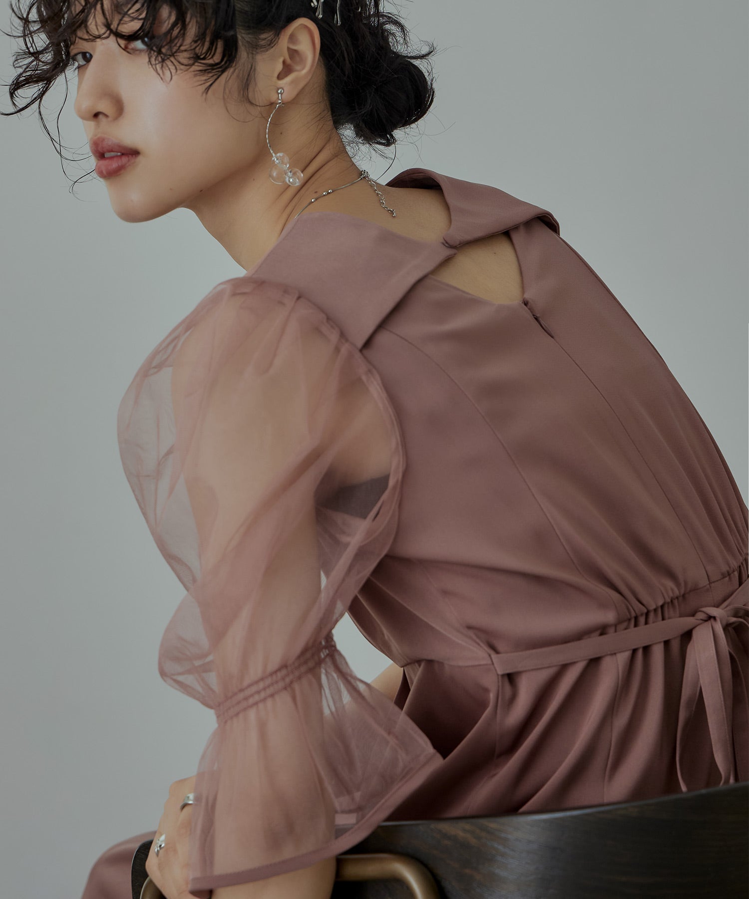 ボリューム感を持たせたシアーなキャンディスリーブが女性らしいエッセンスに。