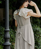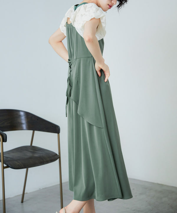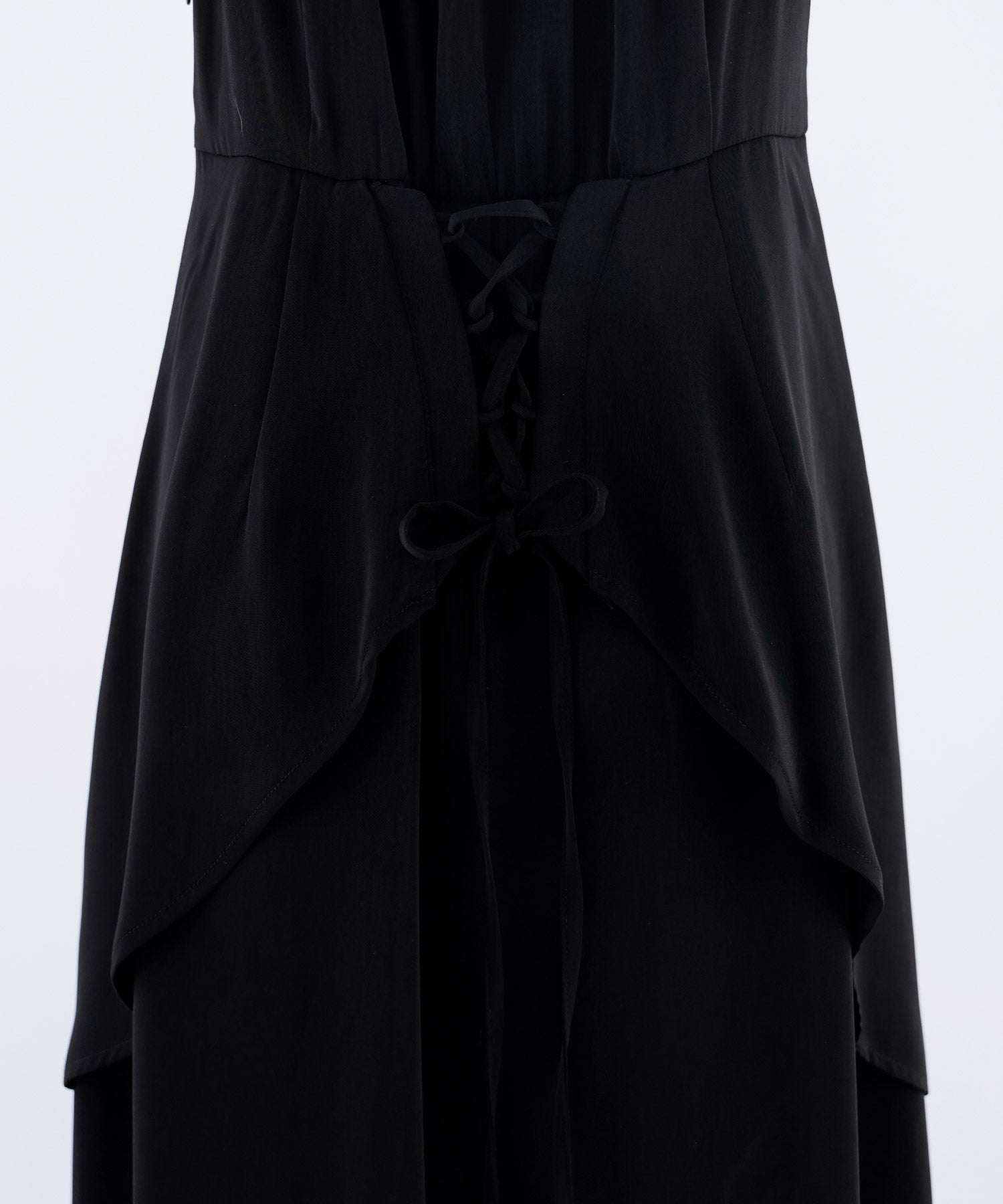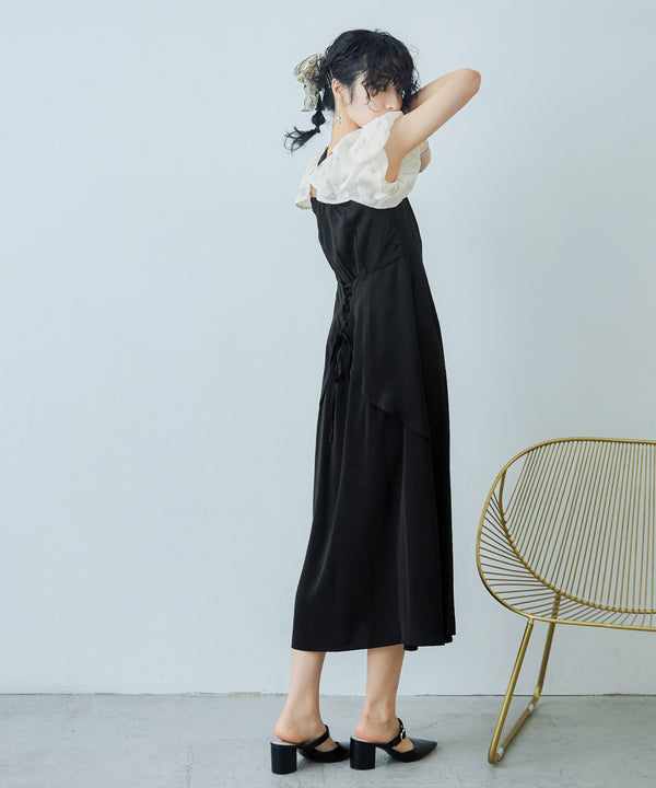 ウエストは生地を折り返して編み上げリボンでフェミニンさをプラスしました。
