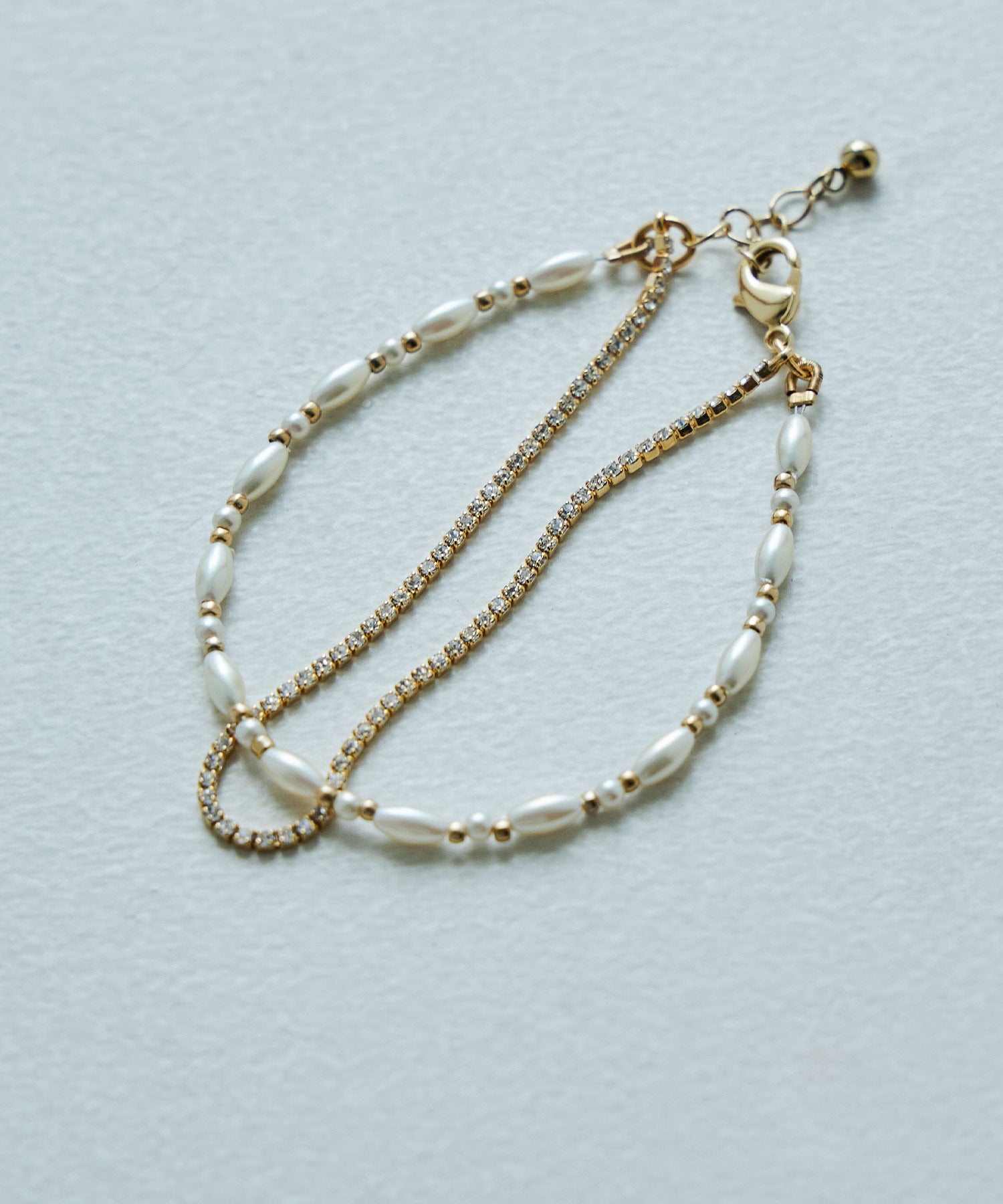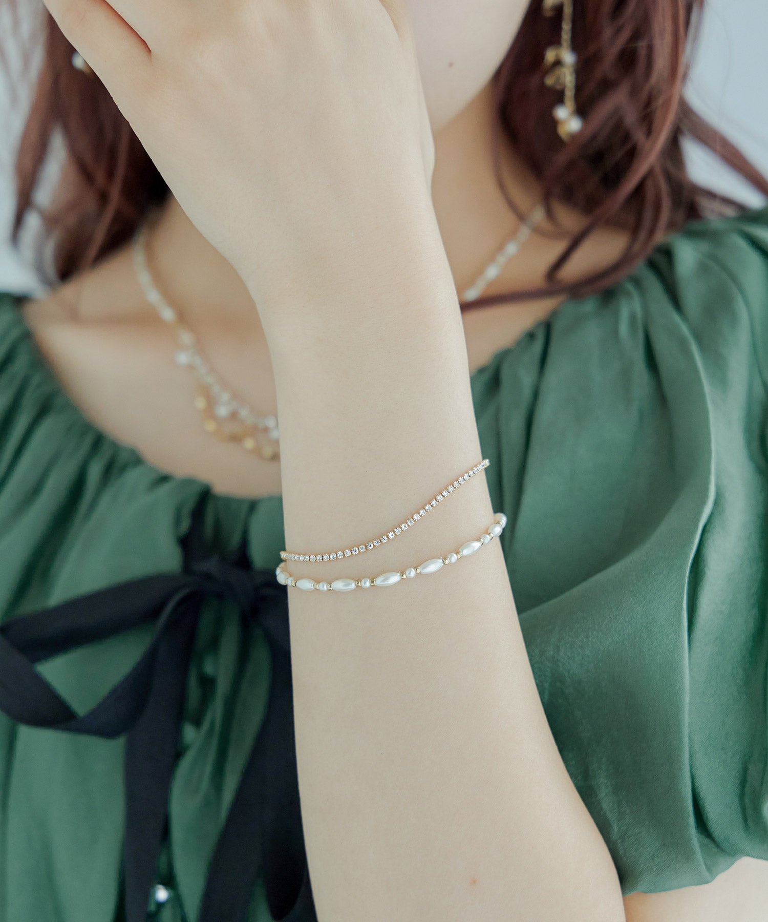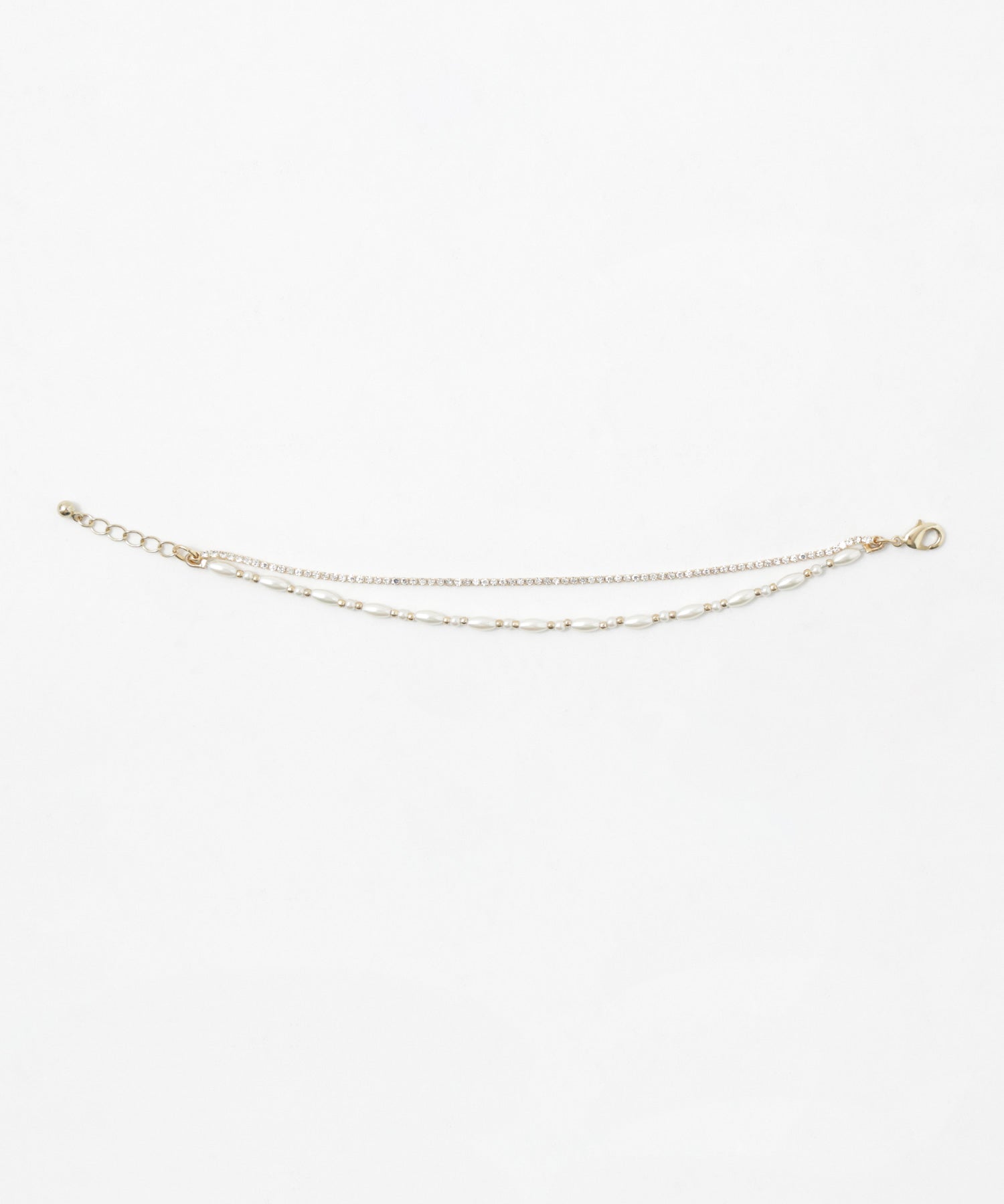 スリムなパールと煌めくラインストーンの上品な2連ブレスレット。
