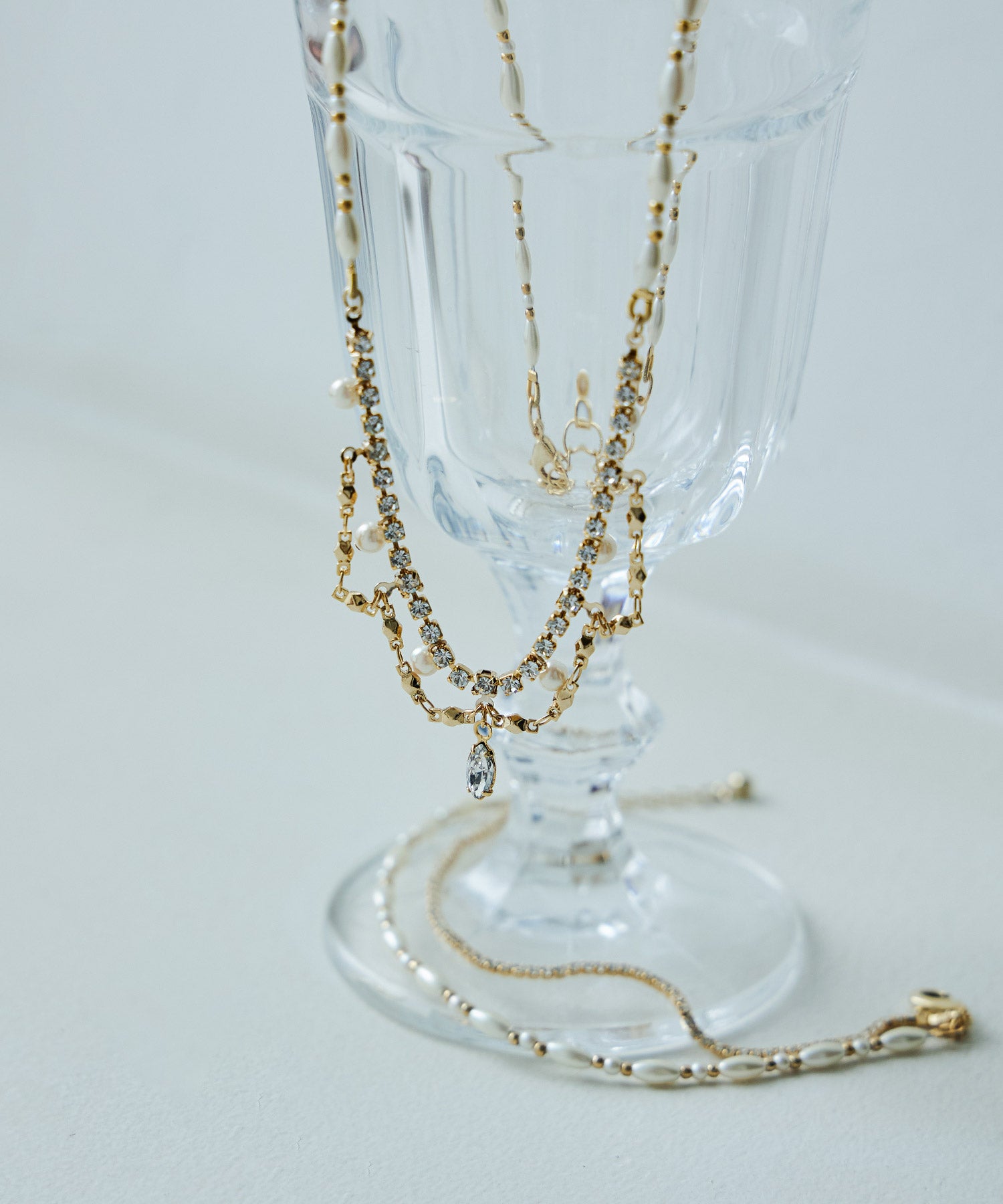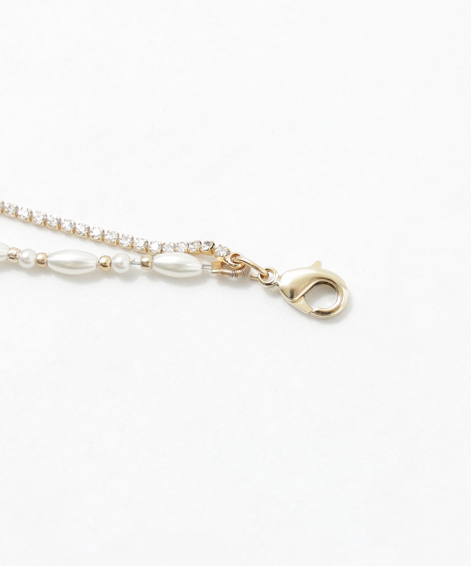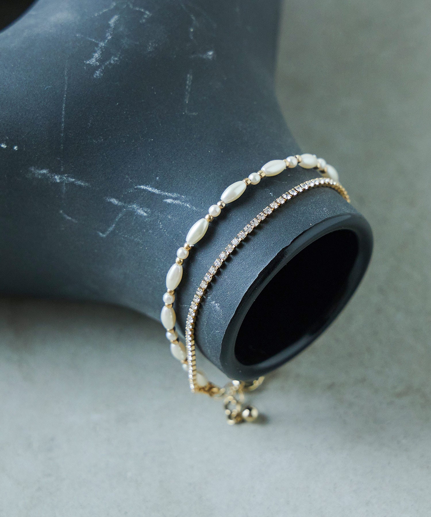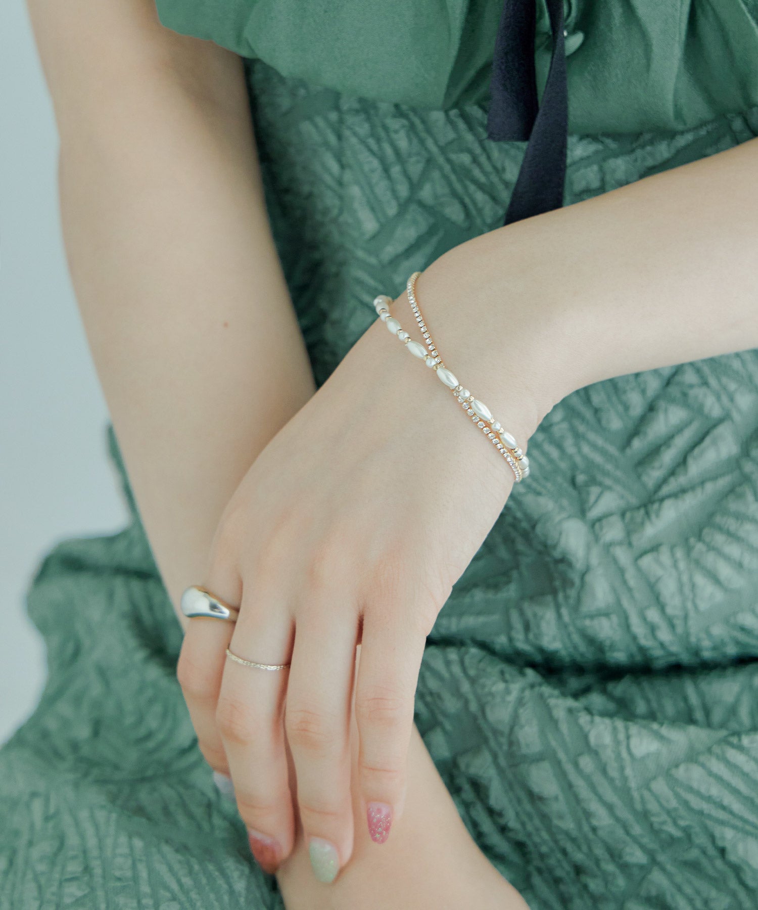 スリムなパールと煌めくラインストーンの上品な2連ブレスレット。