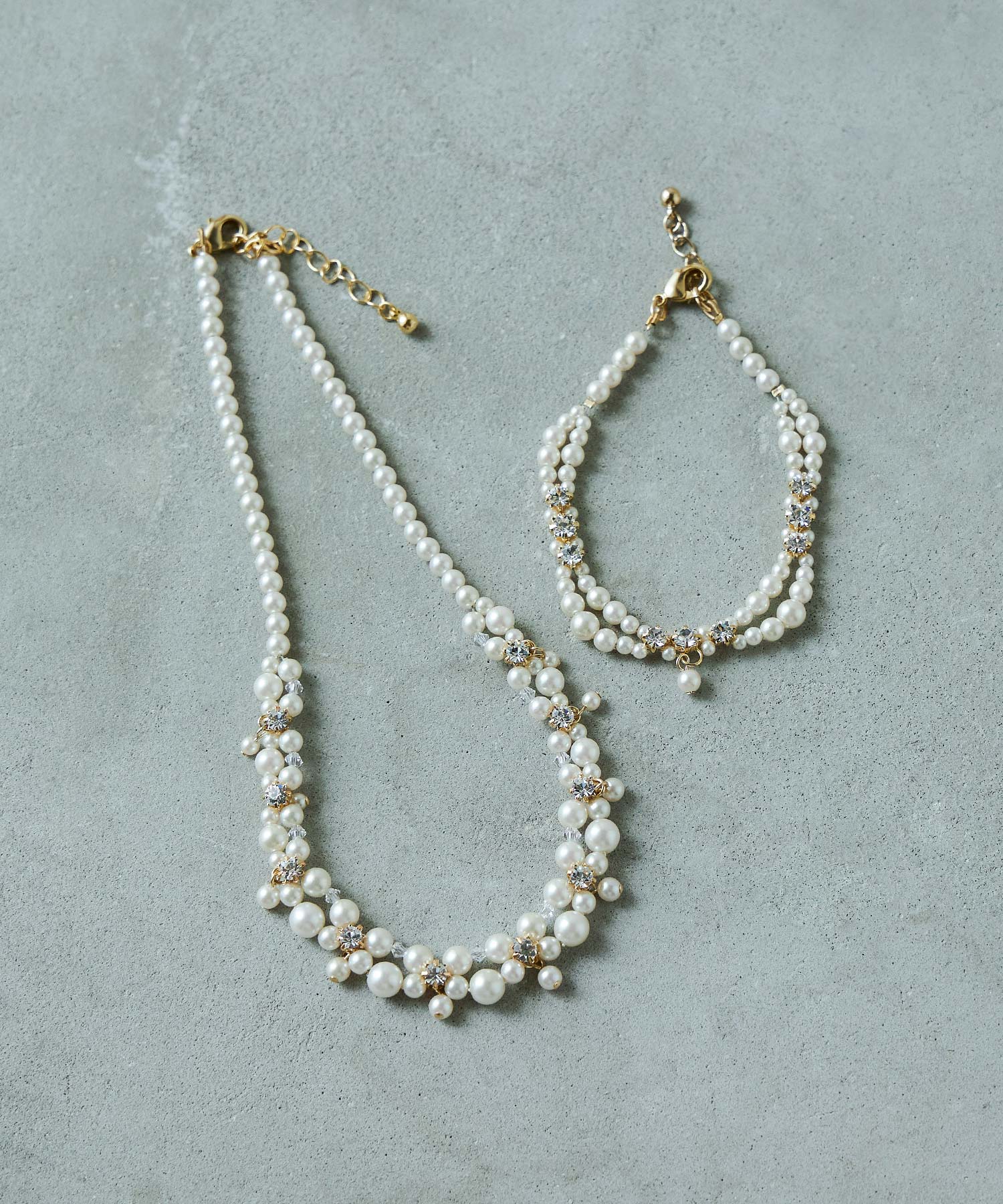 煌めくストーンと品のあるパールが上品な印象に導きます。