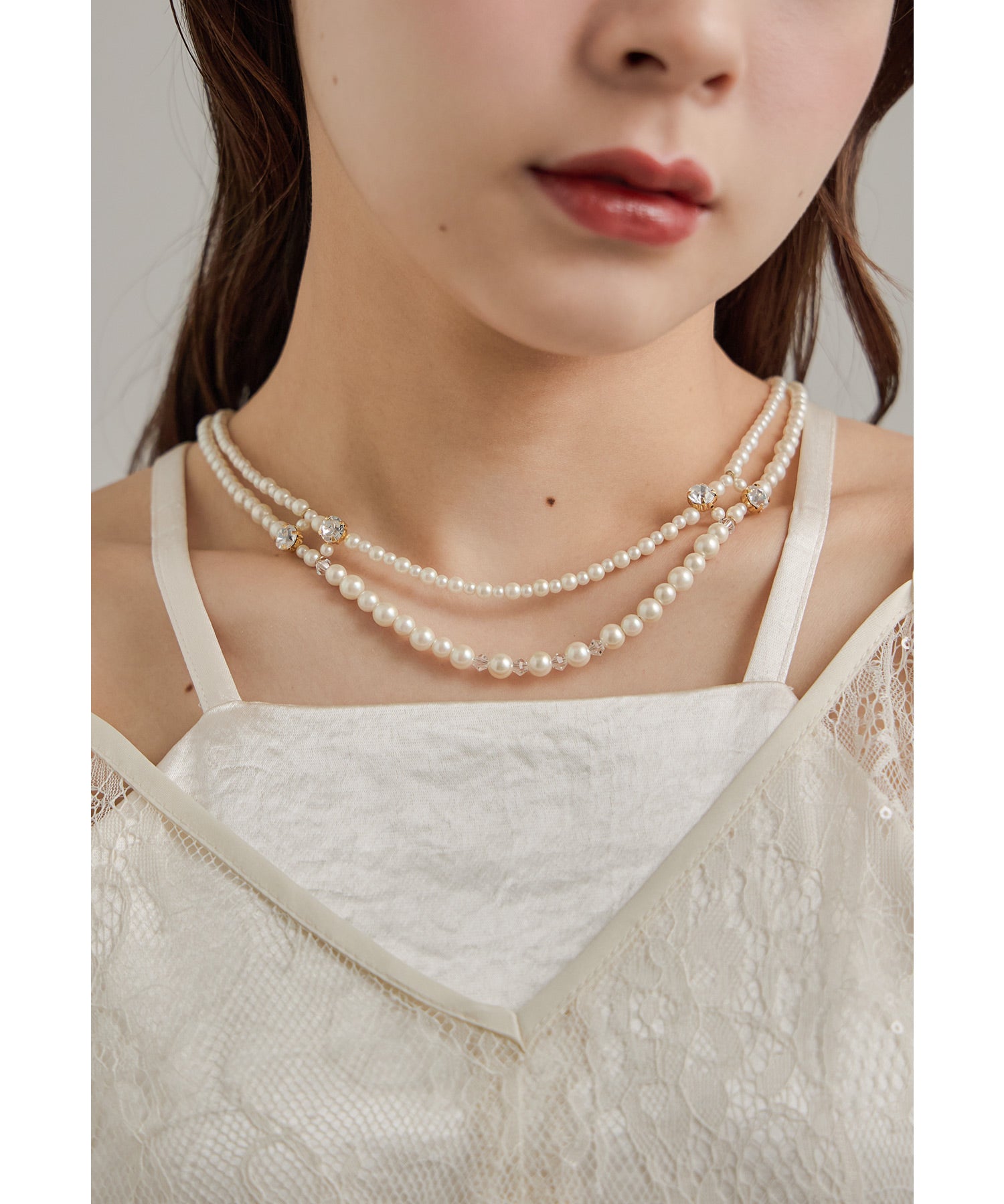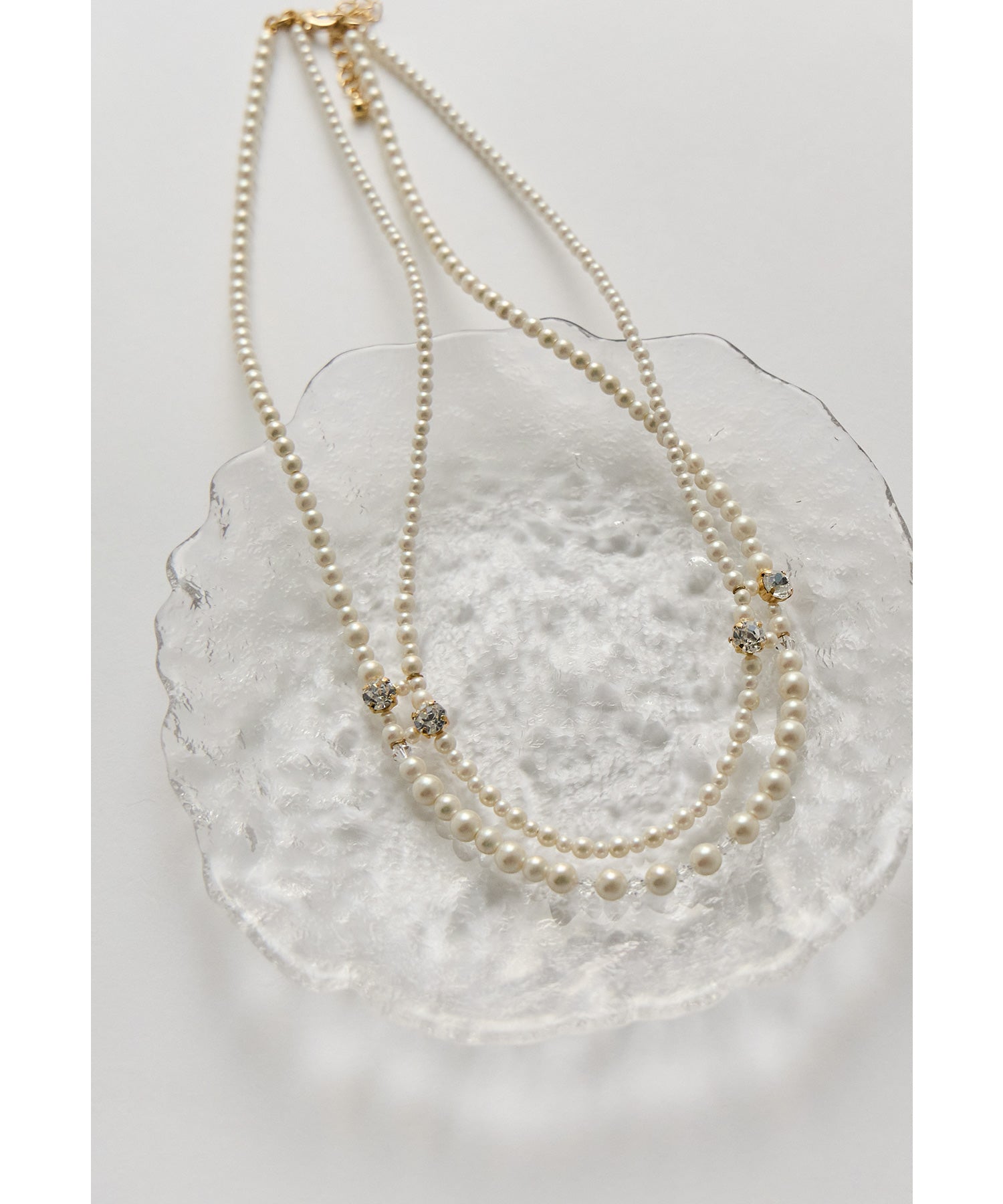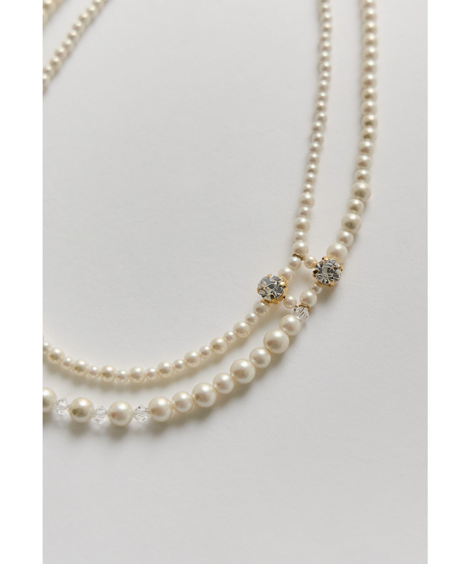 上品に輝くパールとクリアビーズを組み合わせたネックレス。