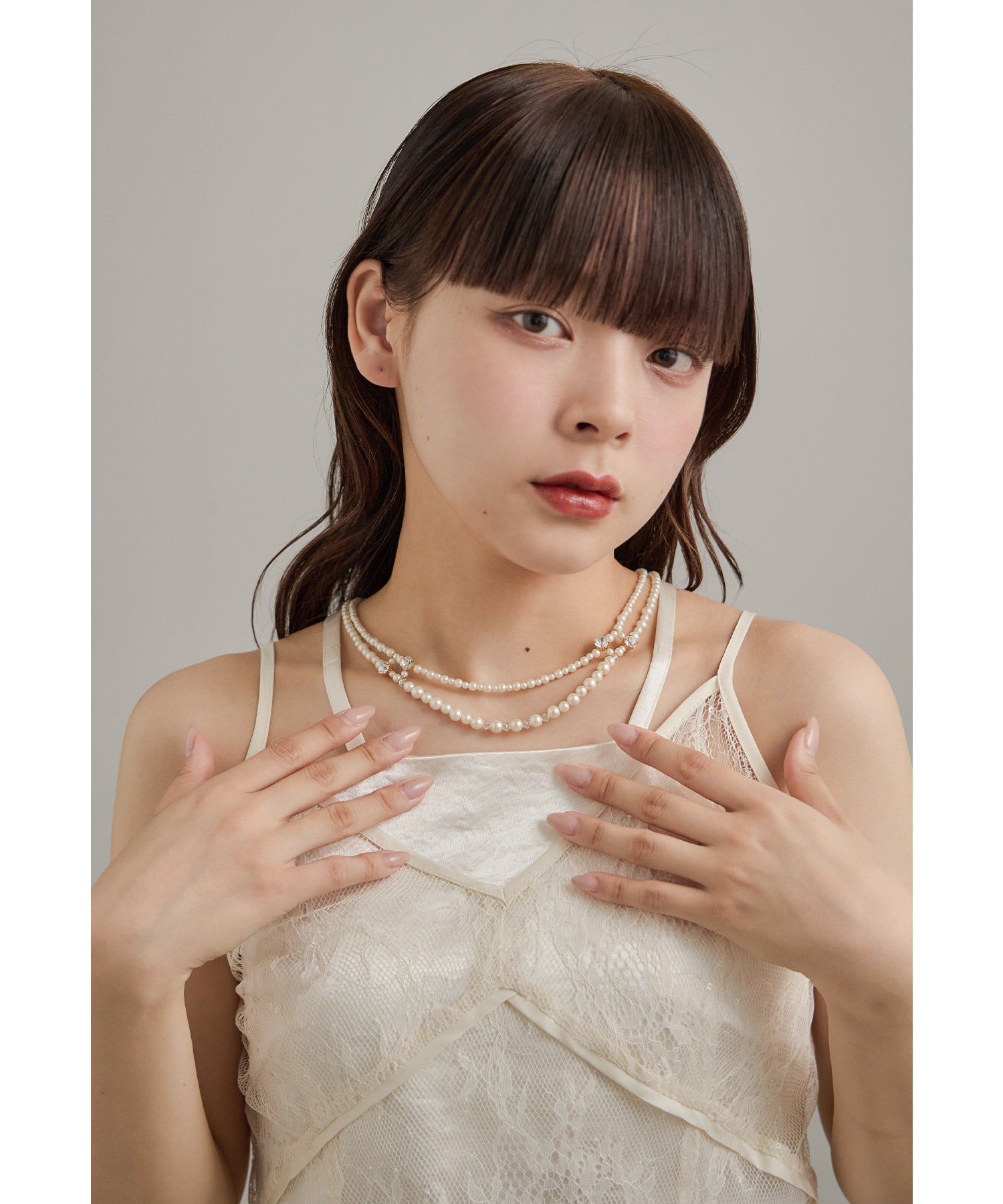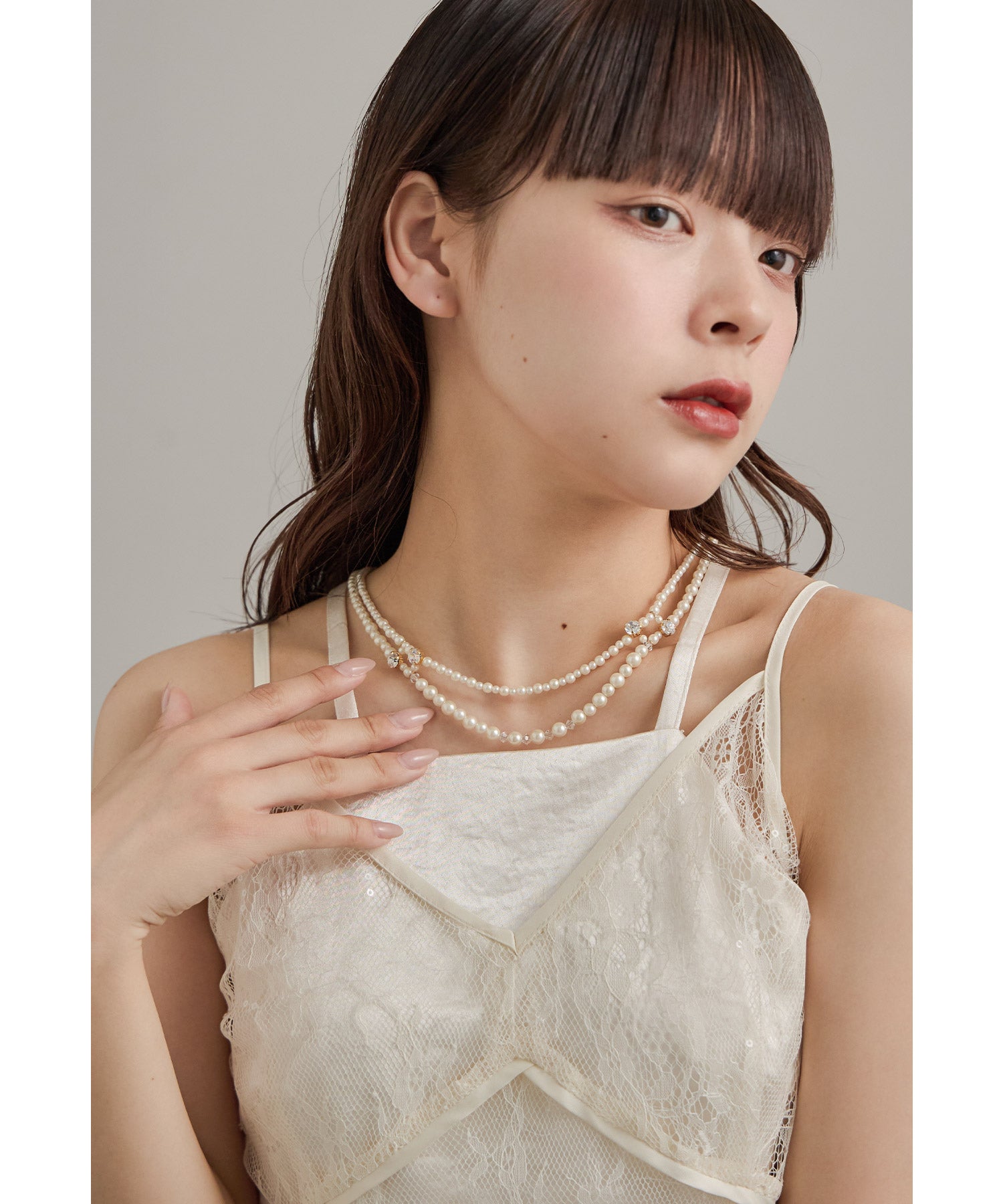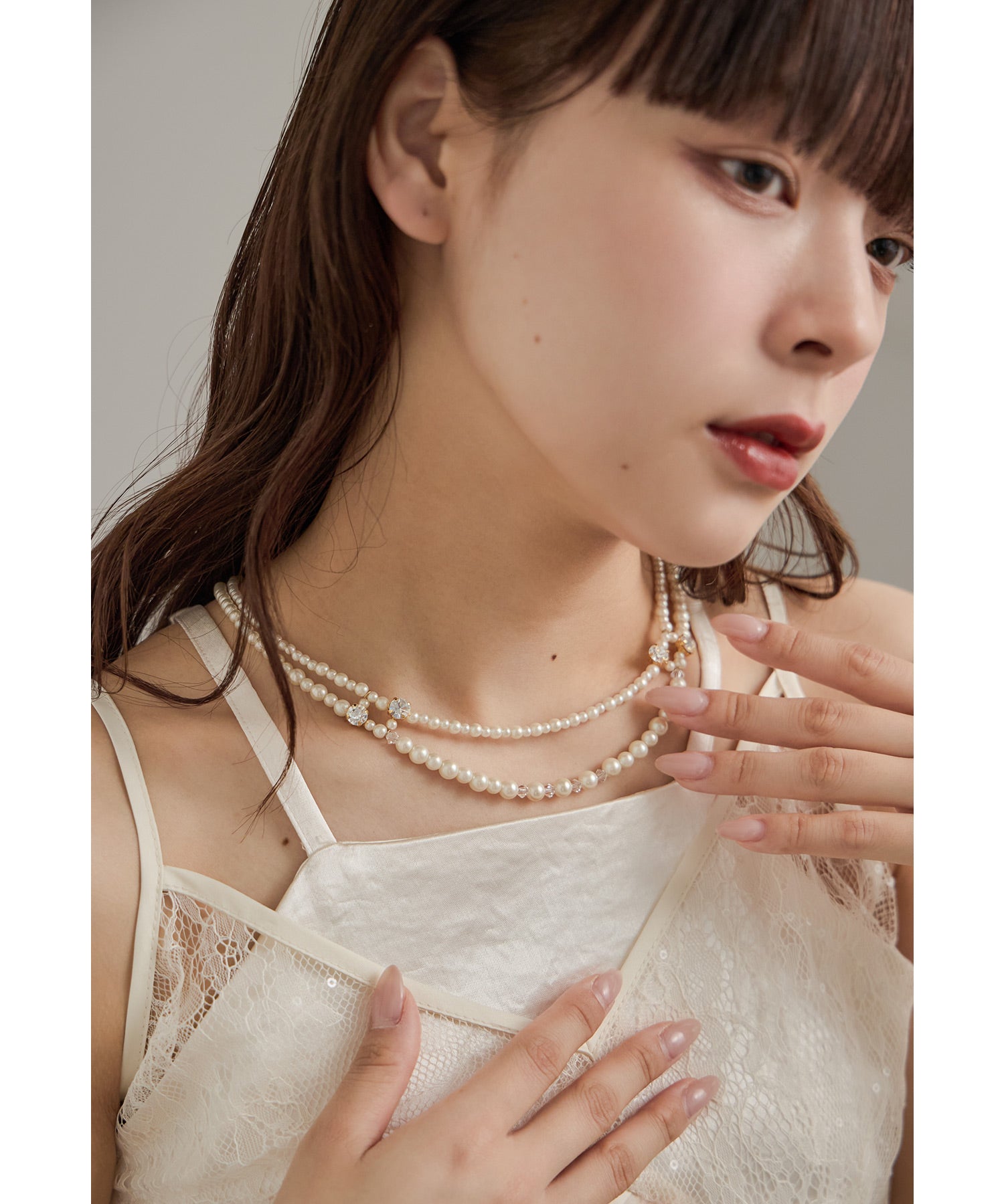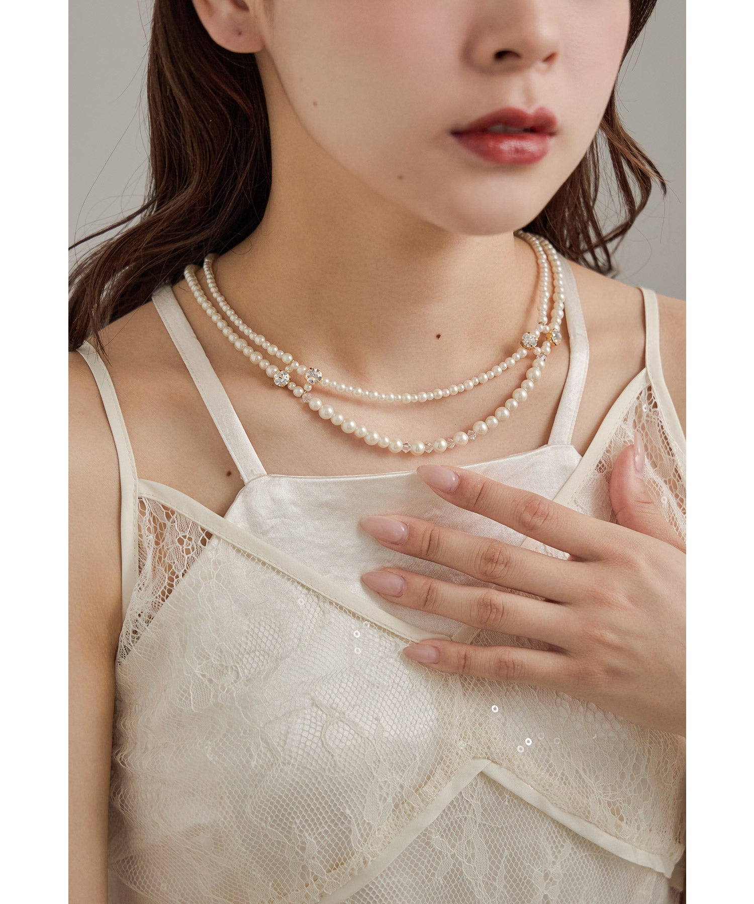 上品に輝くパールとクリアビーズを組み合わせたネックレス。