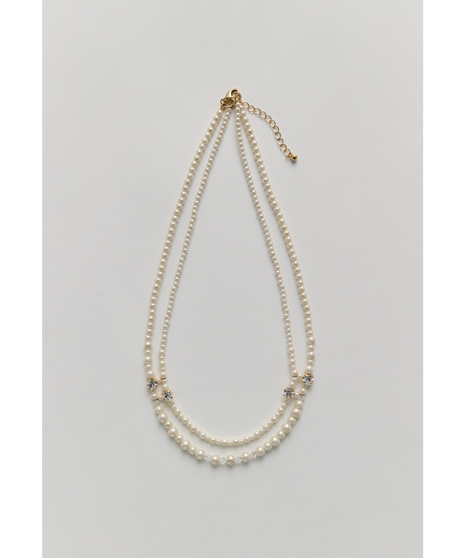 Rname パールビジュー二連ネックレス レディース アクセサリー ビーズ ロング 2連 ジュエリー ゴールド ホワイト 上品 普段使い デイリー フォーマル パーティー 結婚式 セレモニー 入学式 卒業式 成人式 謝恩会 二次会 お呼ばれ 披露宴 オケージョン プレゼント