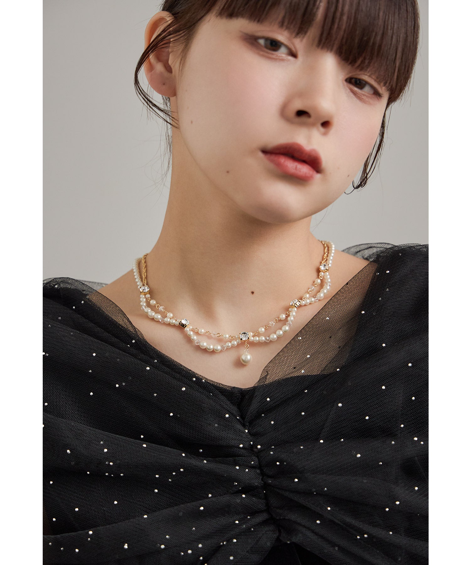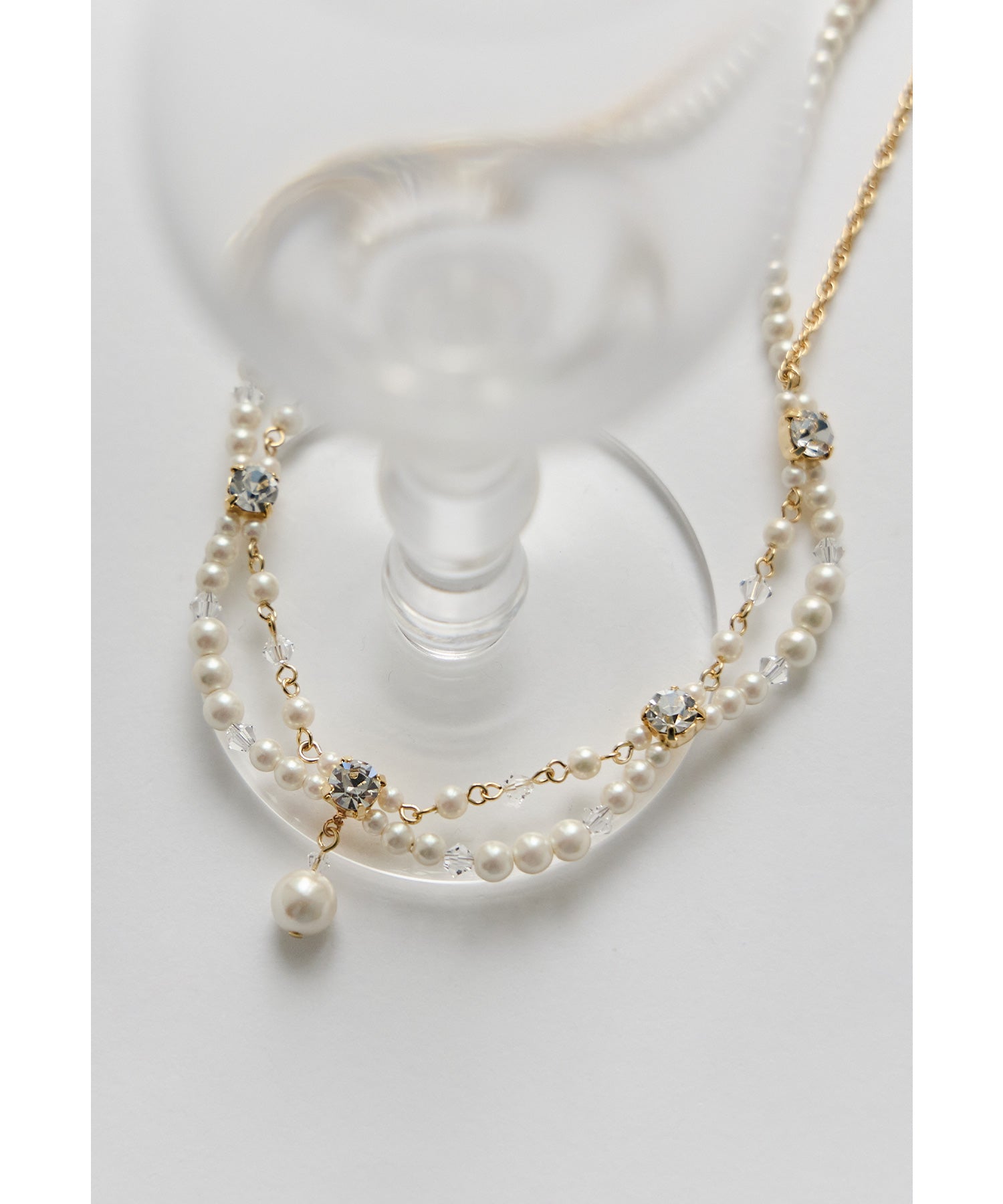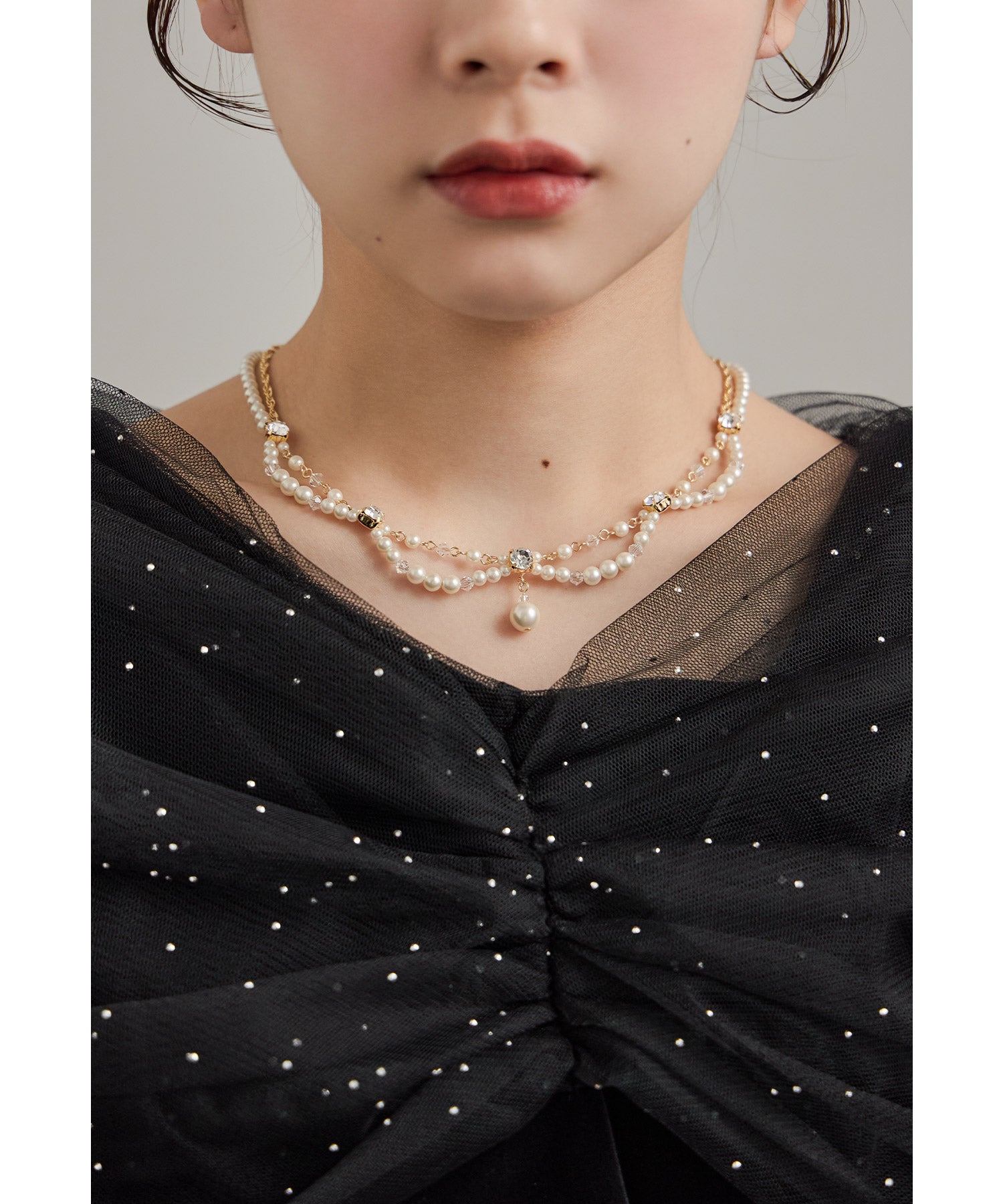 Rname パールスカラップネックレス レディース アクセサリー 二連 ショート ビジュー ビーズ チェーン ジュエリー ゴールド 上品 普段使い デイリー フォーマル パーティー 結婚式 セレモニー 入学式 卒業式 成人式 謝恩会 二次会 お呼ばれ 披露宴 オケージョン プレゼント