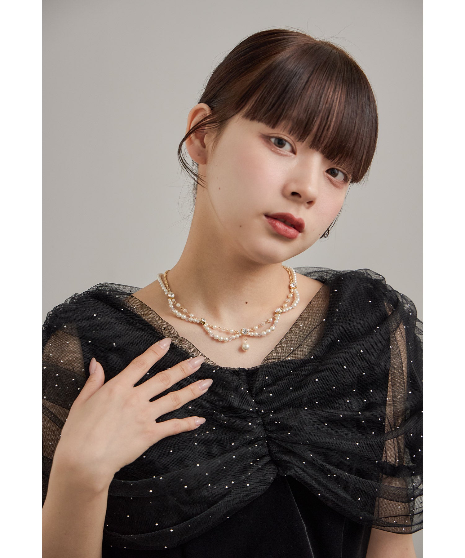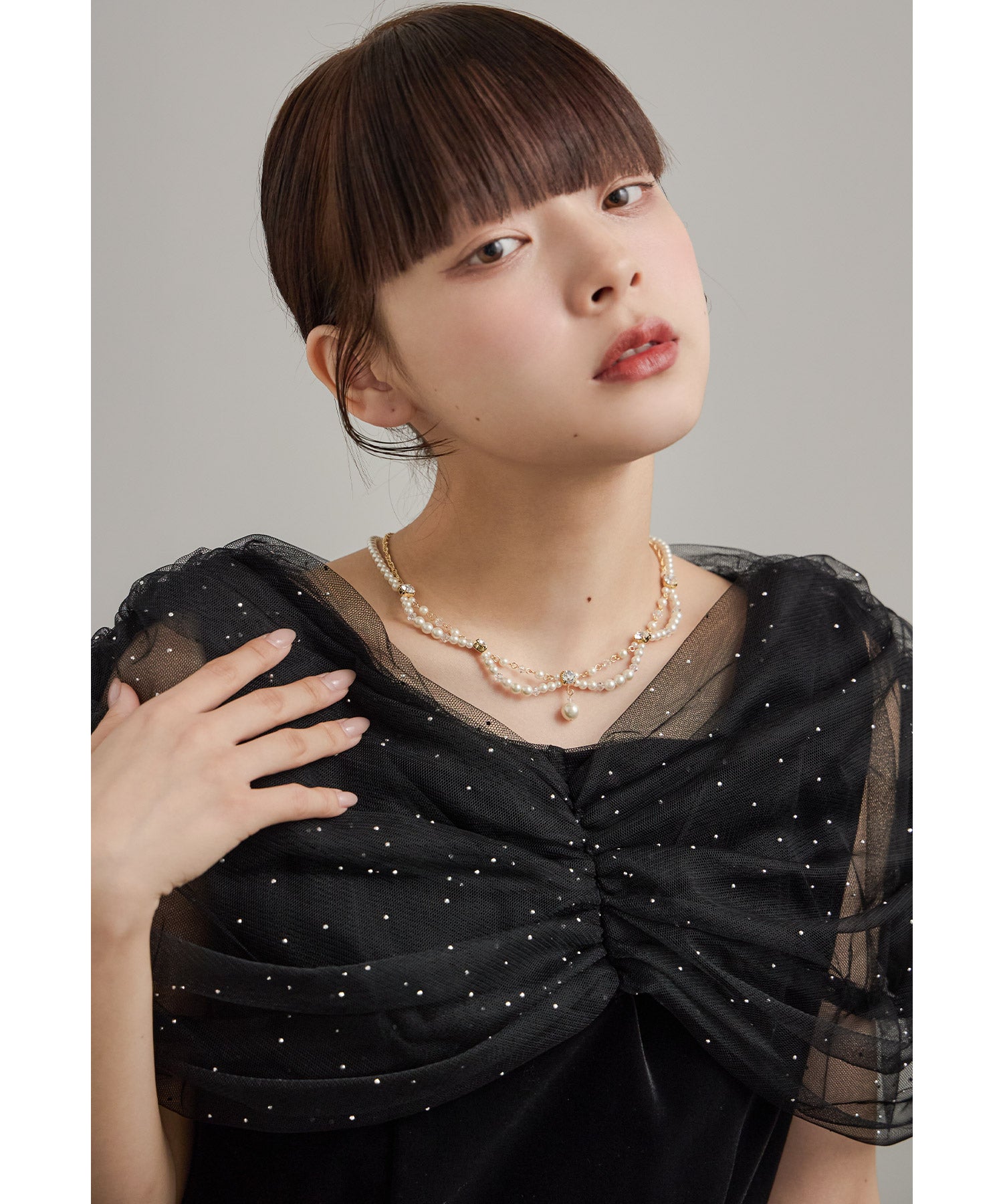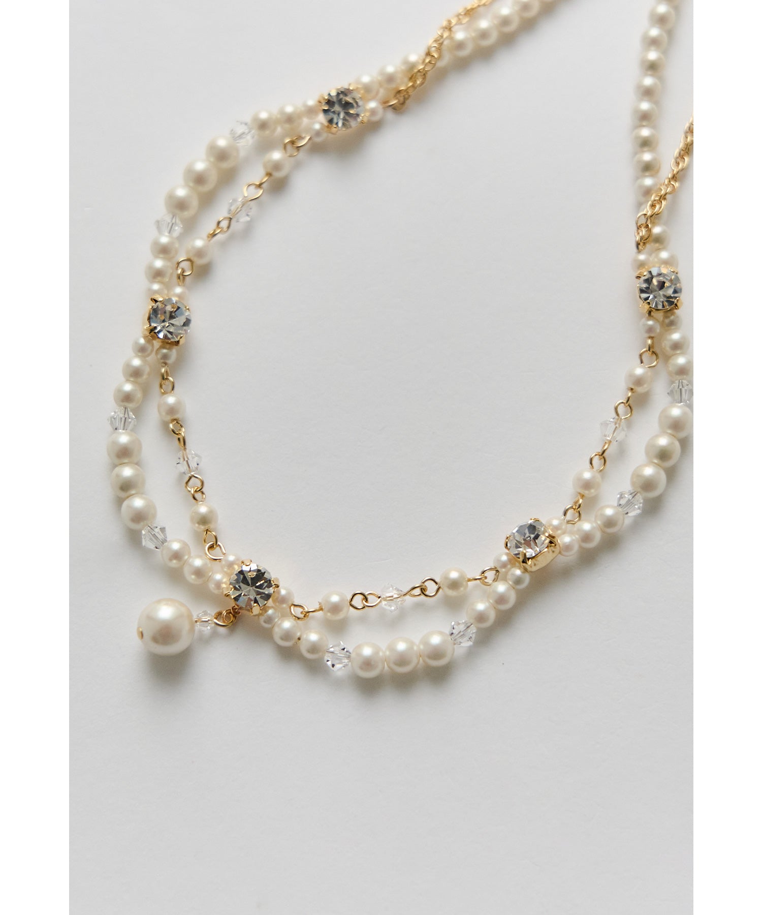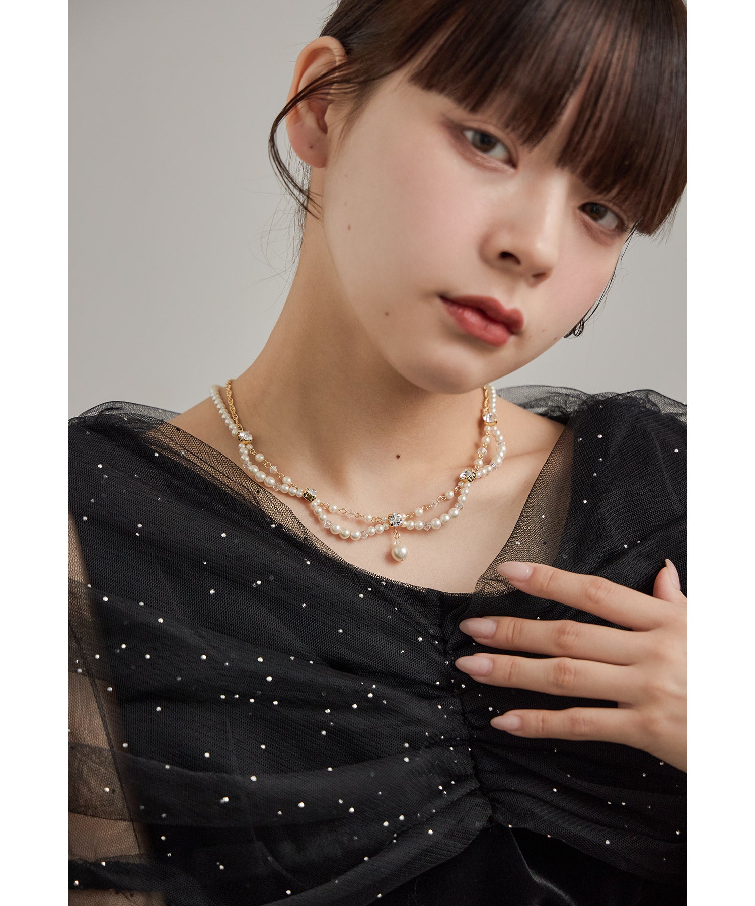 Rname パールスカラップネックレス レディース アクセサリー 二連 ショート ビジュー ビーズ チェーン ジュエリー ゴールド 上品 普段使い デイリー フォーマル パーティー 結婚式 セレモニー 入学式 卒業式 成人式 謝恩会 二次会 お呼ばれ 披露宴 オケージョン プレゼント