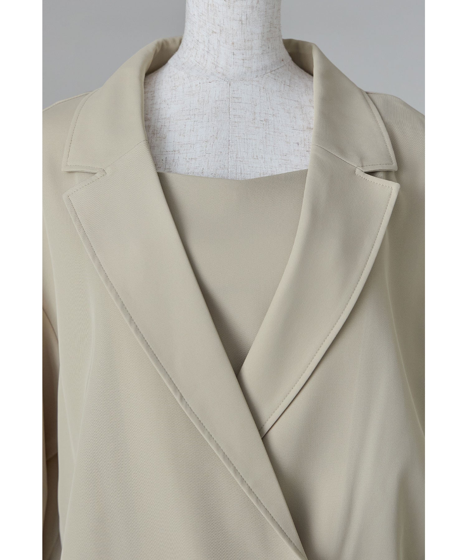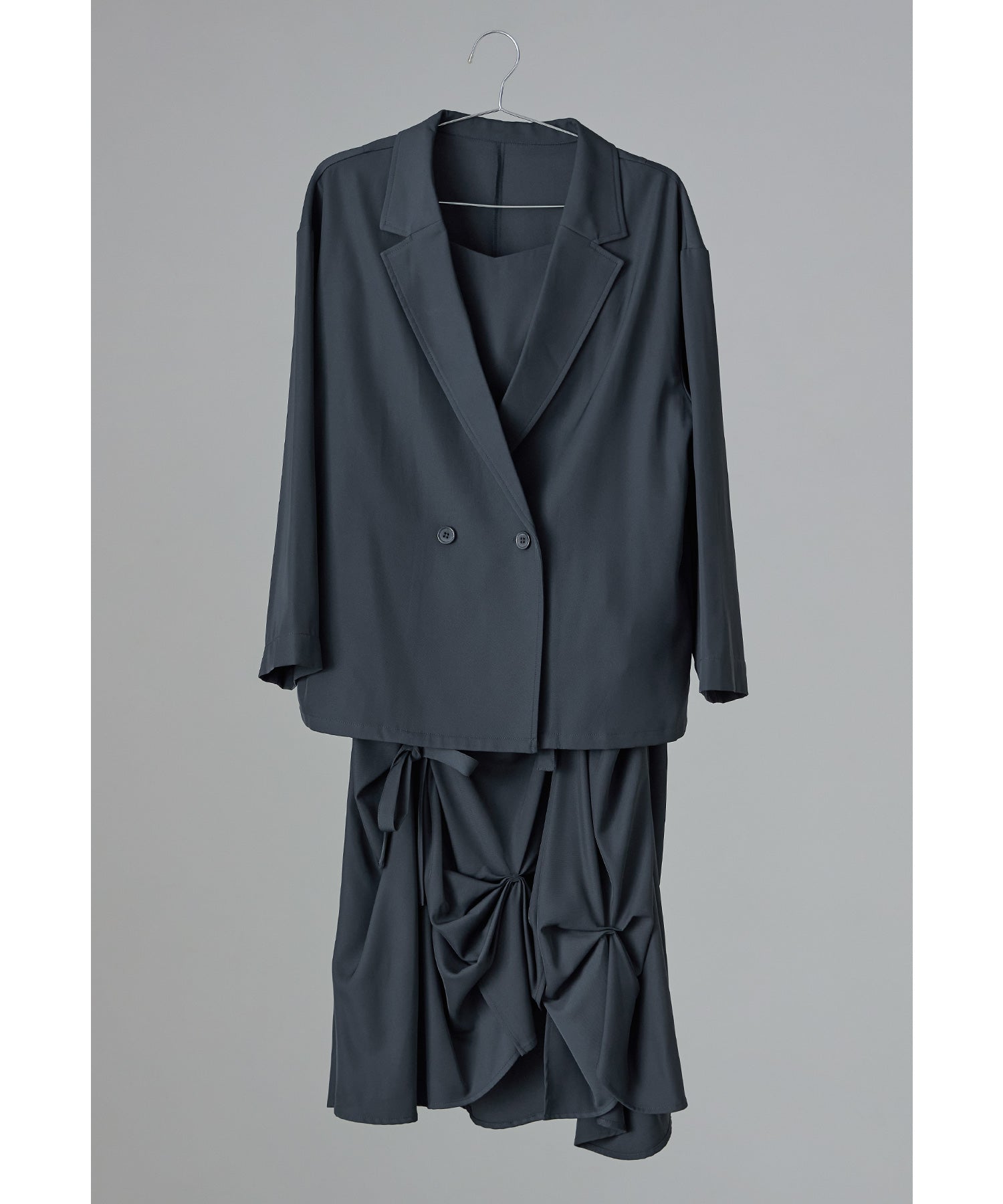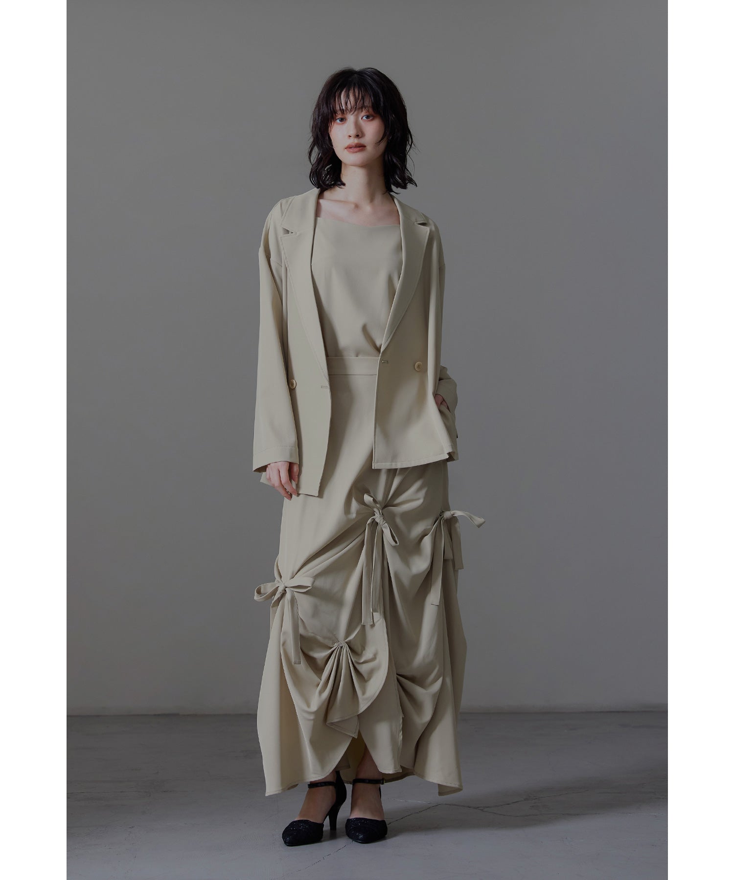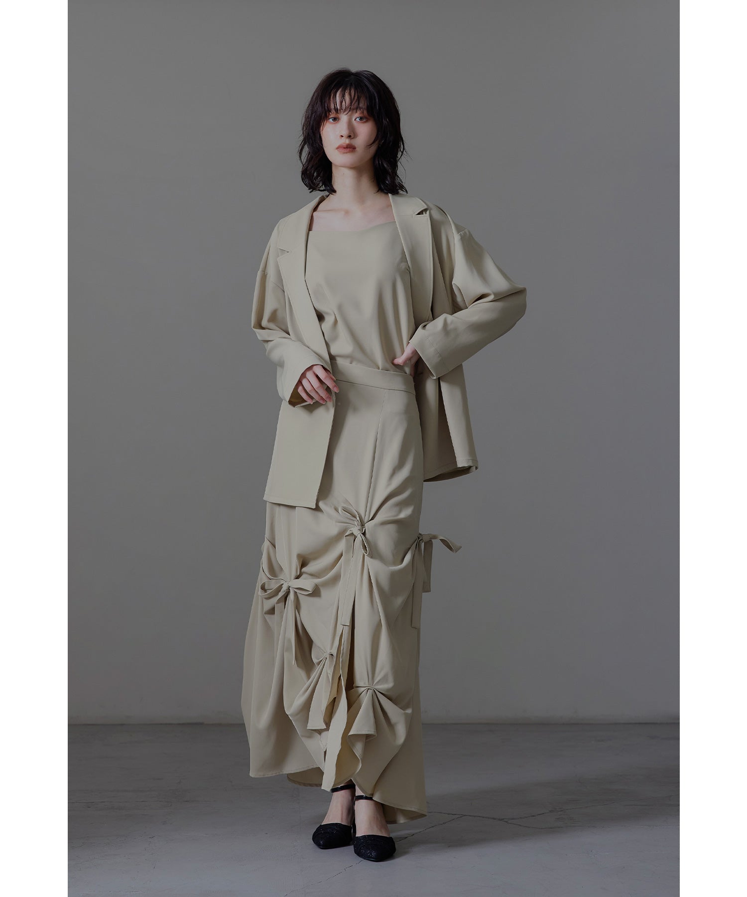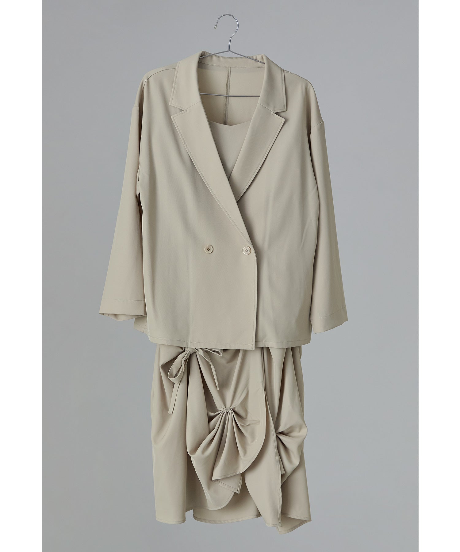 キャミトップス、スカート、ジャケットの3ピースセット。