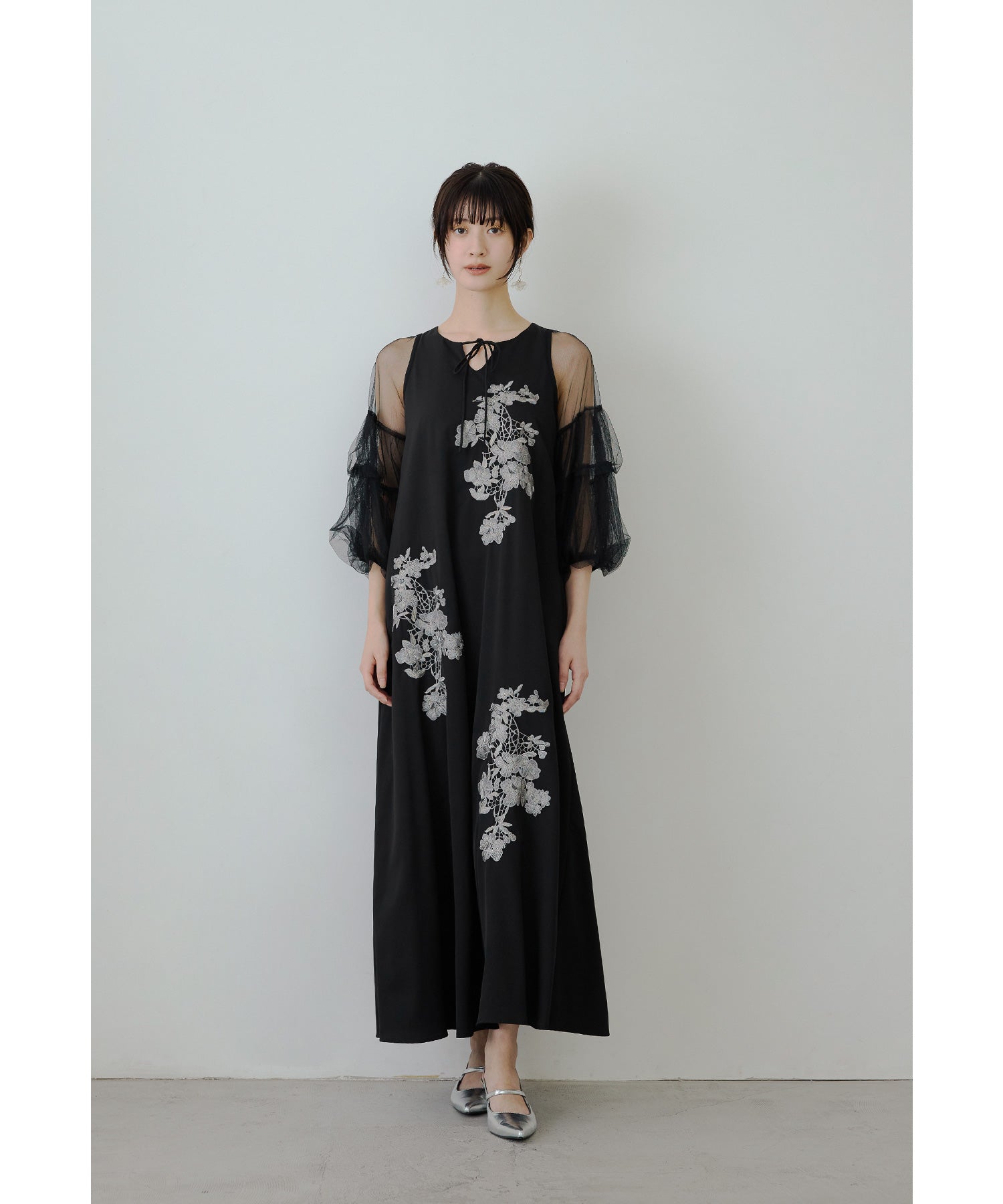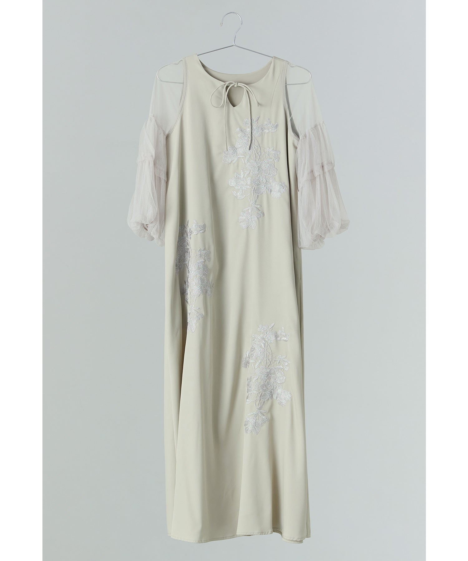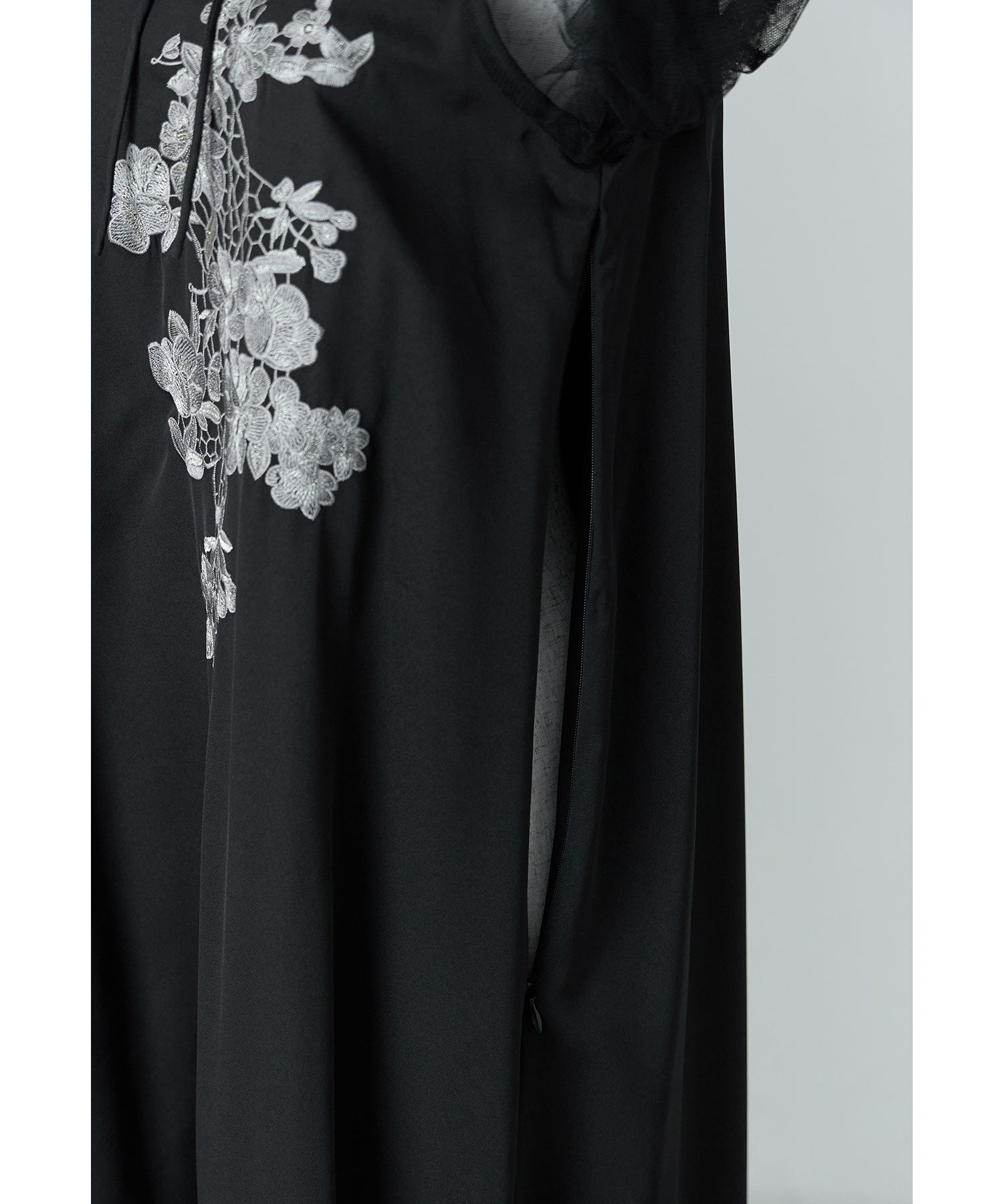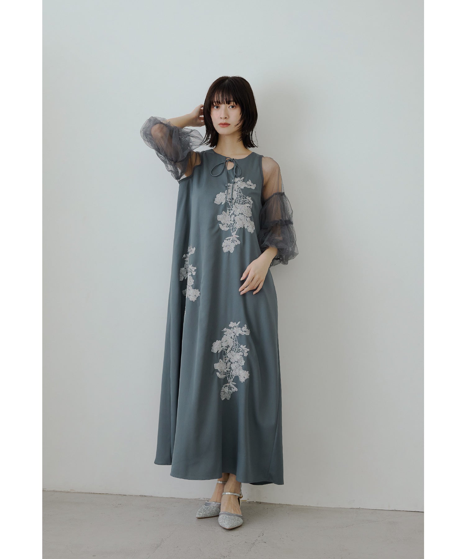 目を惹く大ぶりのフラワー刺繍がアクセントのオケージョンドレス。