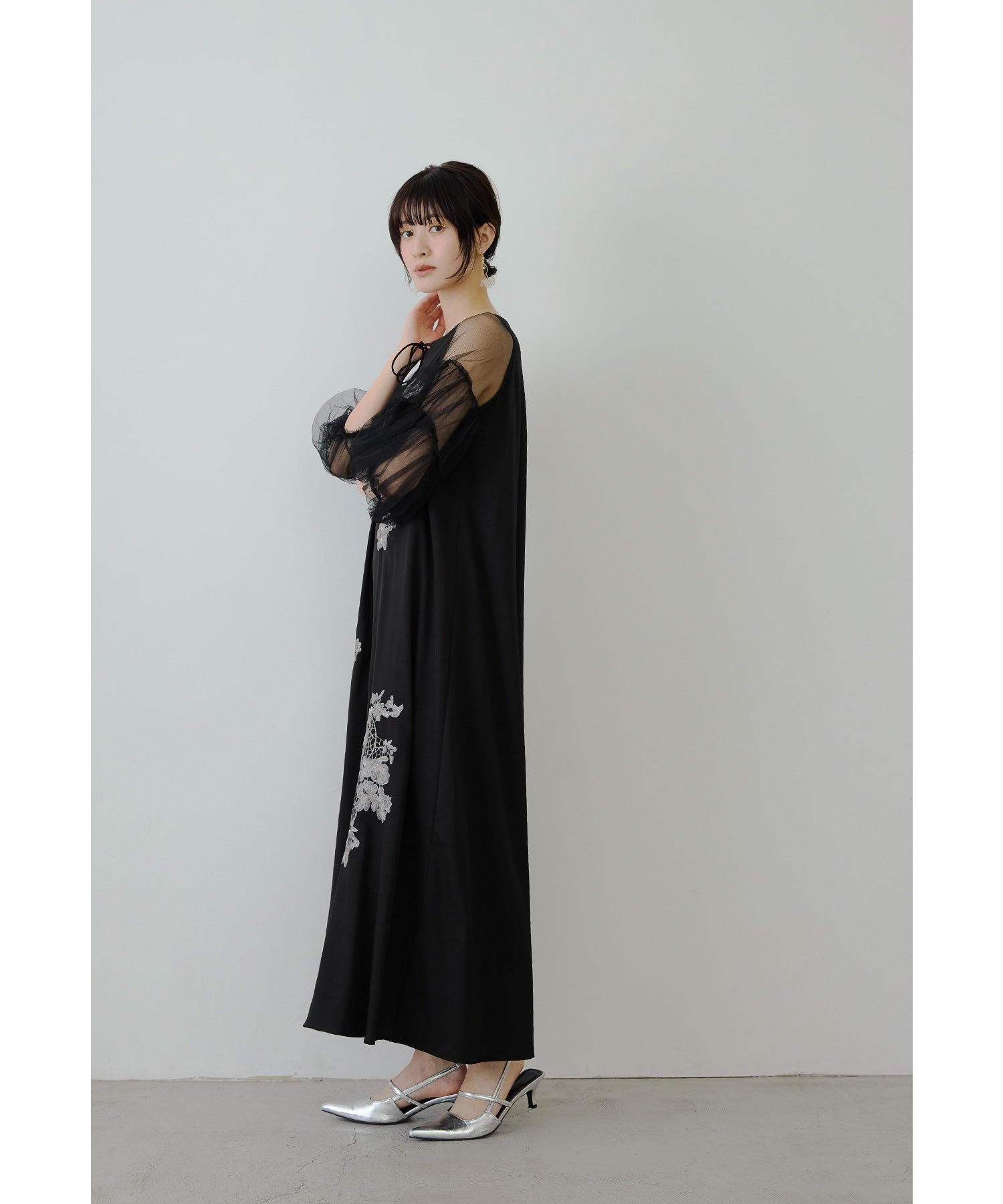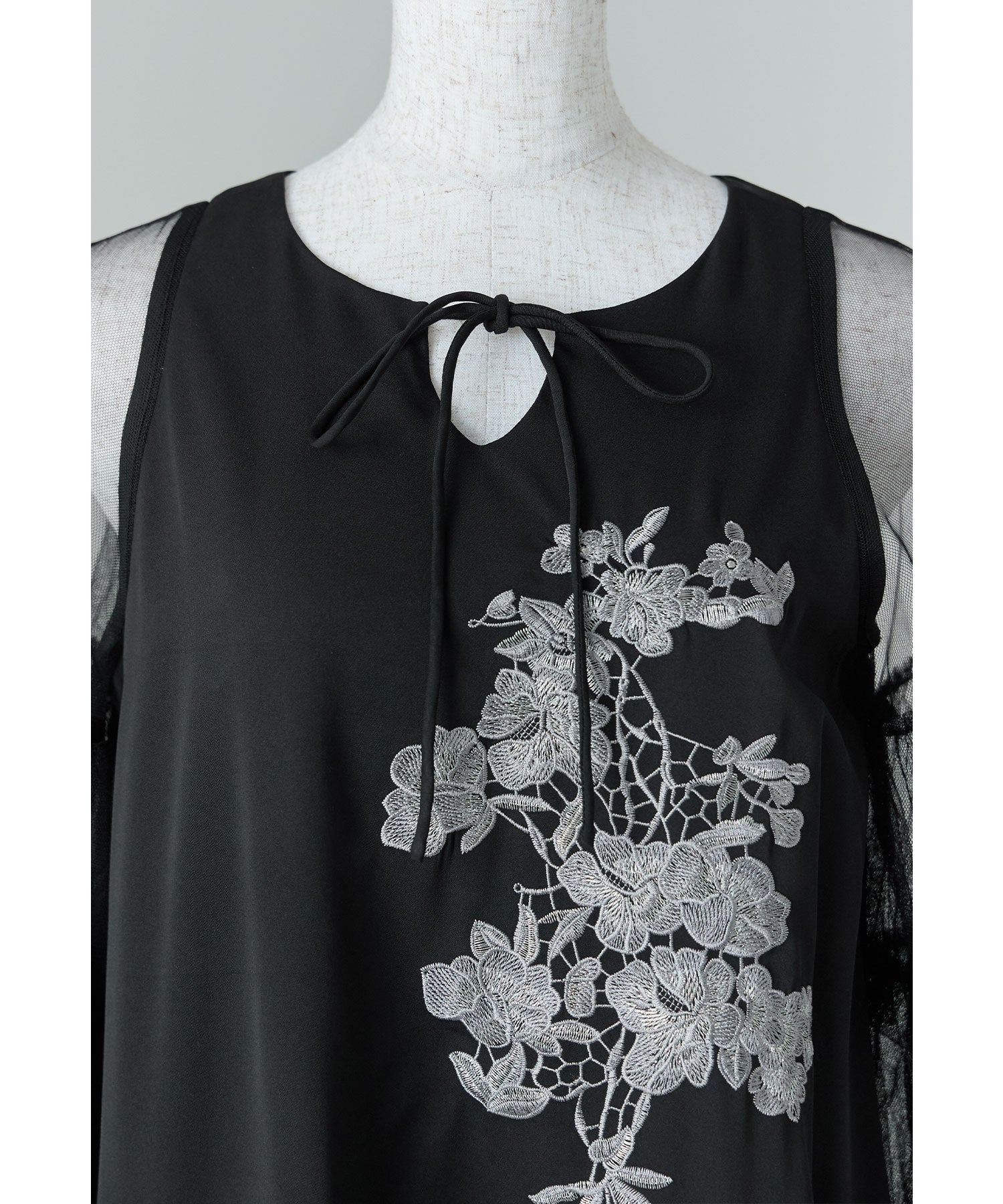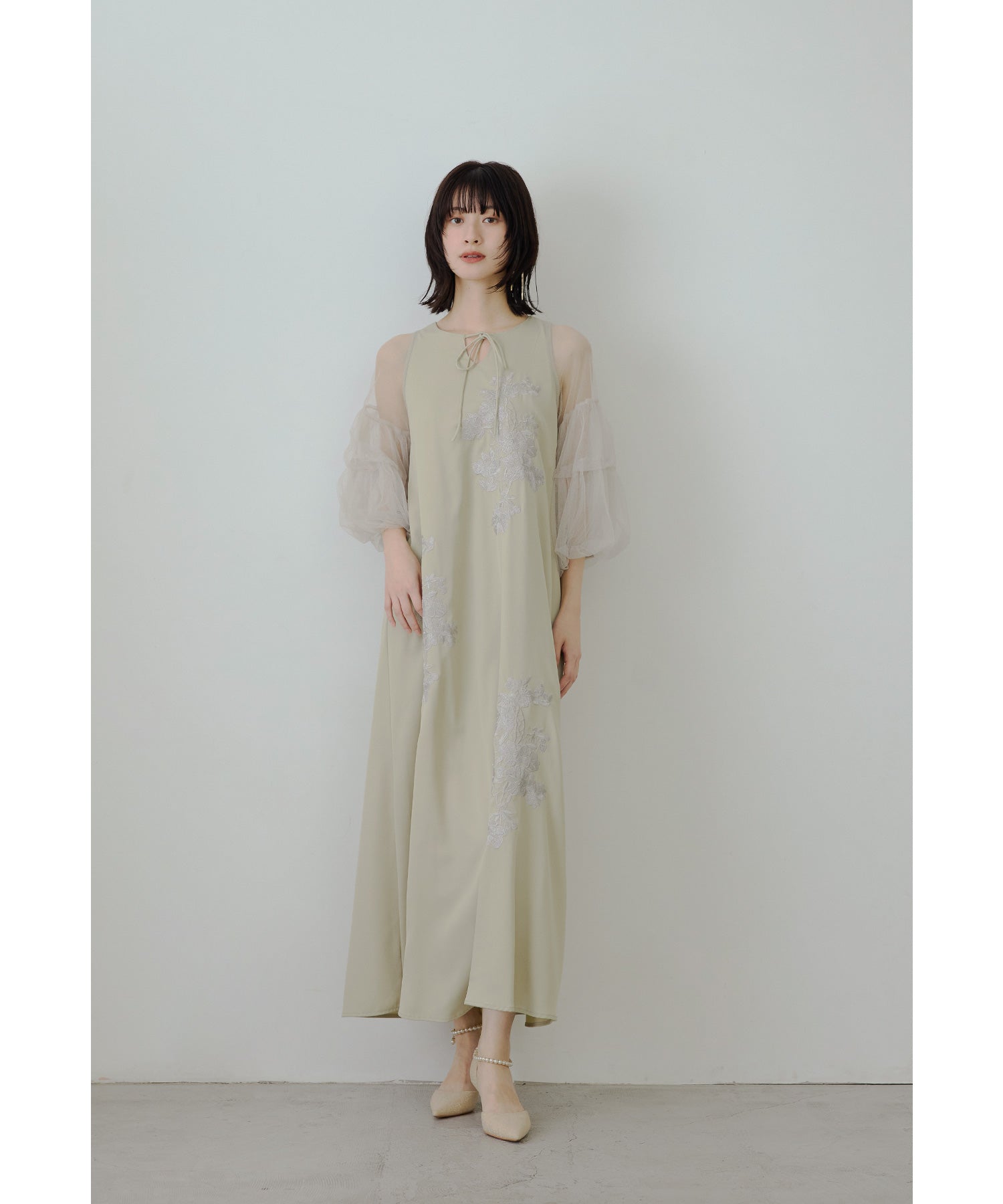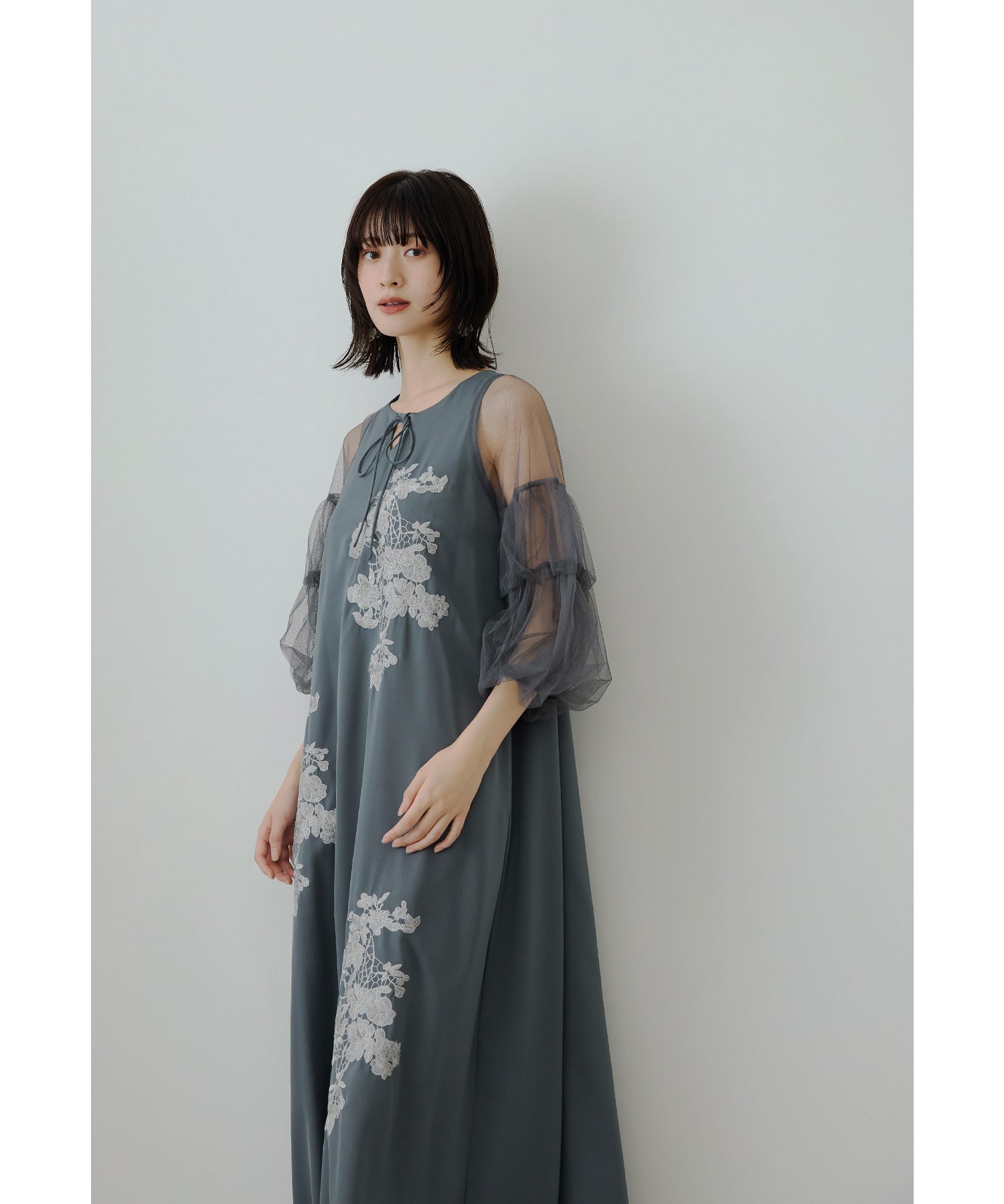 目を惹く大ぶりのフラワー刺繍がアクセントのオケージョンドレス。