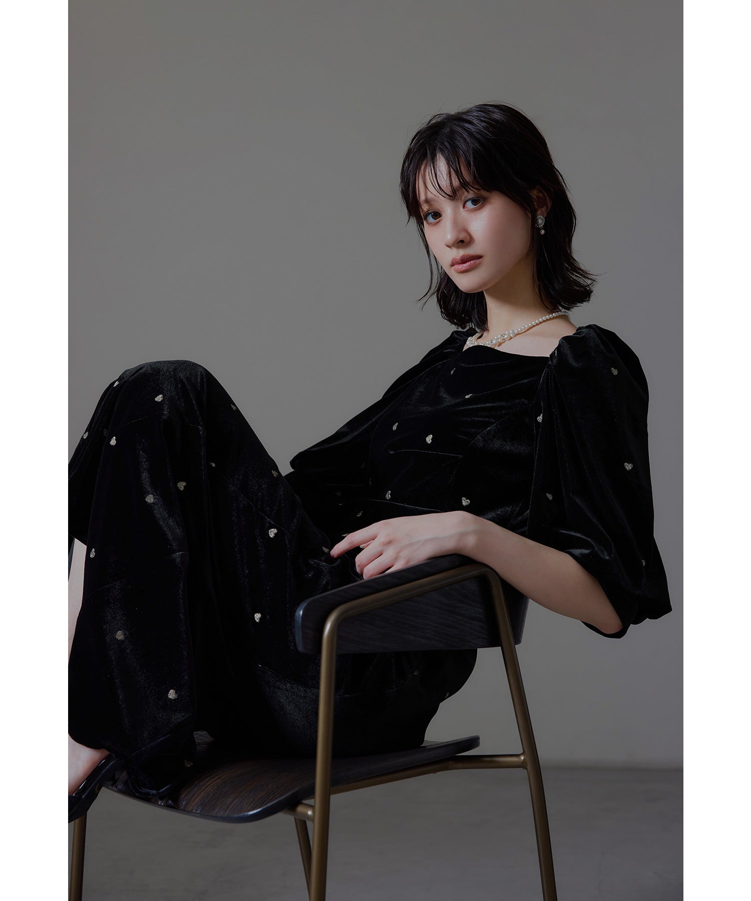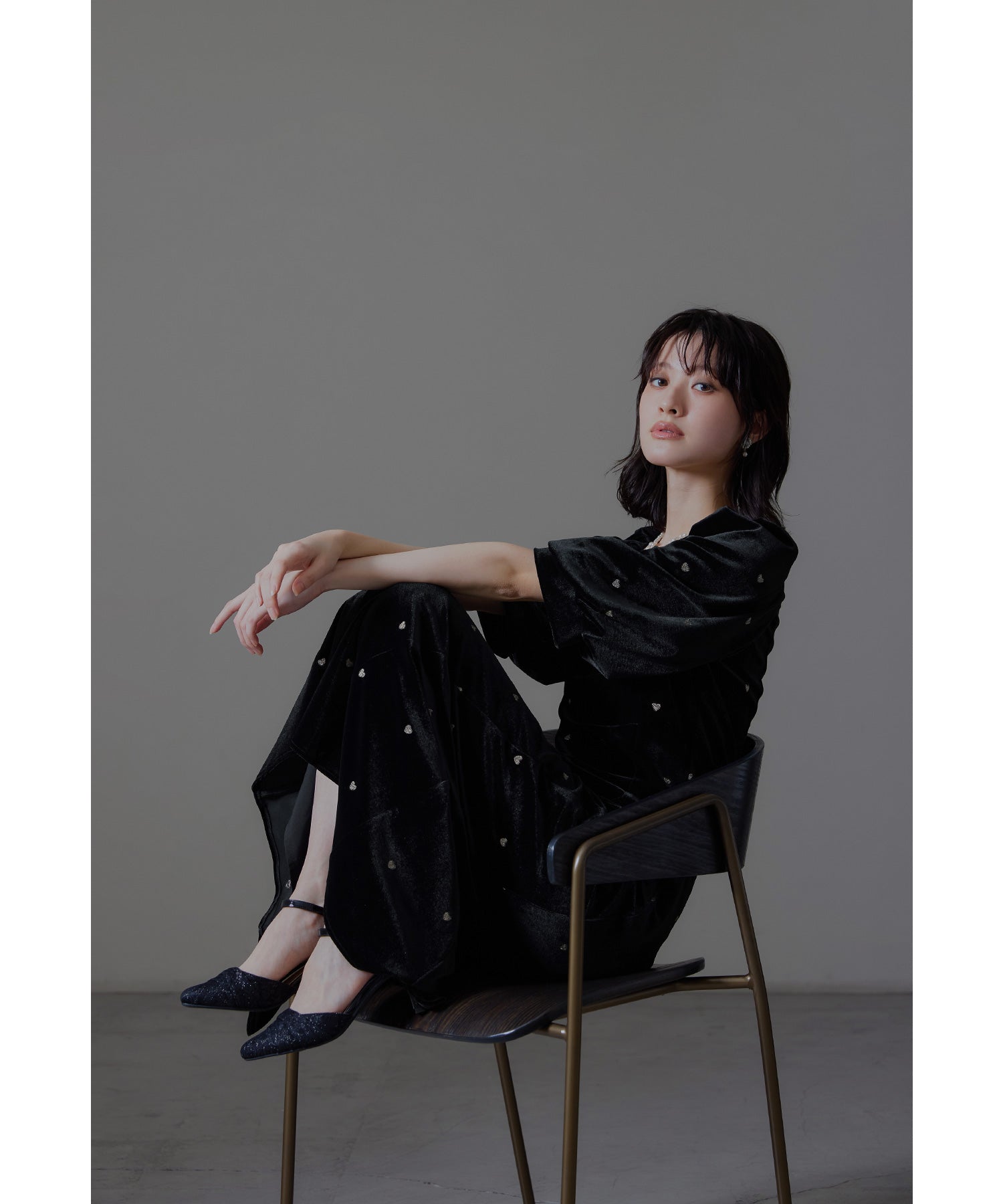 高級感ある滑らかな光沢のベロア素材にひとつひとつ丁寧に刺繍された