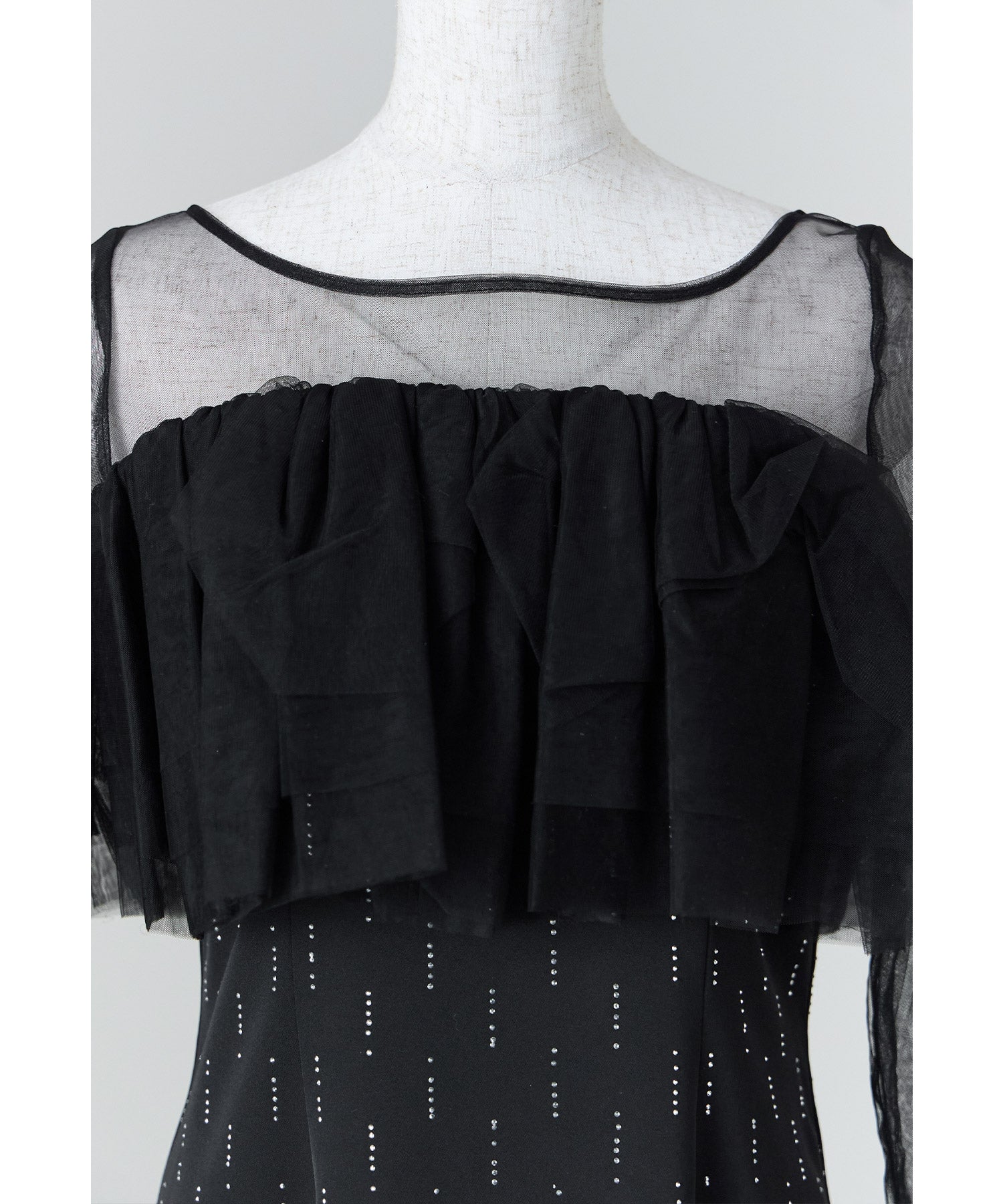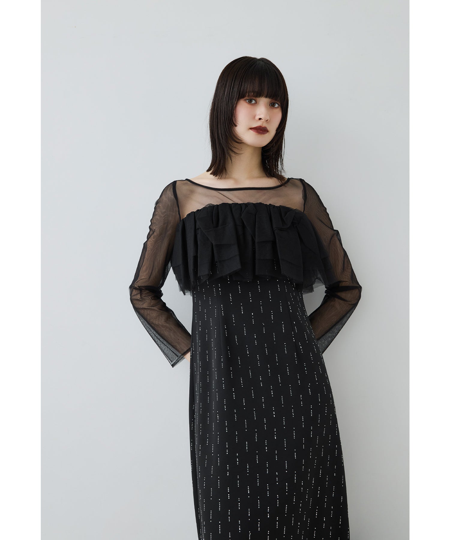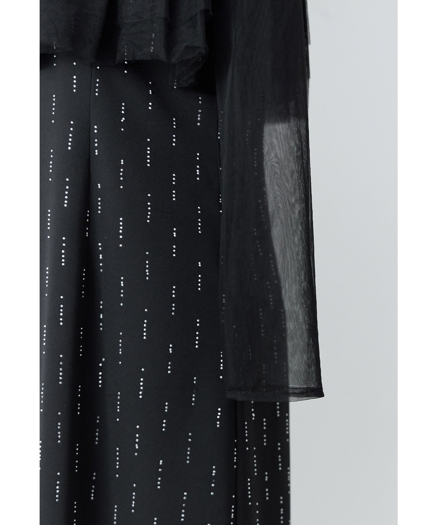 Rname シューティングスタードレス パーティードレス 結婚式 ワンピース ラインストーン ビジュー 星 チュール フリル シアー ロング丈 袖あり 長袖 お呼ばれ パーティー 二次会 披露宴 謝恩会 成人式 同窓会 卒業式 フォーマル オケージョンドレス 春 夏 秋 冬 S M L 黒