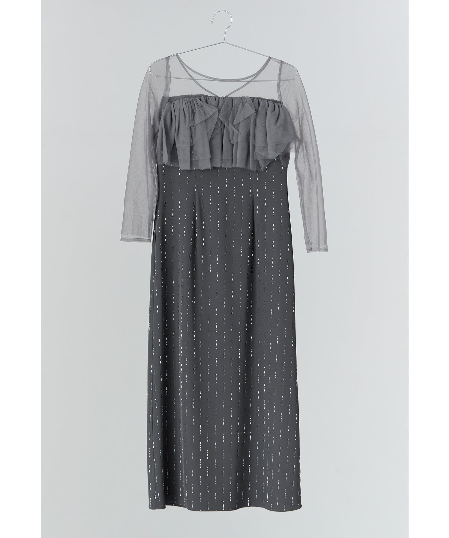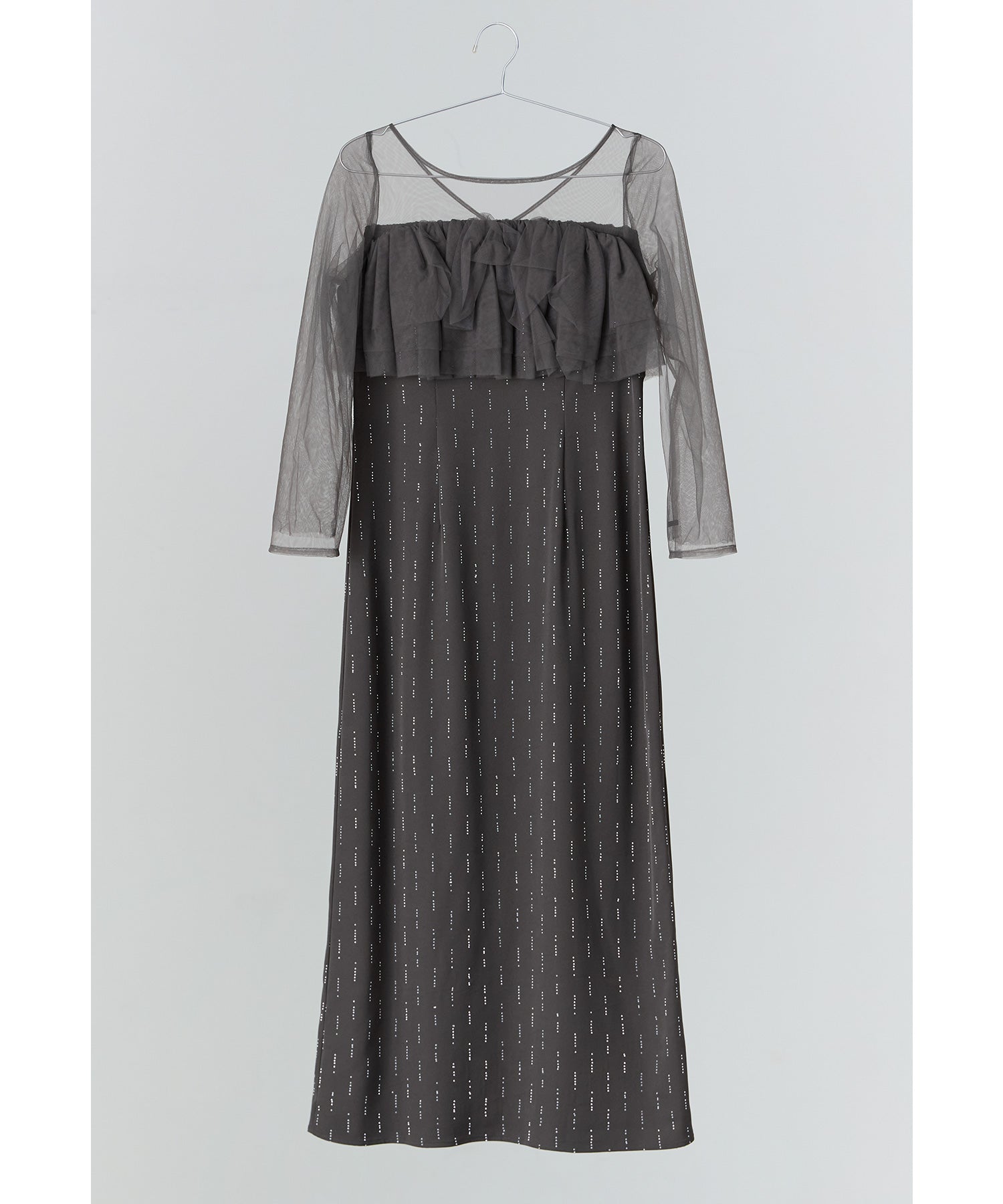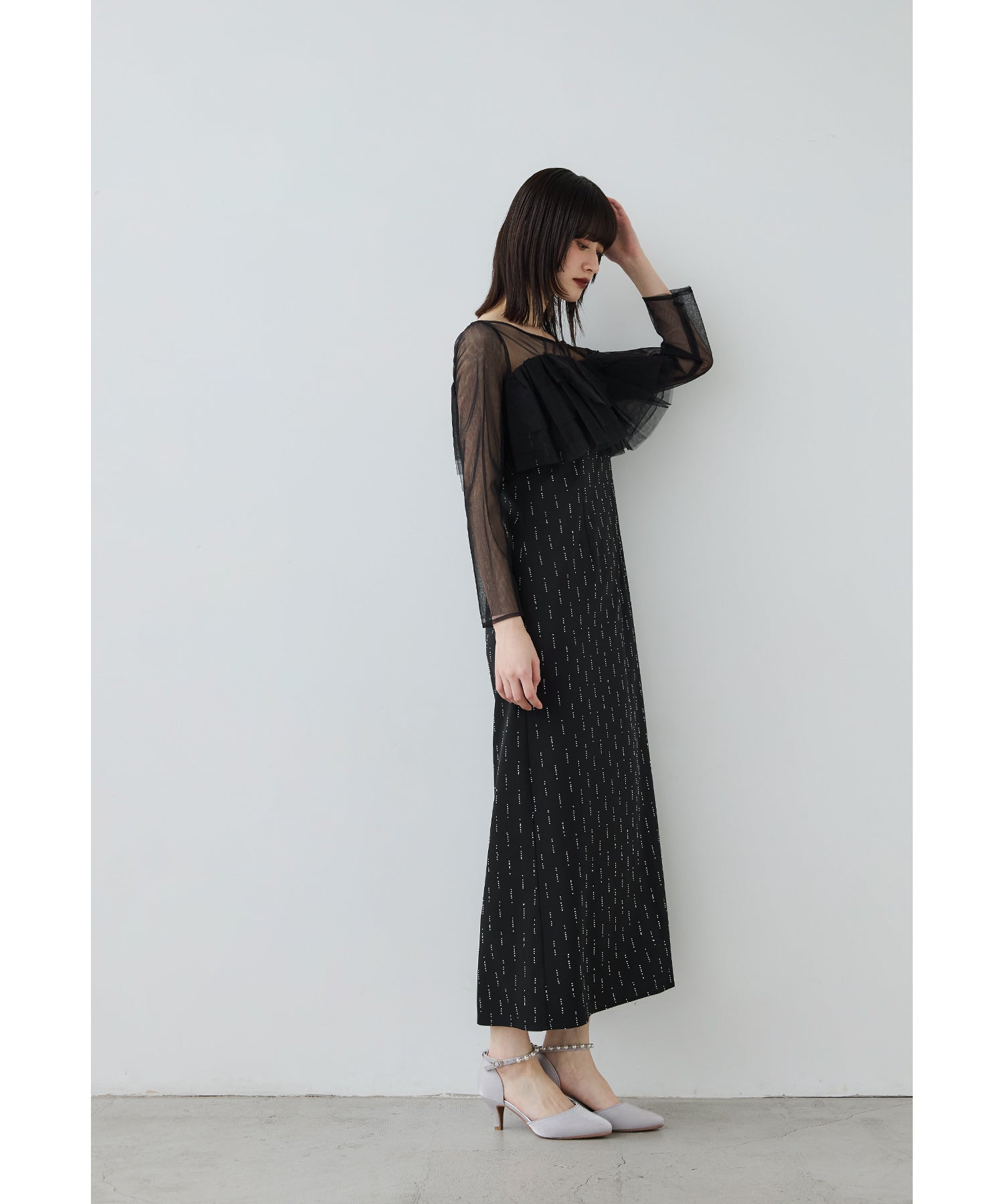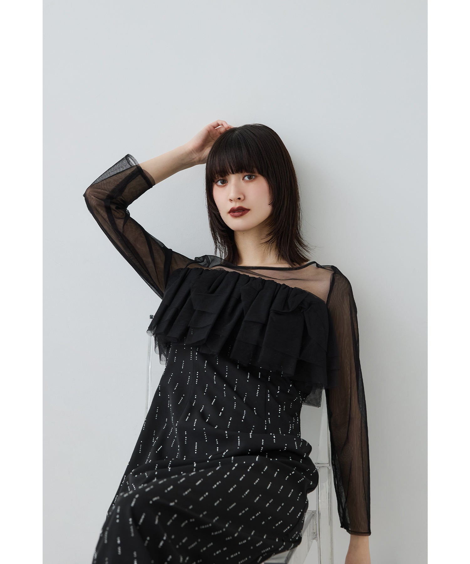 Rname シューティングスタードレス パーティードレス 結婚式 ワンピース ラインストーン ビジュー 星 チュール フリル シアー ロング丈 袖あり 長袖 お呼ばれ パーティー 二次会 披露宴 謝恩会 成人式 同窓会 卒業式 フォーマル オケージョンドレス 春 夏 秋 冬 S M L 黒