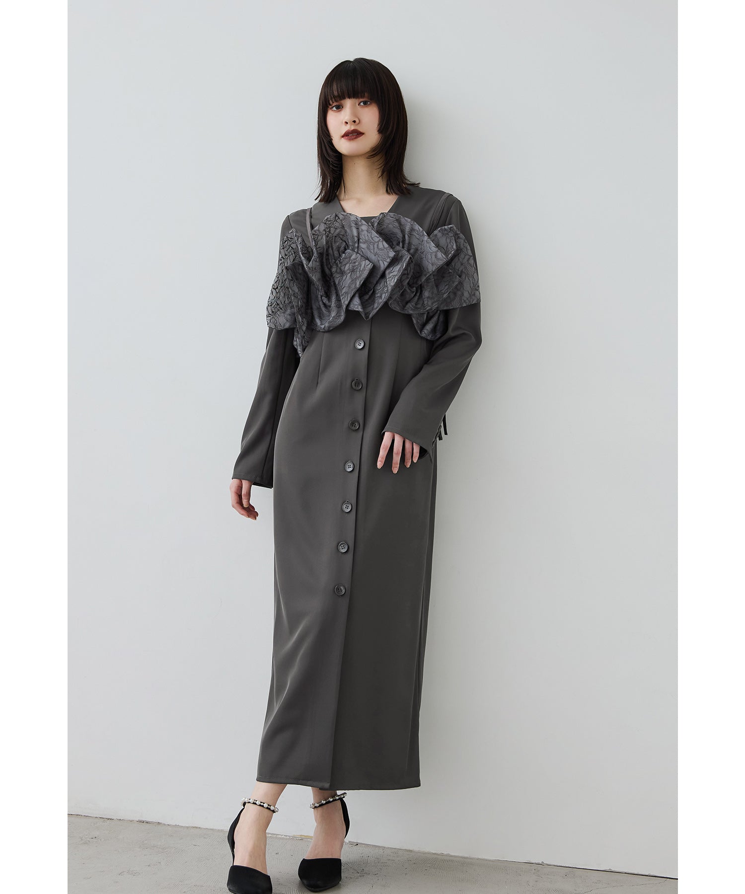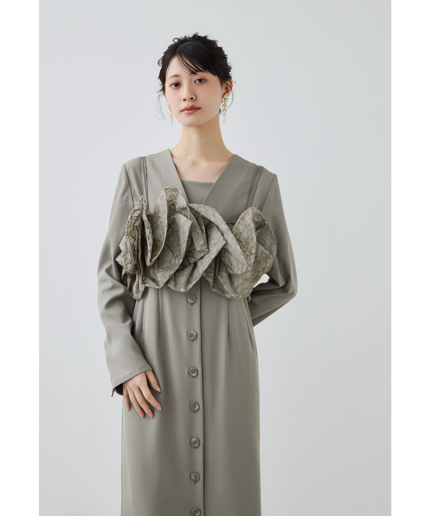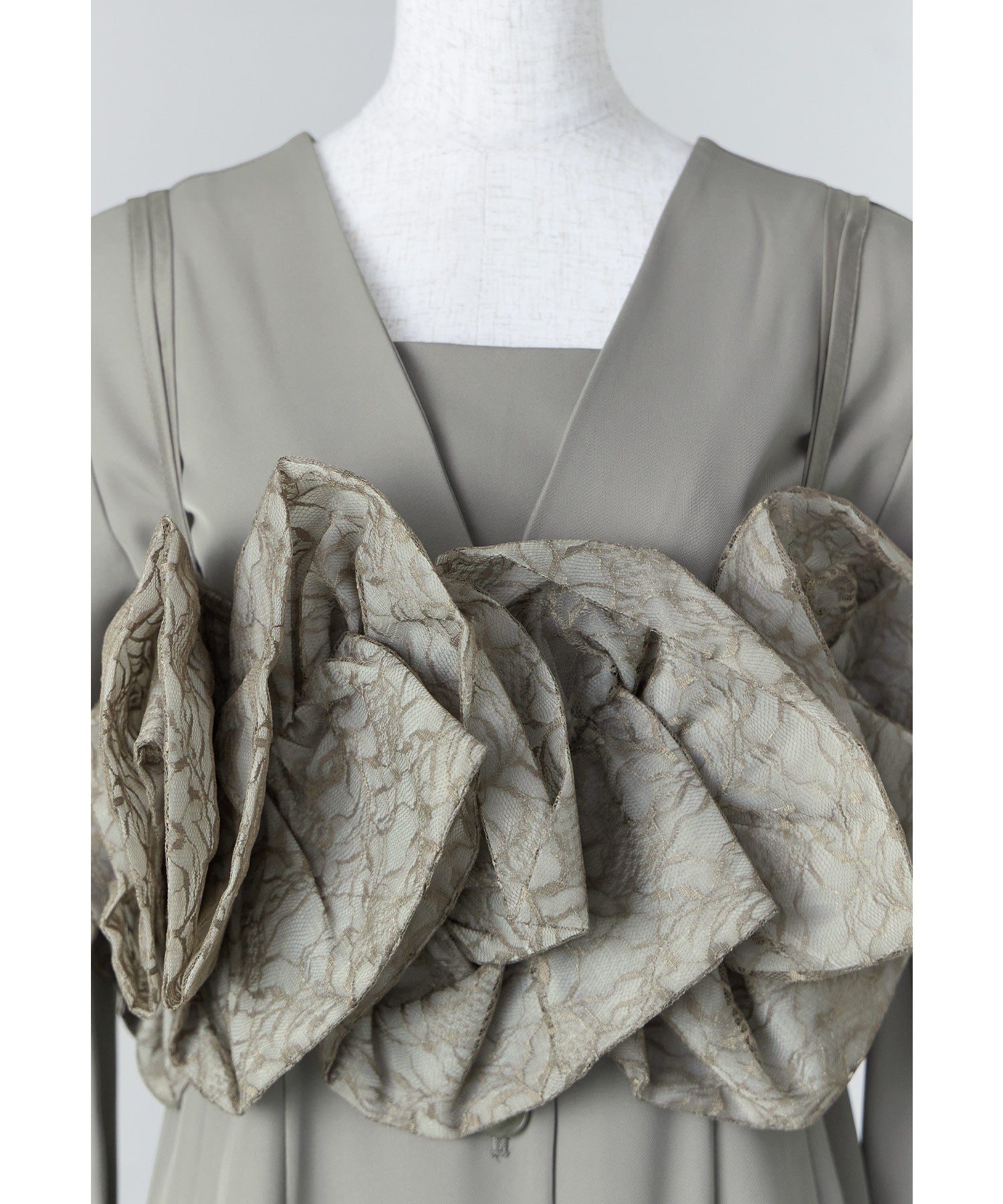 Rname ラッフルオーガンザドレス パーティードレス 結婚式 ワンピース ビスチェ 2点セット レース 花柄 キャミ フリル ボリューム ロング丈 袖あり 長袖 無地 お呼ばれ パーティー 二次会 披露宴 謝恩会 成人式 同窓会 卒業式 フォーマル セレモニー オケージョンドレス 春夏 秋冬