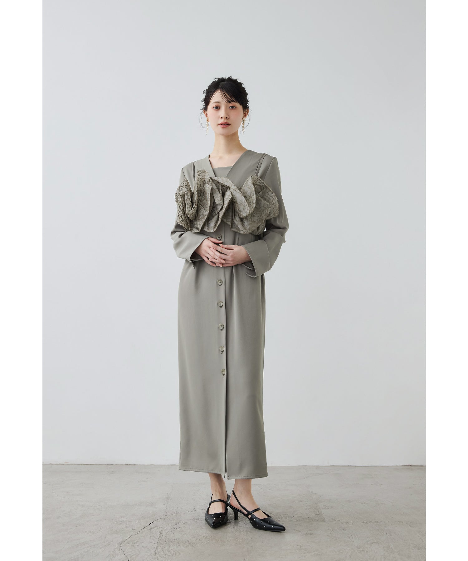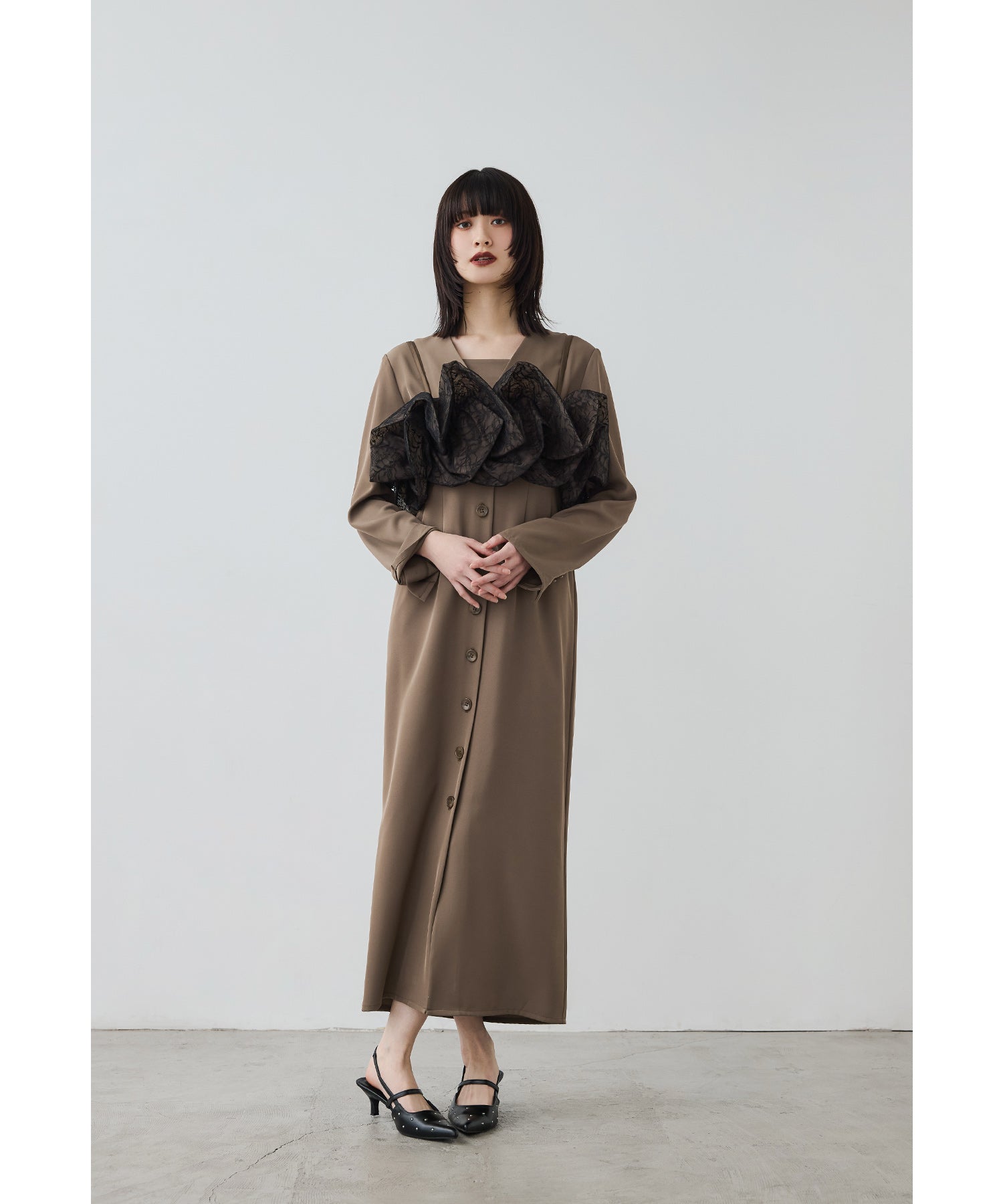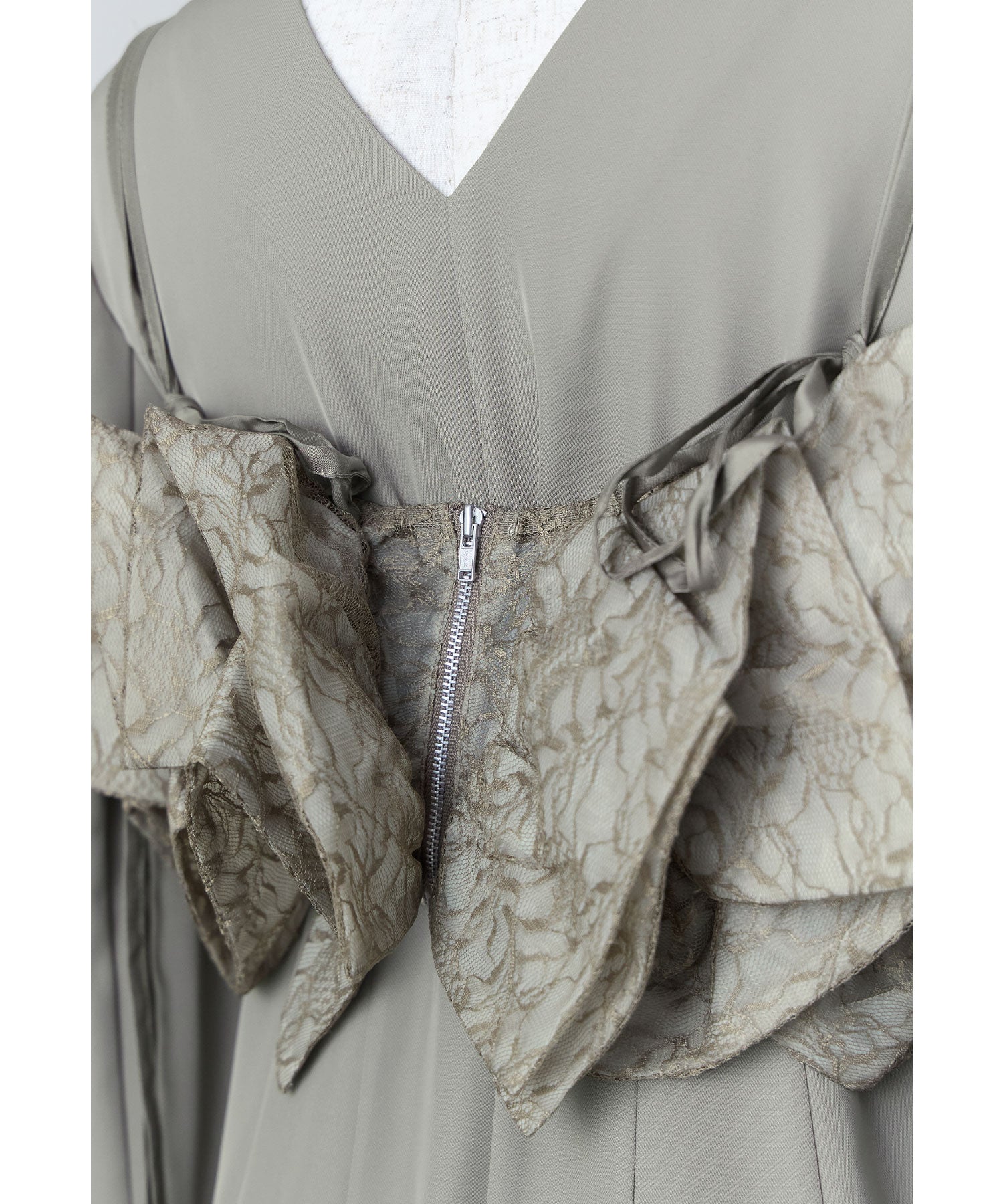 Rname ラッフルオーガンザドレス パーティードレス 結婚式 ワンピース ビスチェ 2点セット レース 花柄 キャミ フリル ボリューム ロング丈 袖あり 長袖 無地 お呼ばれ パーティー 二次会 披露宴 謝恩会 成人式 同窓会 卒業式 フォーマル セレモニー オケージョンドレス 春夏 秋冬