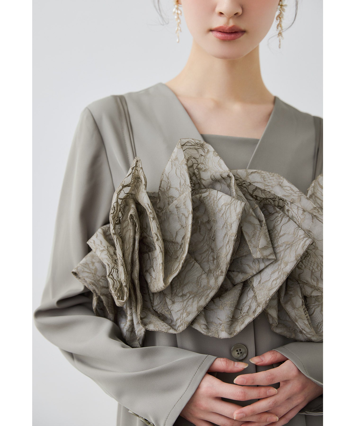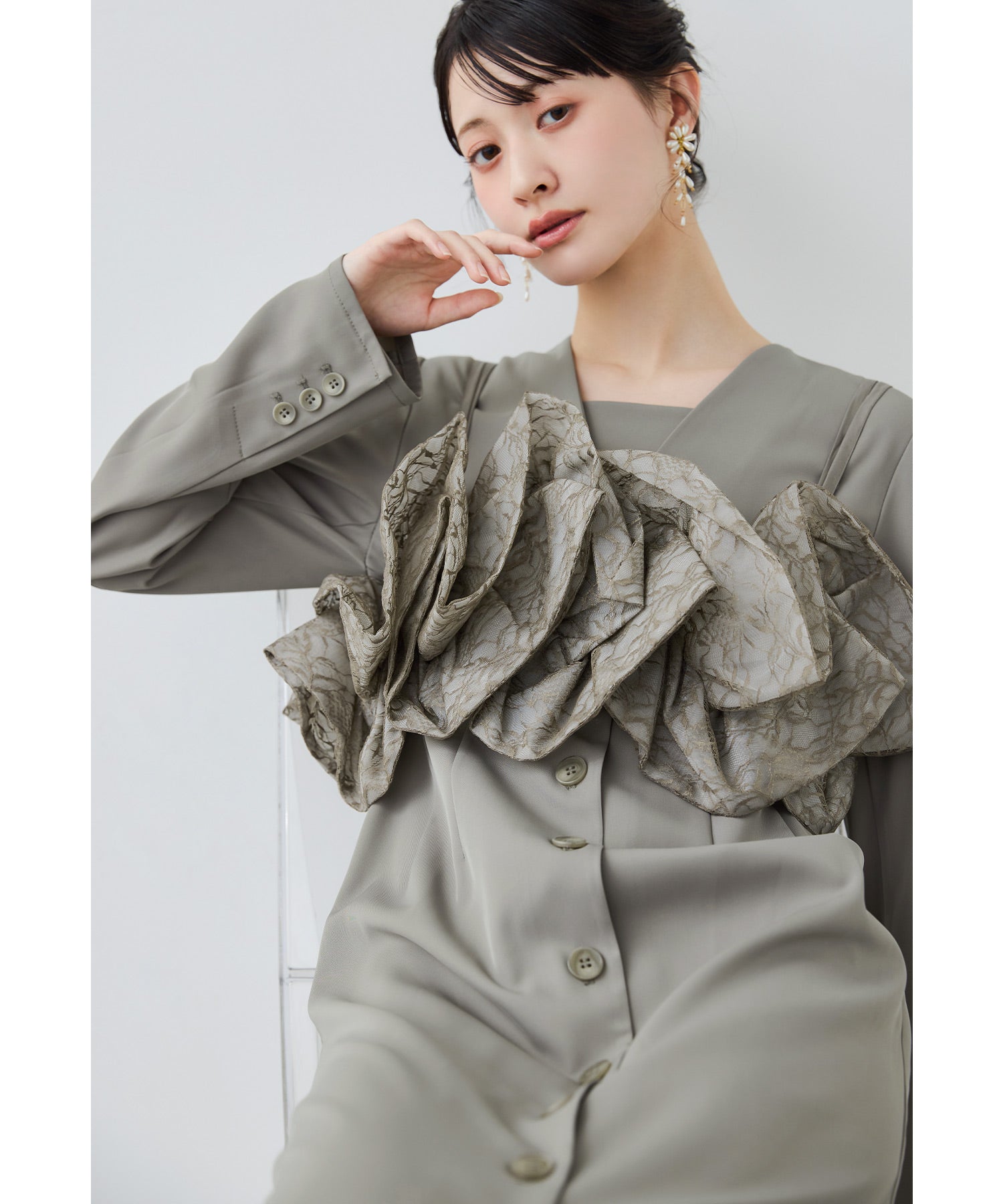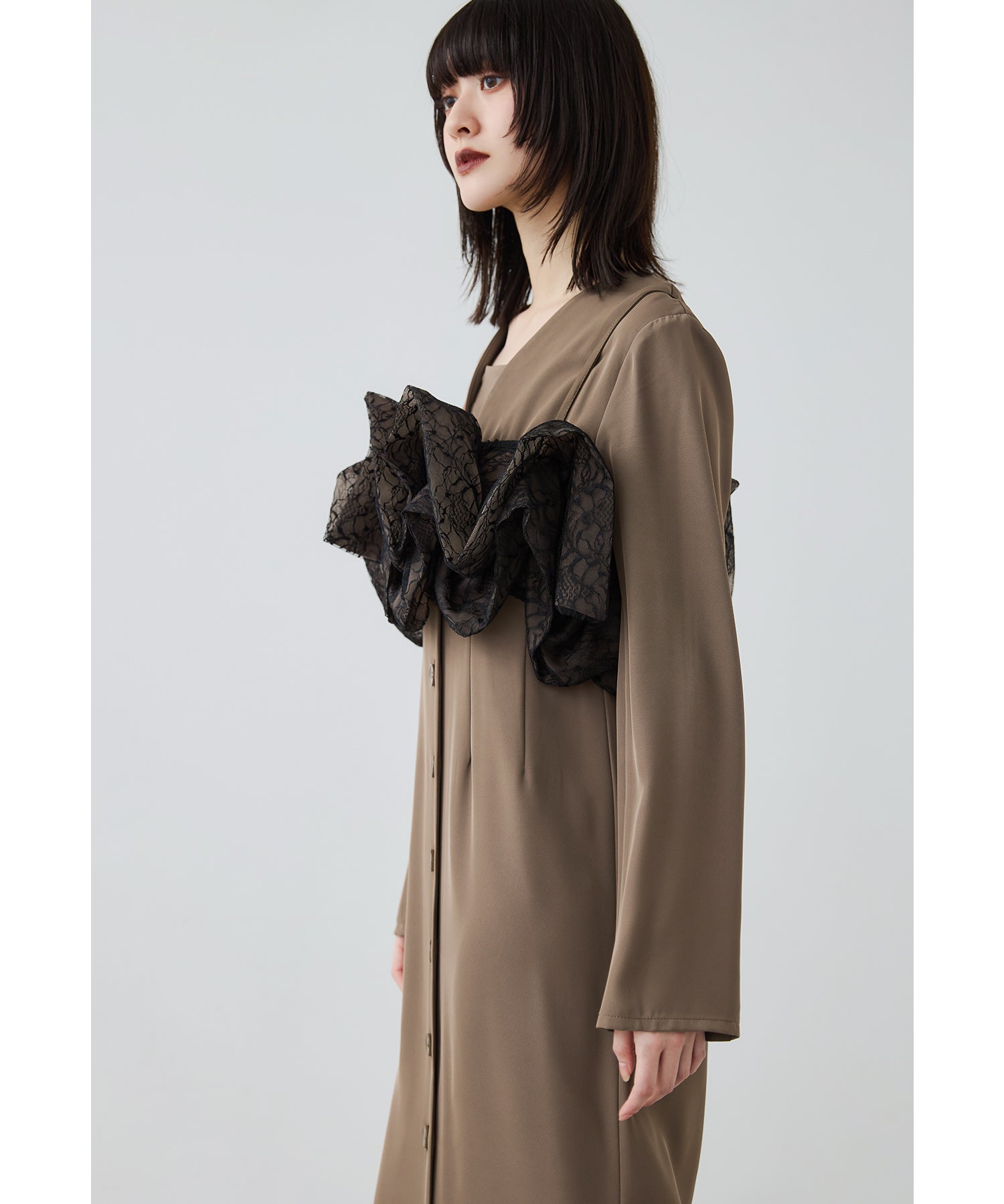 レース生地を重ねた立体的なボリュームフリルビスチェに