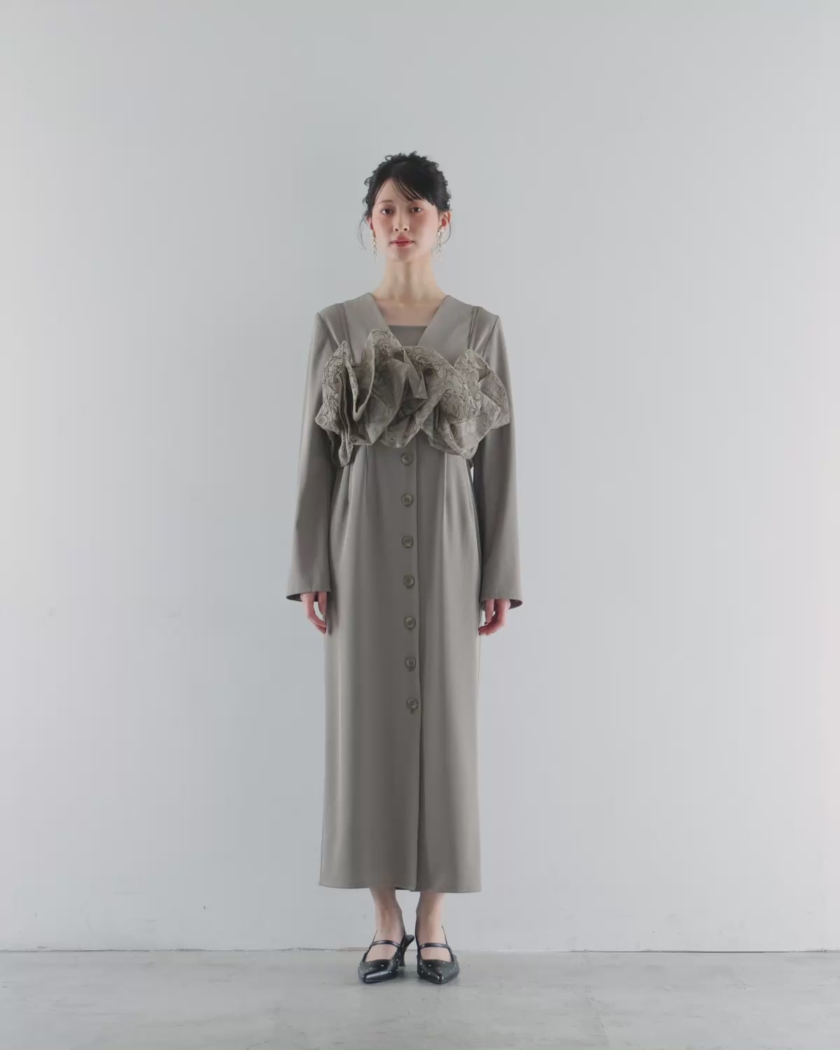 ワンピース本体は、落ち感のあるIラインシルエットに仕上げました。