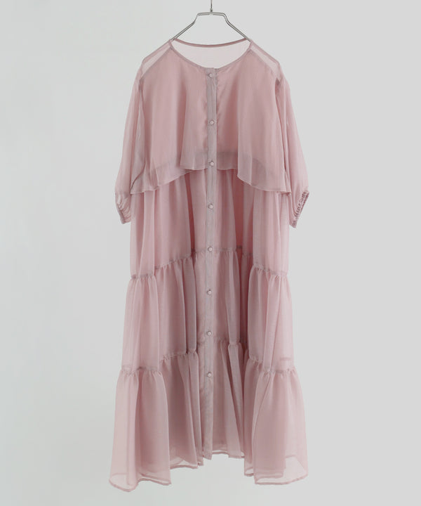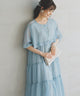 きれいに広がるティアードシルエット、ふんわりボリューミーなのに適度な透け感とさり気ない銀糸ストライプの楊柳シフォンで優しく華やかな他とはかぶらないマタニティドレスが仕上がりました。