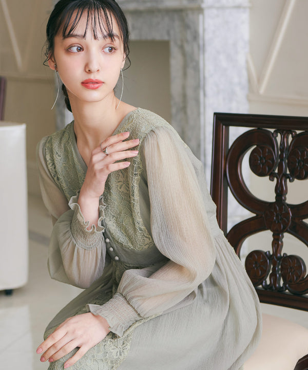 レースと軽やかなチュールを組み合わせたパーティードレス。