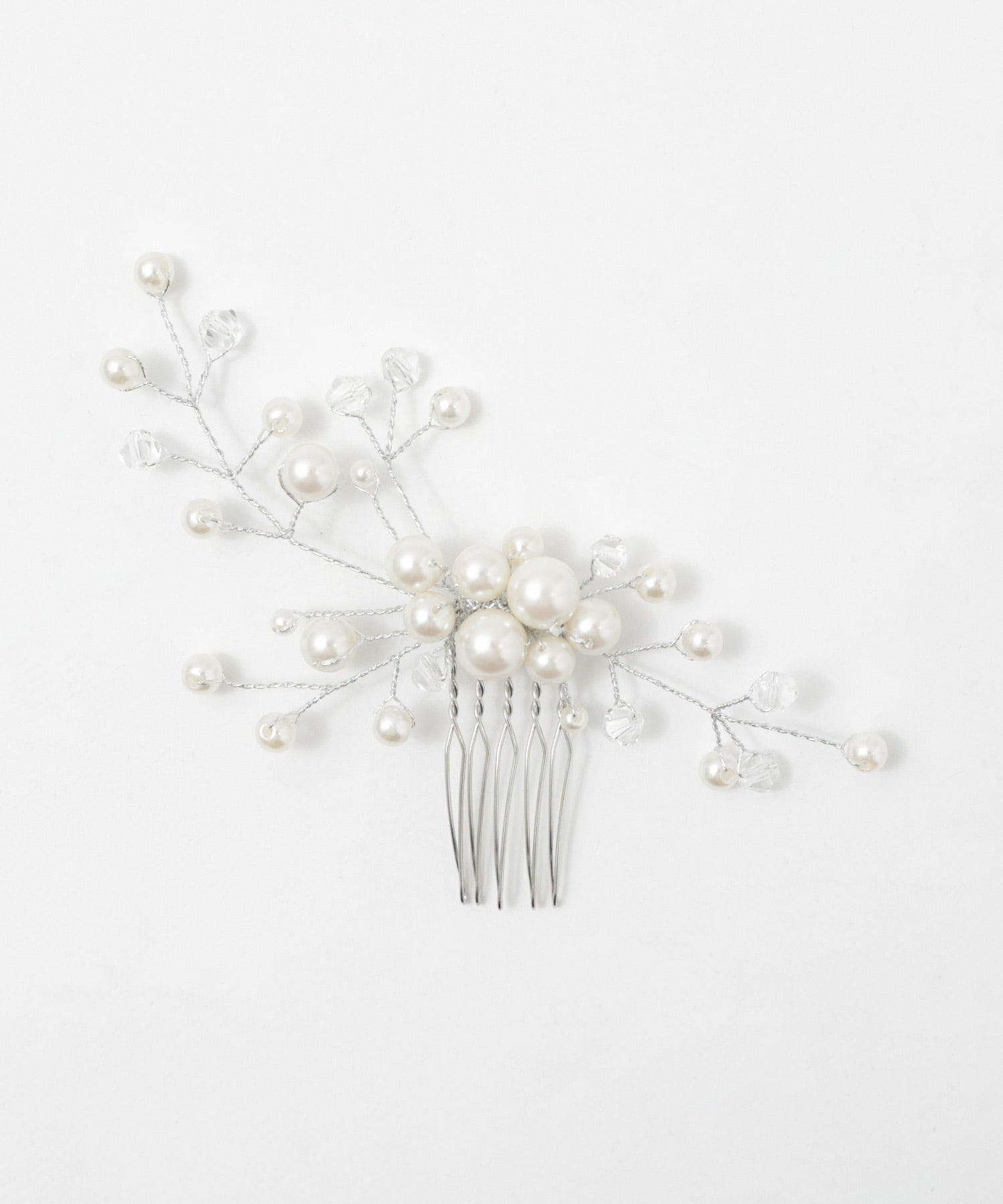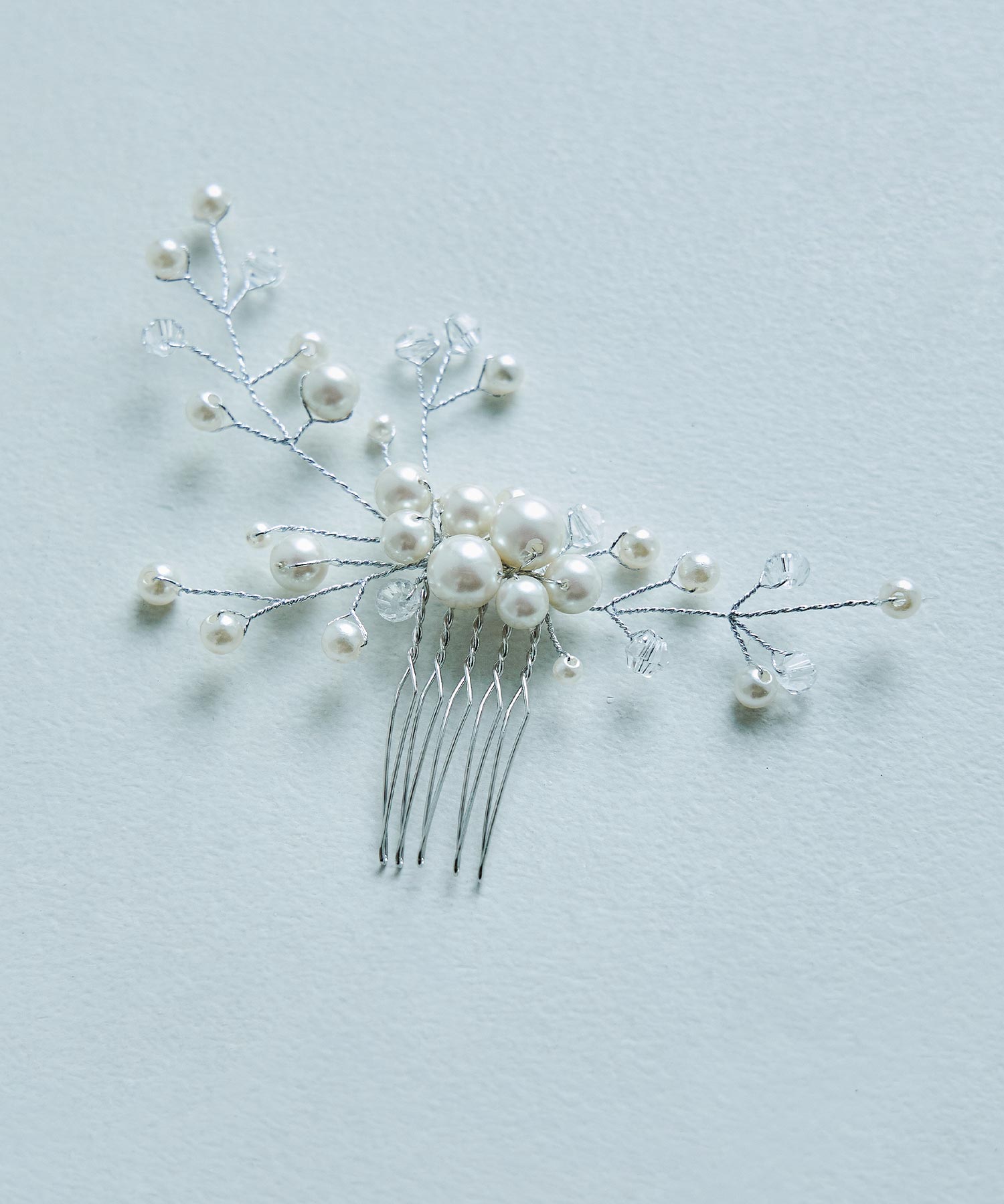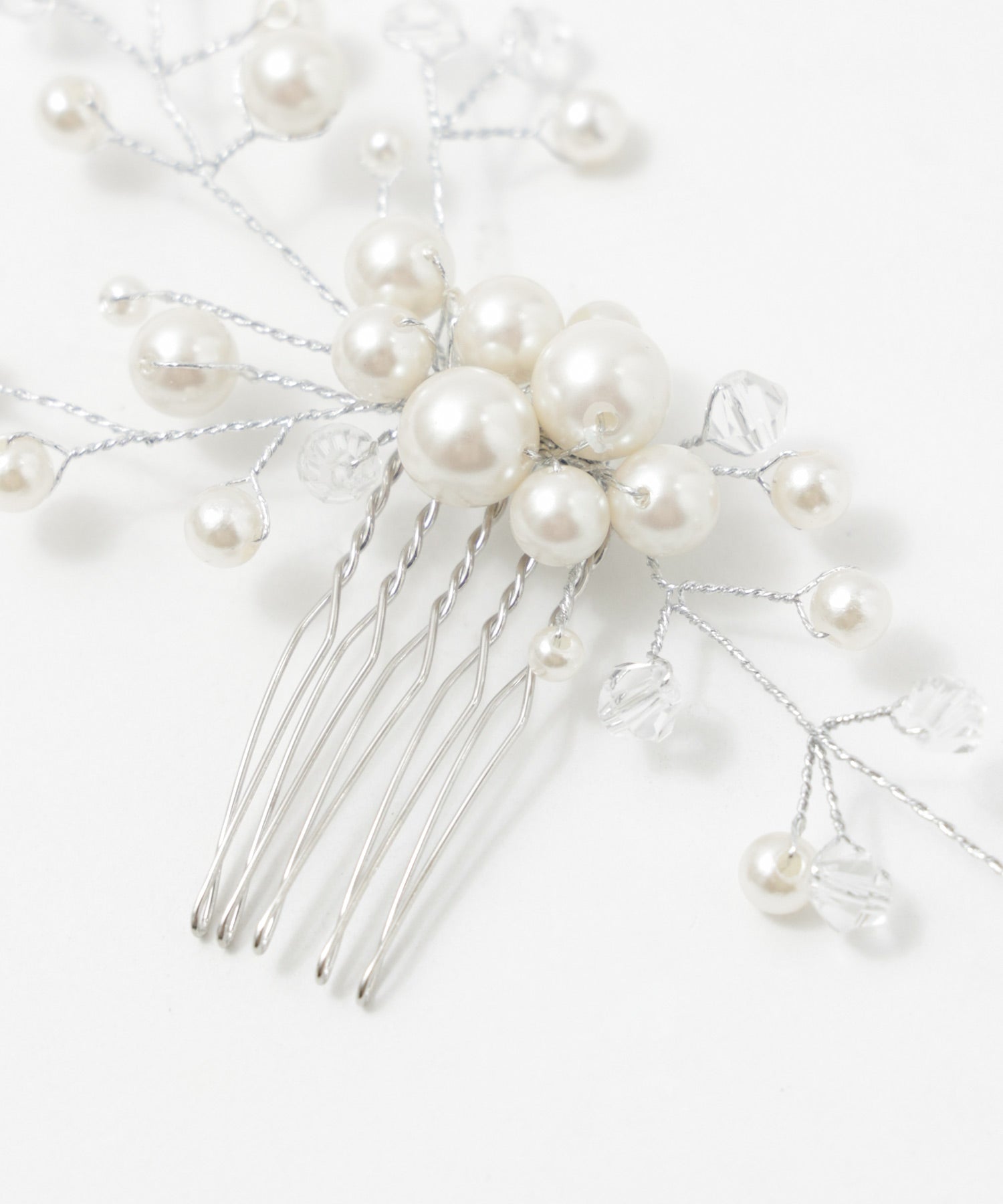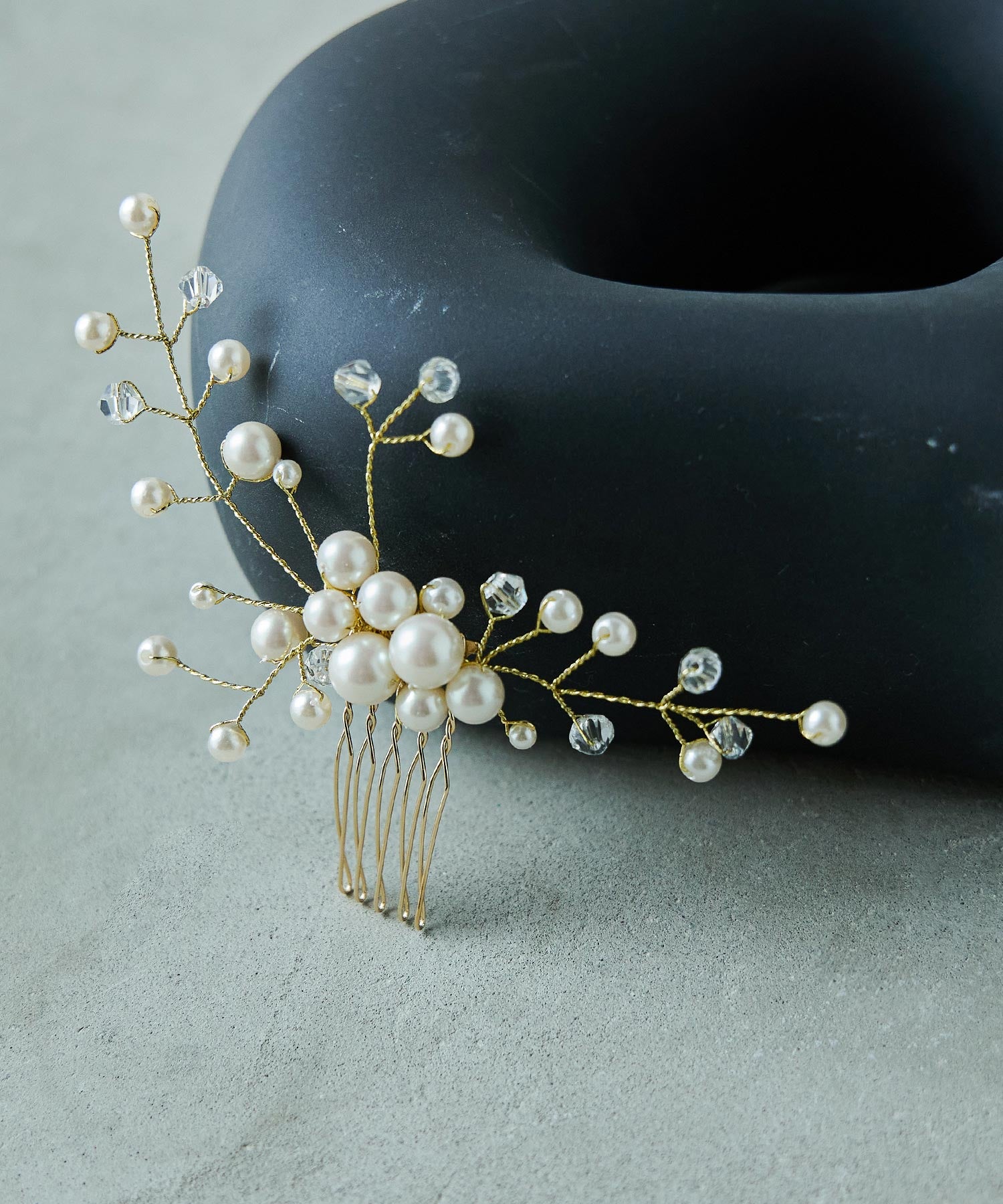 パーティースタイルに活躍するパールとビーズのヘアコーム。