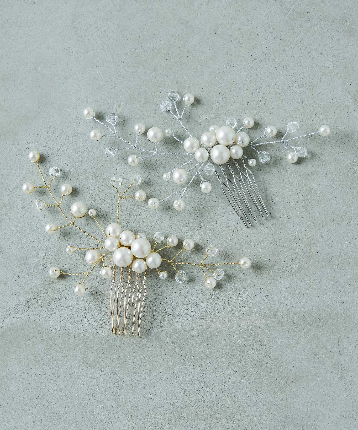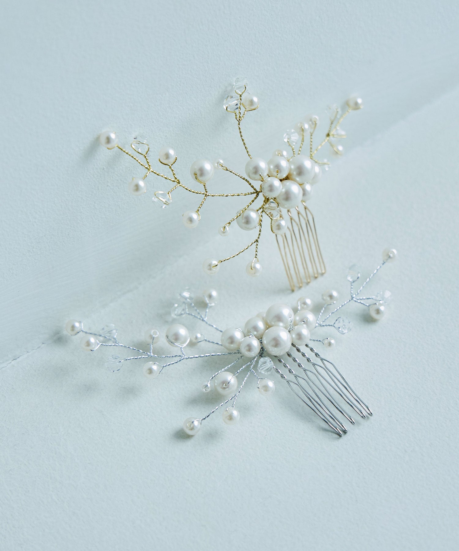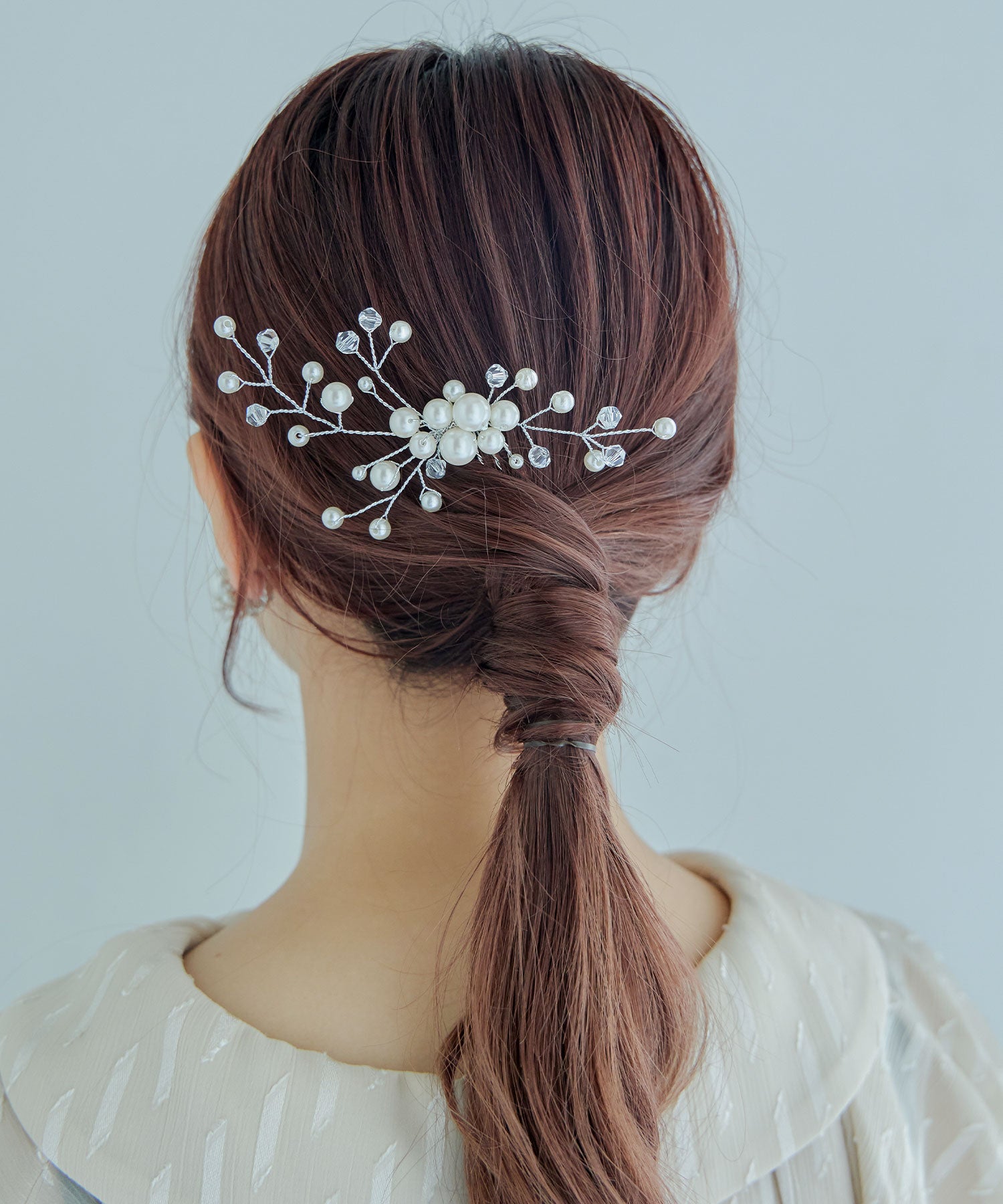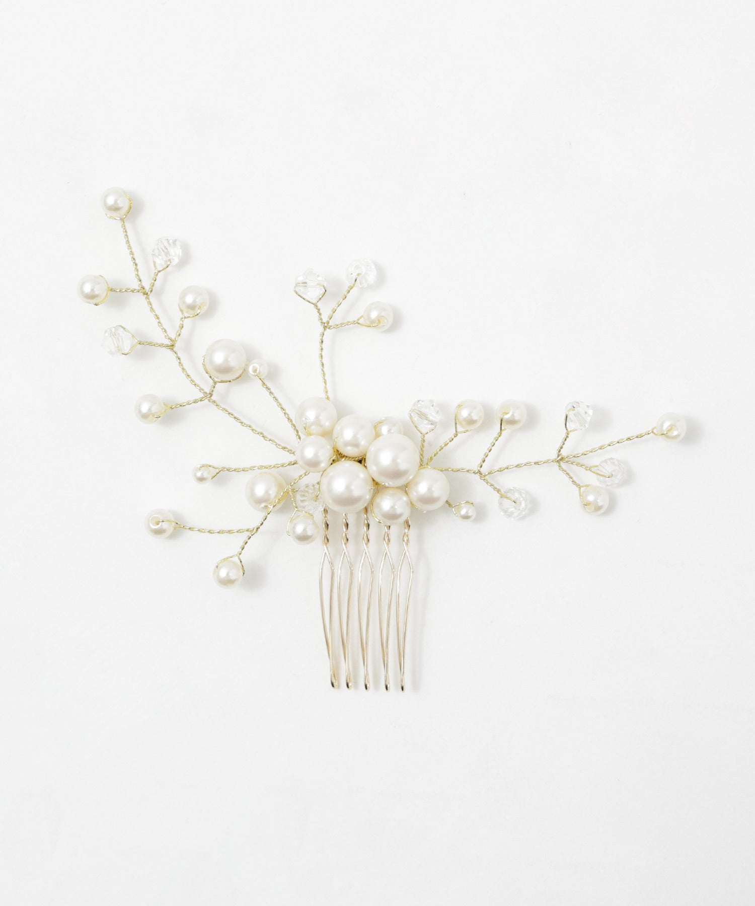 パーティースタイルに活躍するパールとビーズのヘアコーム。